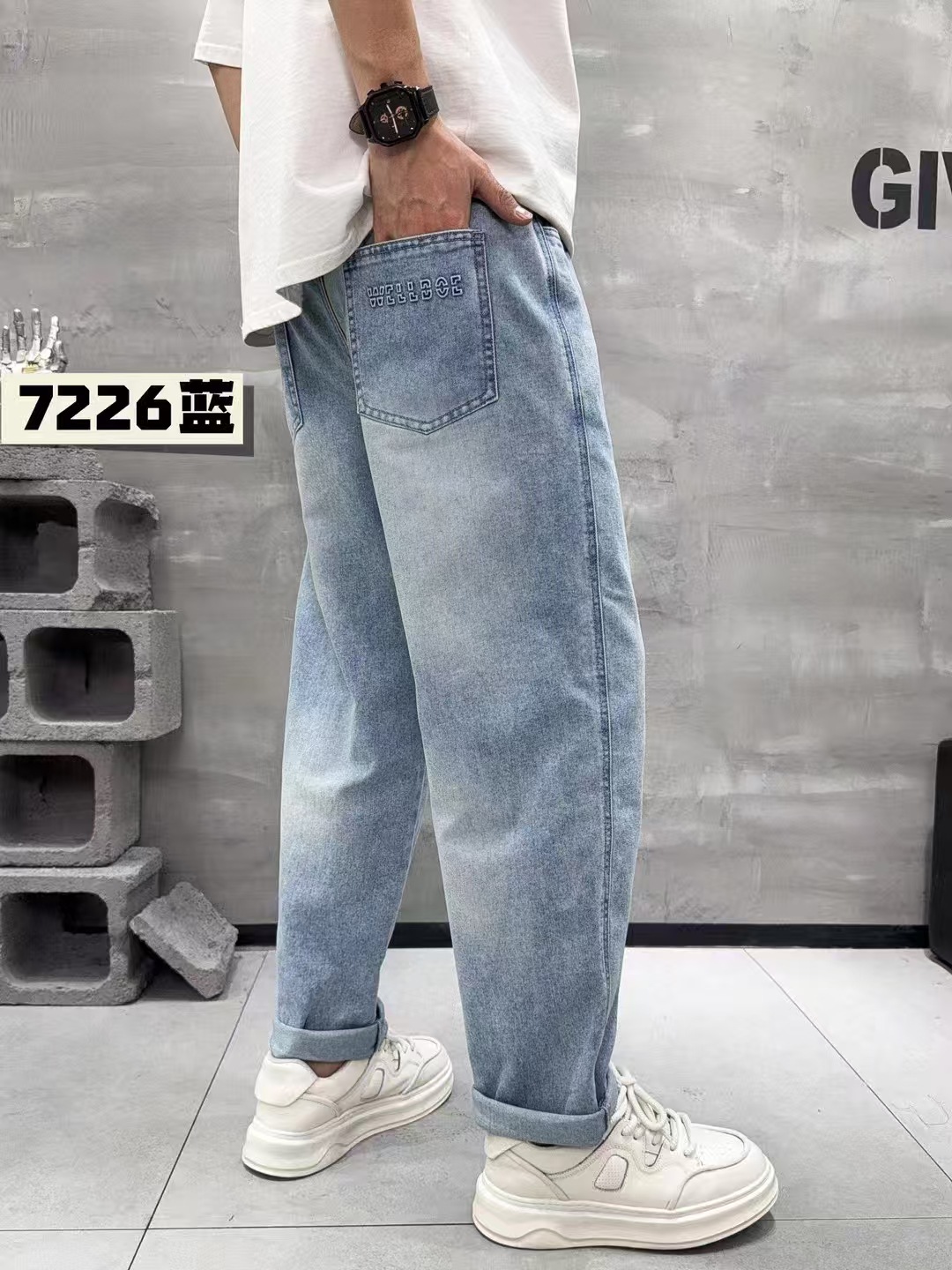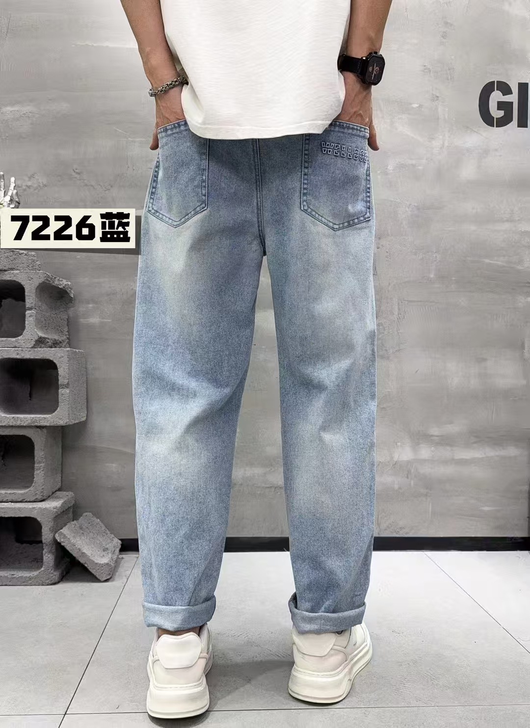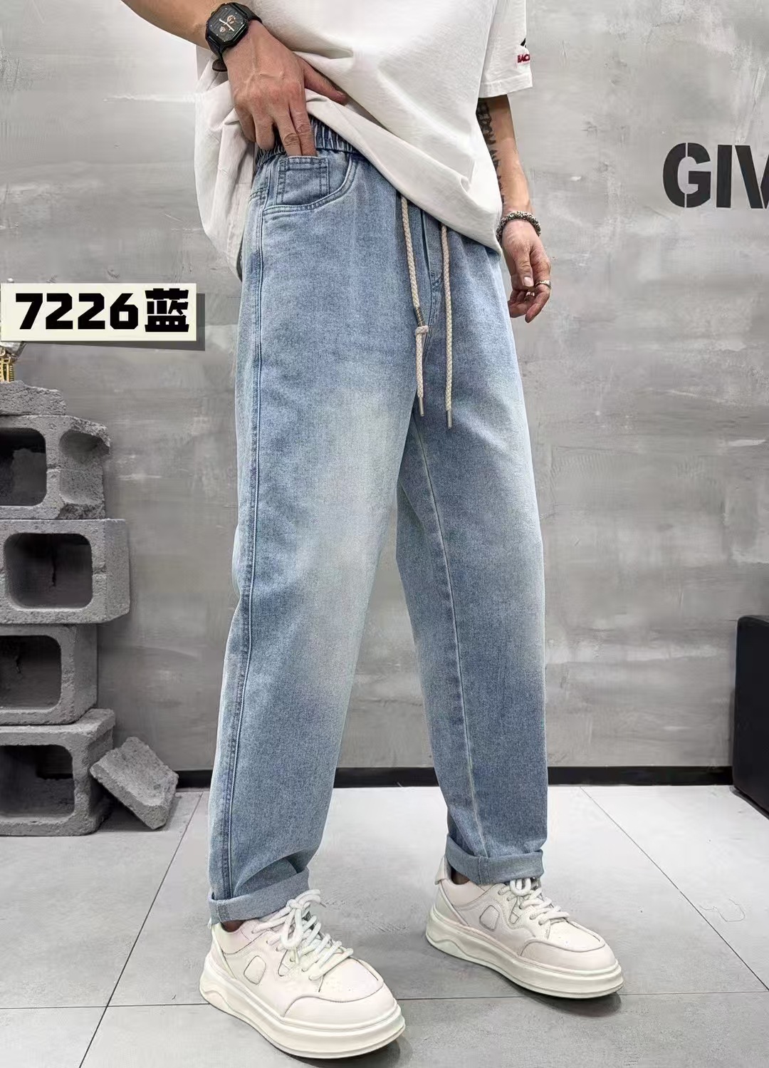 2025 봄과 여름 새로운 남자 청바지 아빠 바지 모든 경기 탄성 허리 느슨한 직선 바지 스트레치 캐주얼 바지스토어 가기
