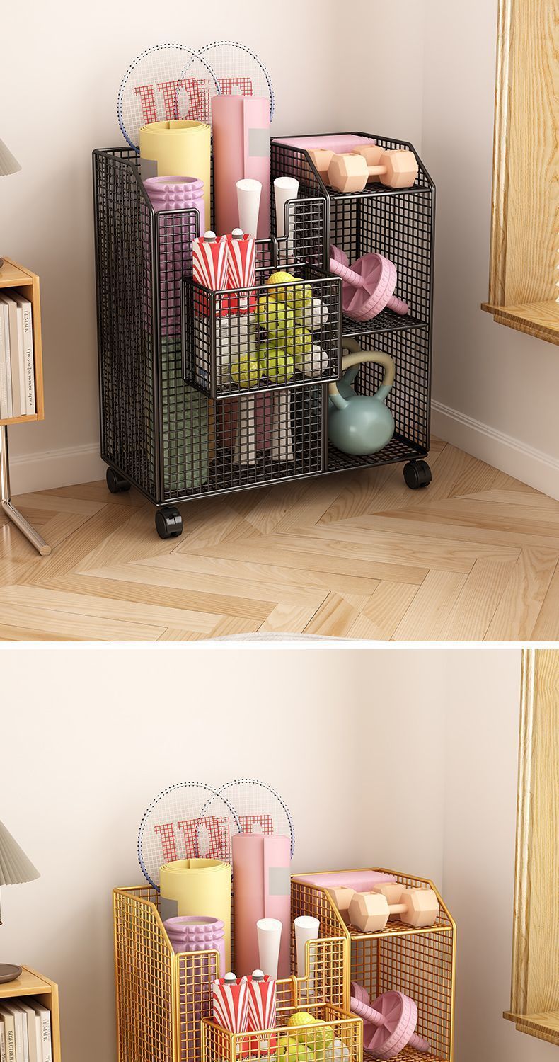 스포츠 용품 보관 랙 보관 바구니 가정용 스포츠 피트니스 장비 보관 요가 매트 보관 바구니스토어 가기