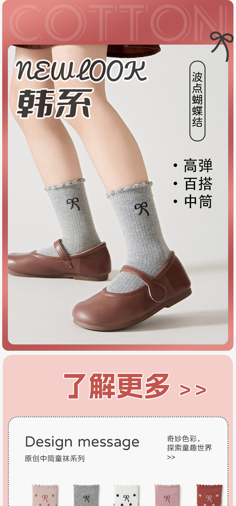[폭발] 어린이 양말 여아용 양말 중간관 봄 · 가을 도트 보우 사계절 A 급 통기성 면 양말스토어 가기