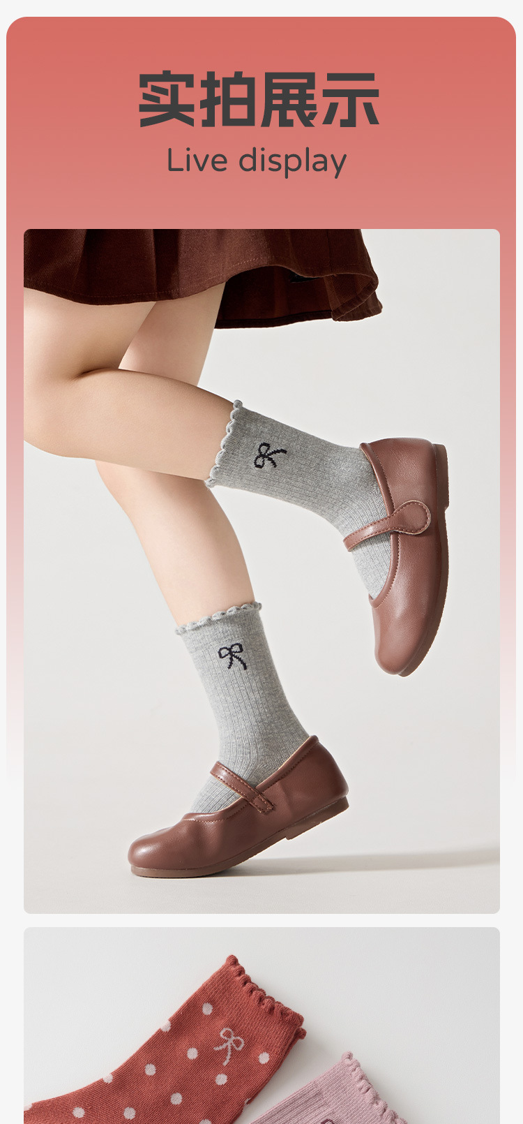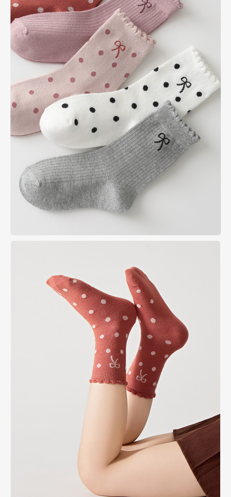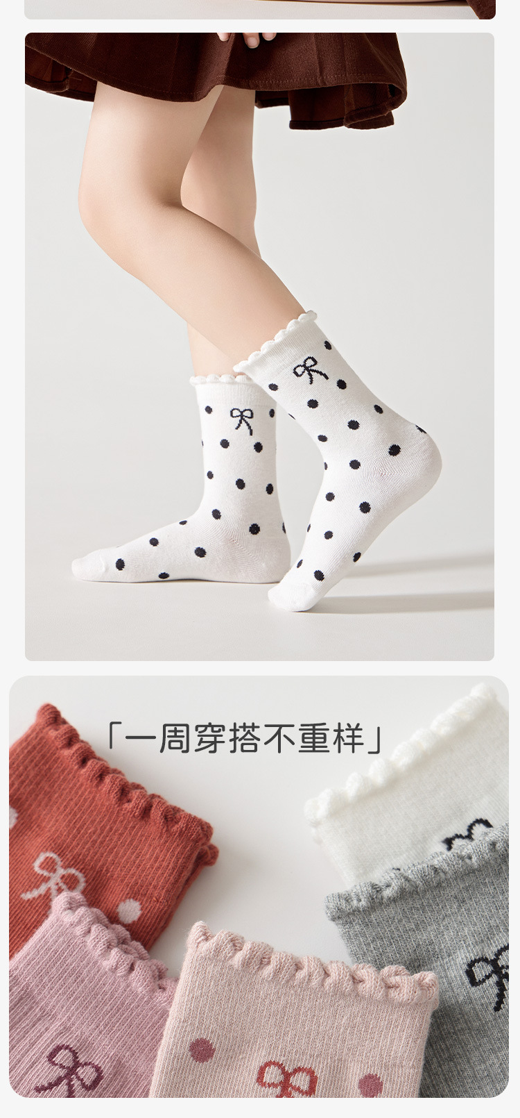 [폭발] 어린이 양말 여아용 양말 중간관 봄 · 가을 도트 보우 사계절 A 급 통기성 면 양말