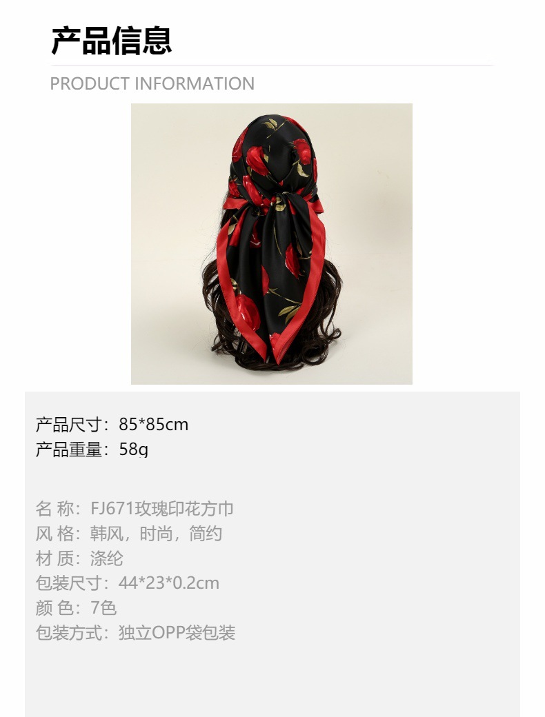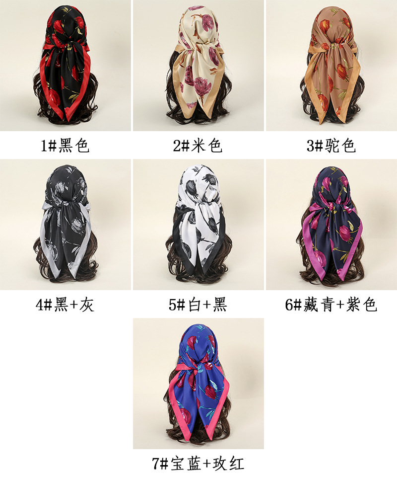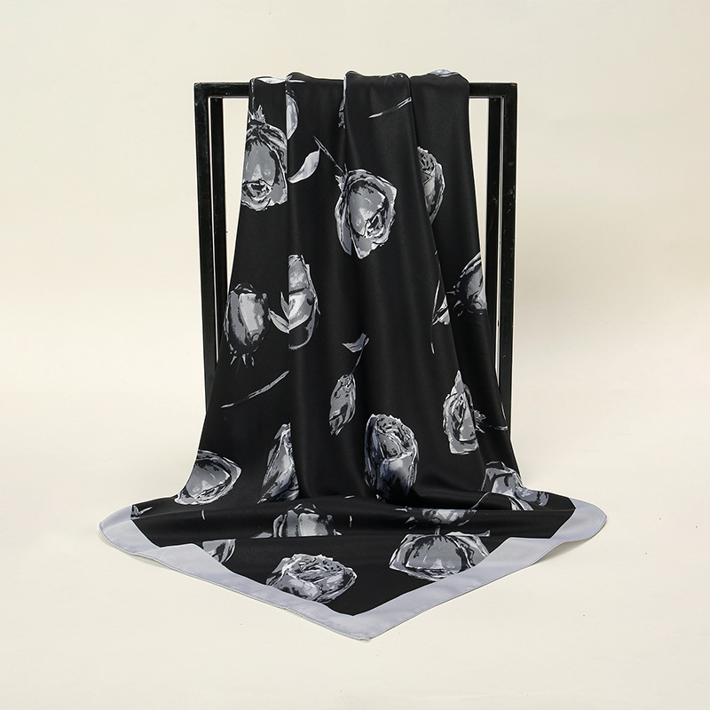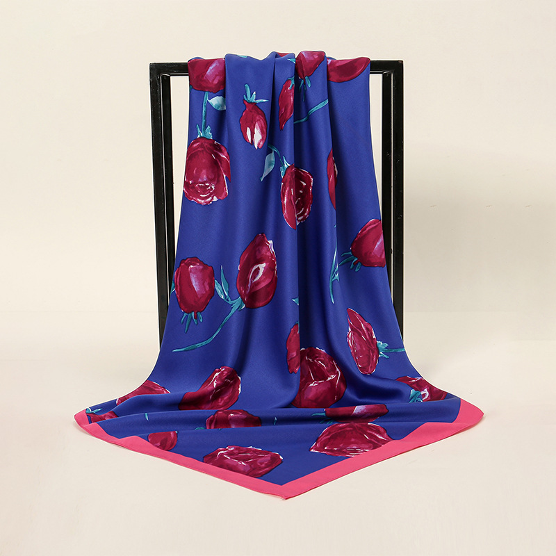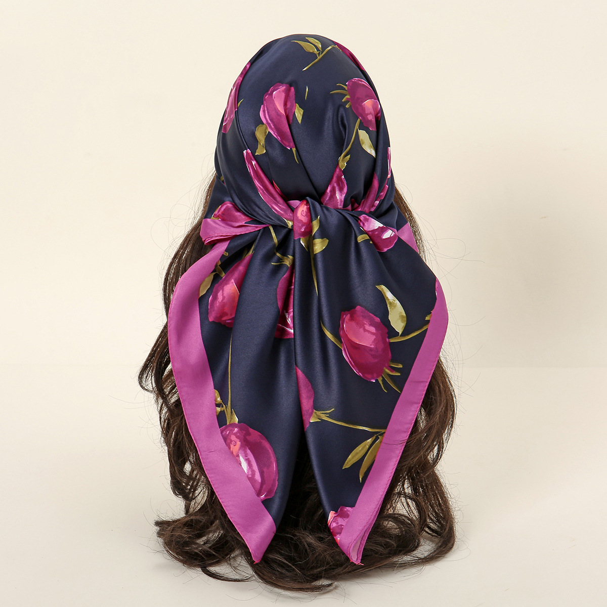 2025 봄 뉴 로즈 프린트 스퀘어 스카프 여성 패션 올 매치 고급 85 대형 스퀘어 장식 목도리 헤드 스카프