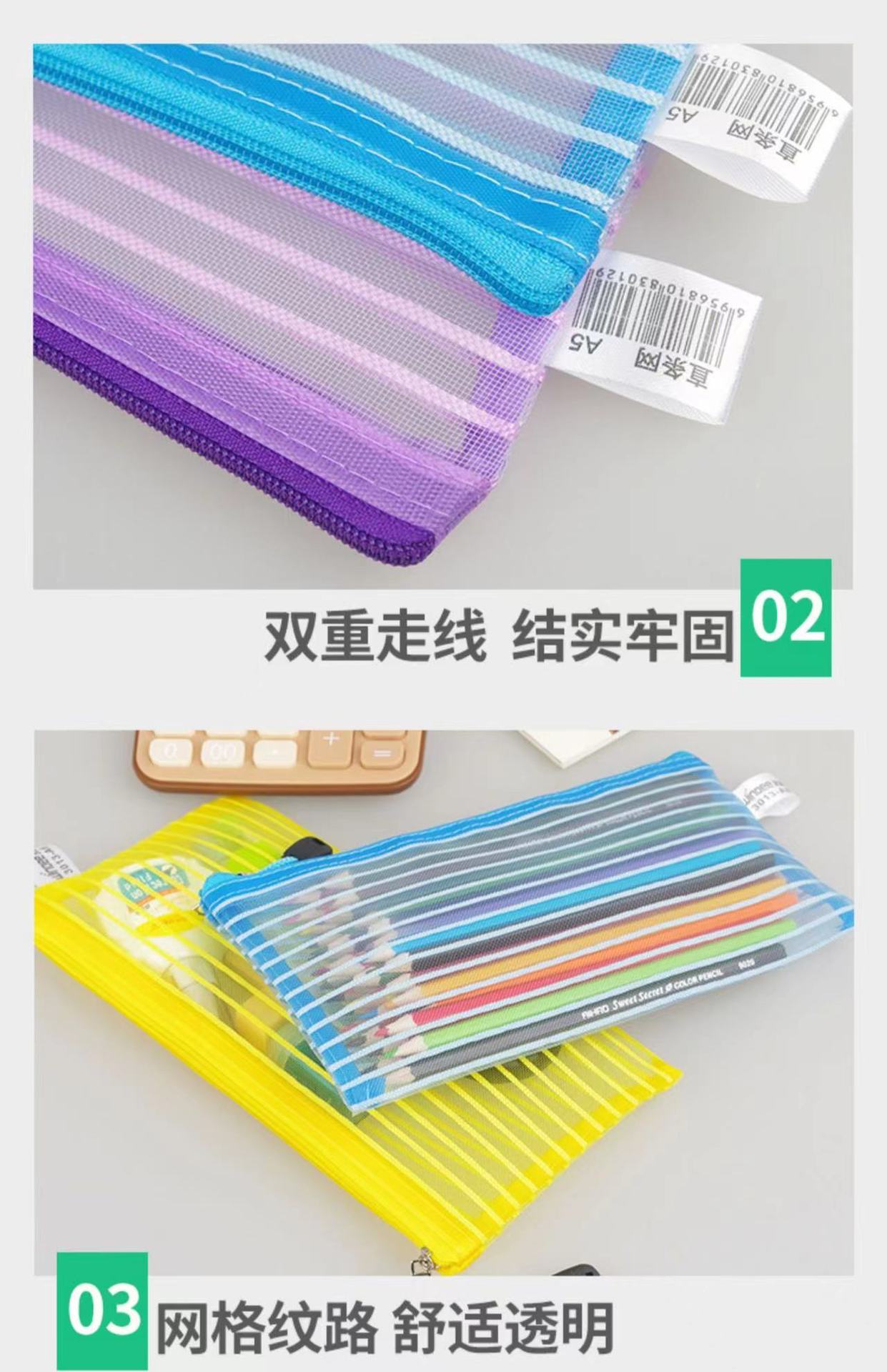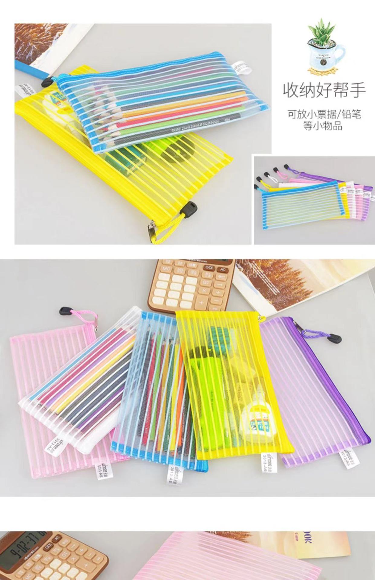 줄무늬 투명 연필 가방 청구서 가방 문구 테스트 종이 저장 가방 나일론 지퍼 사무용 재료 파일 가방 크로스 테두리스토어 가기