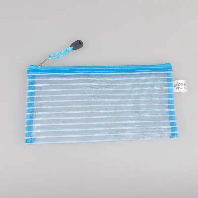 줄무늬 투명 연필 가방 청구서 가방 문구 테스트 종이 저장 가방 나일론 지퍼 사무용 재료 파일 가방 크로스 테두리