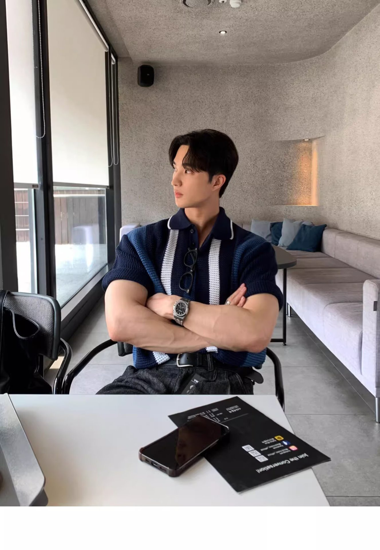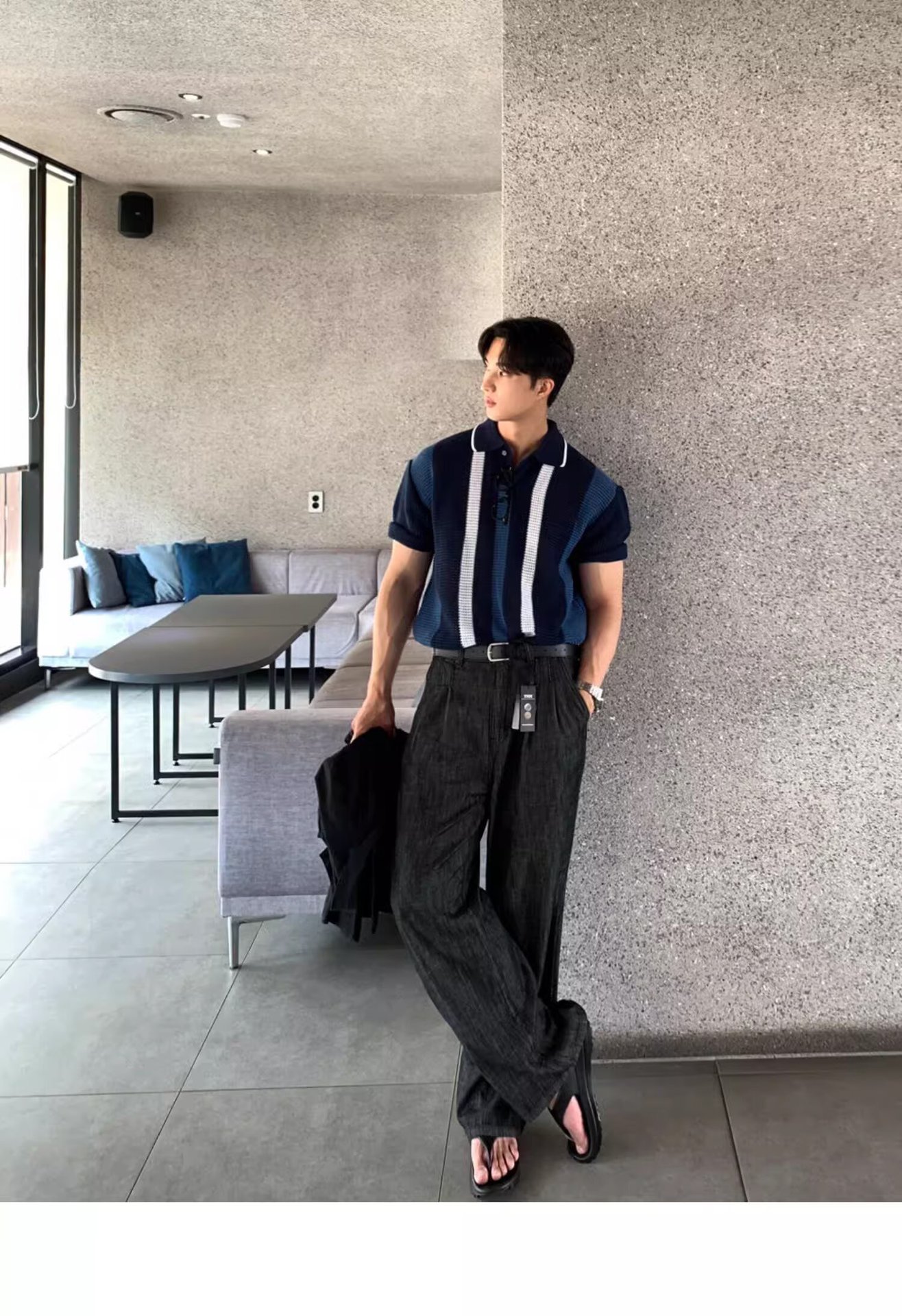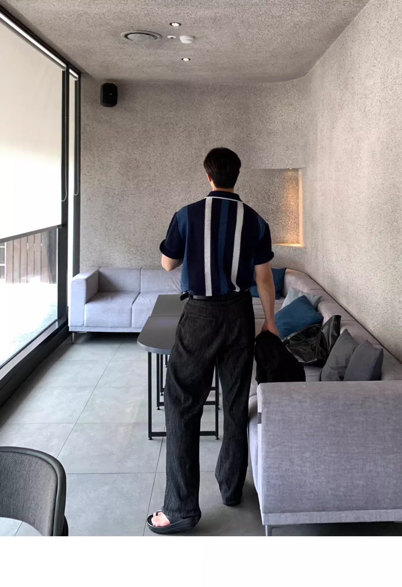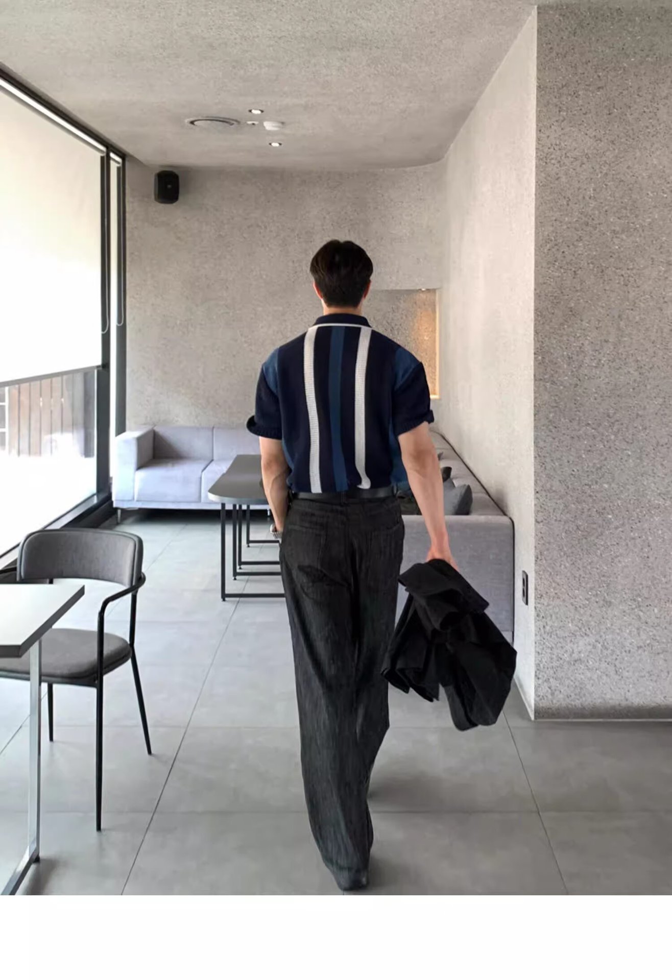 2025 새로운 스타일 우아한 여름 유행 청소년 인기있는 남성 니트 스웨터 예술적 표준 모든 경기 유행 줄무늬 단순 짧은스토어 가기