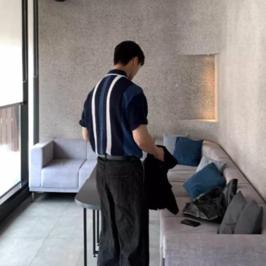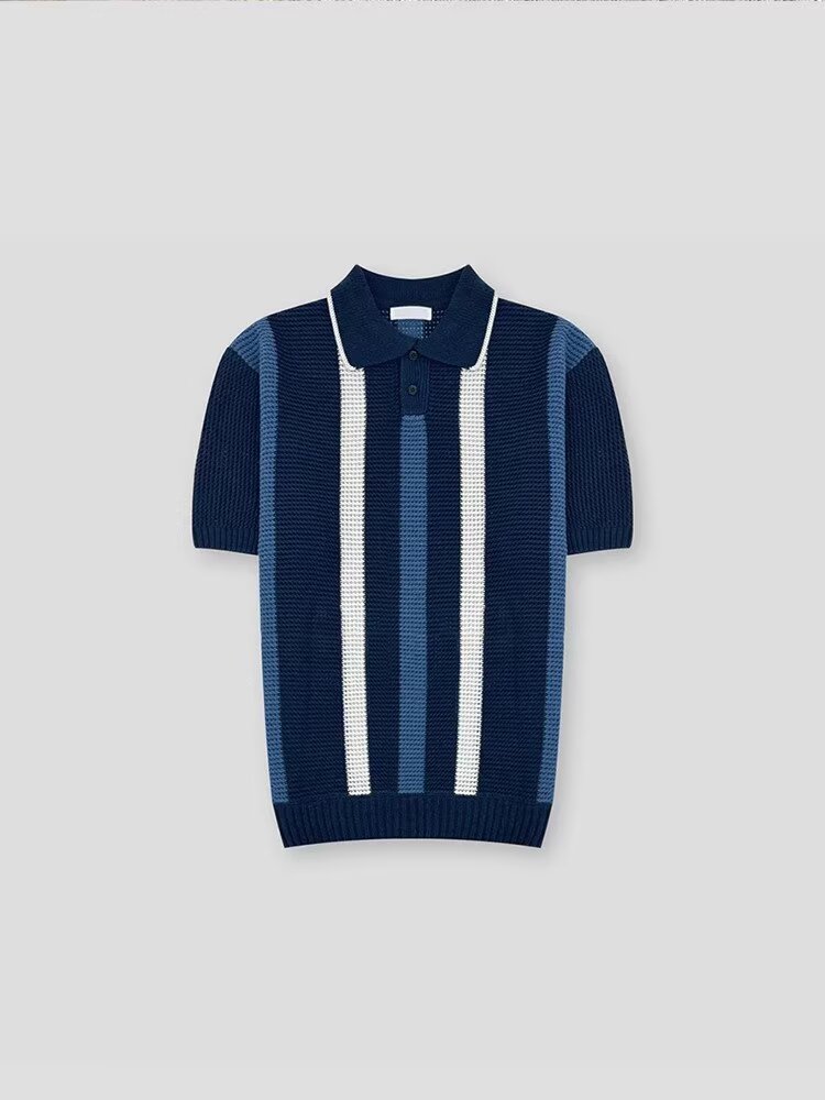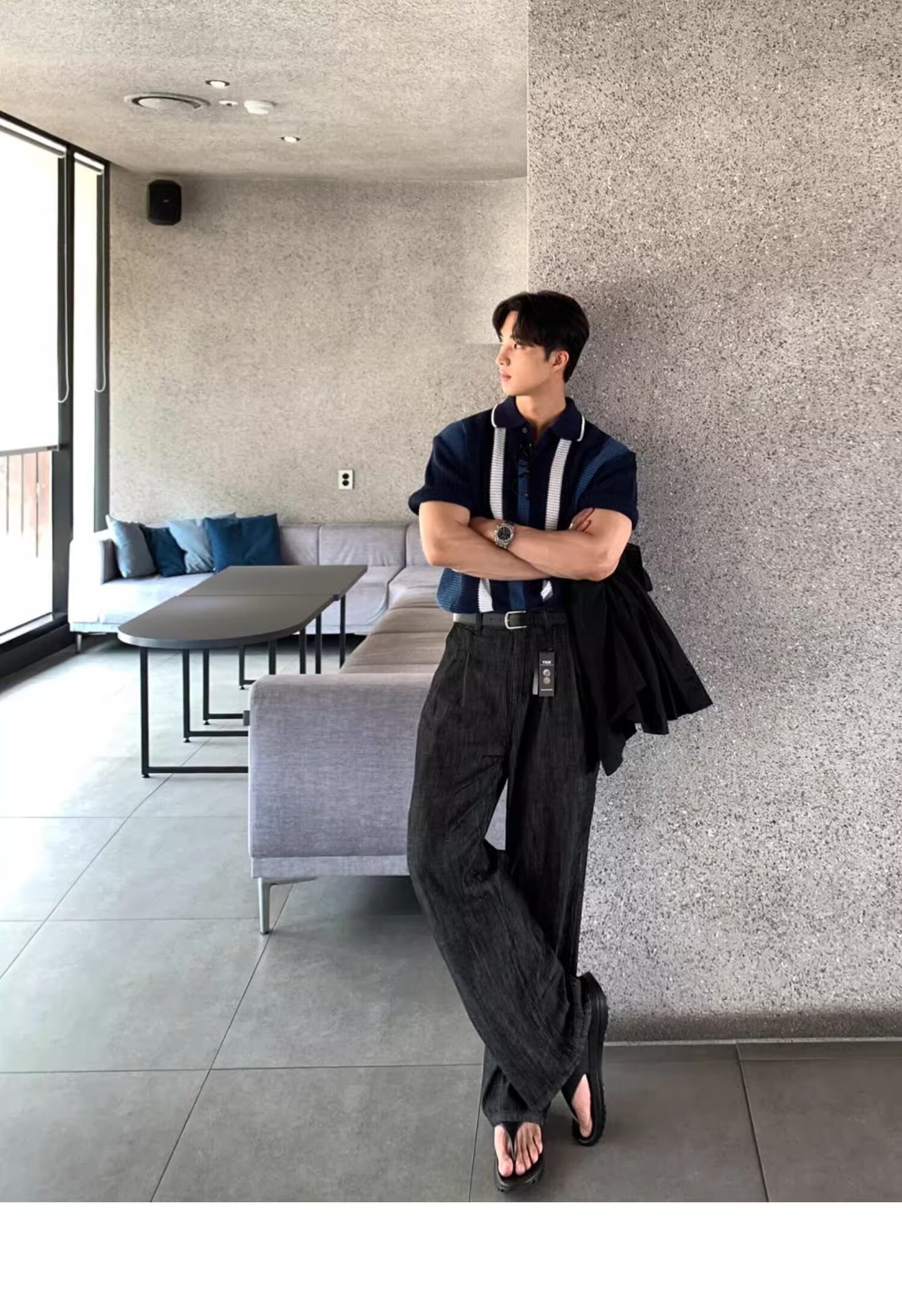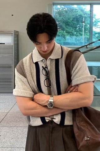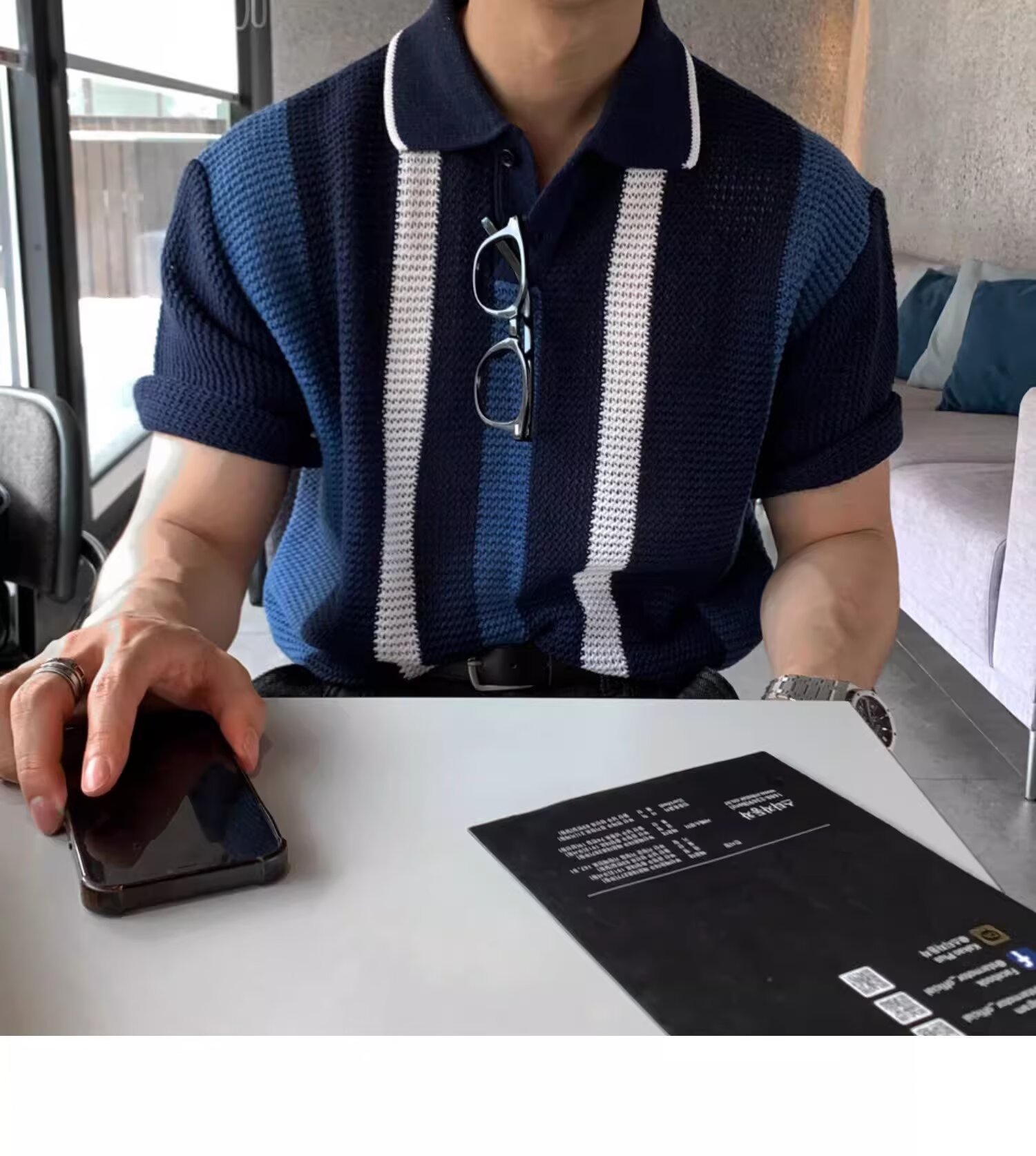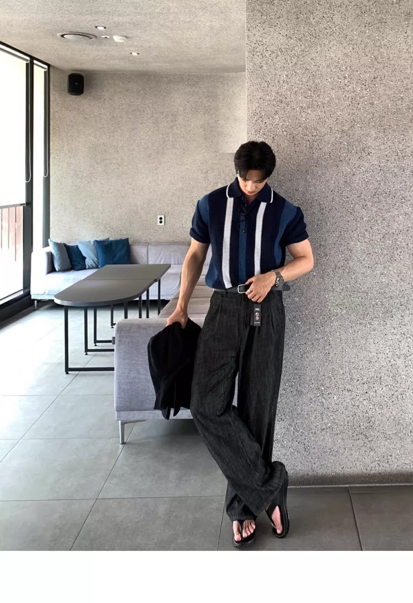 2025 새로운 스타일 우아한 여름 유행 청소년 인기있는 남성 니트 스웨터 예술적 표준 모든 경기 유행 줄무늬 단순 짧은스토어 가기