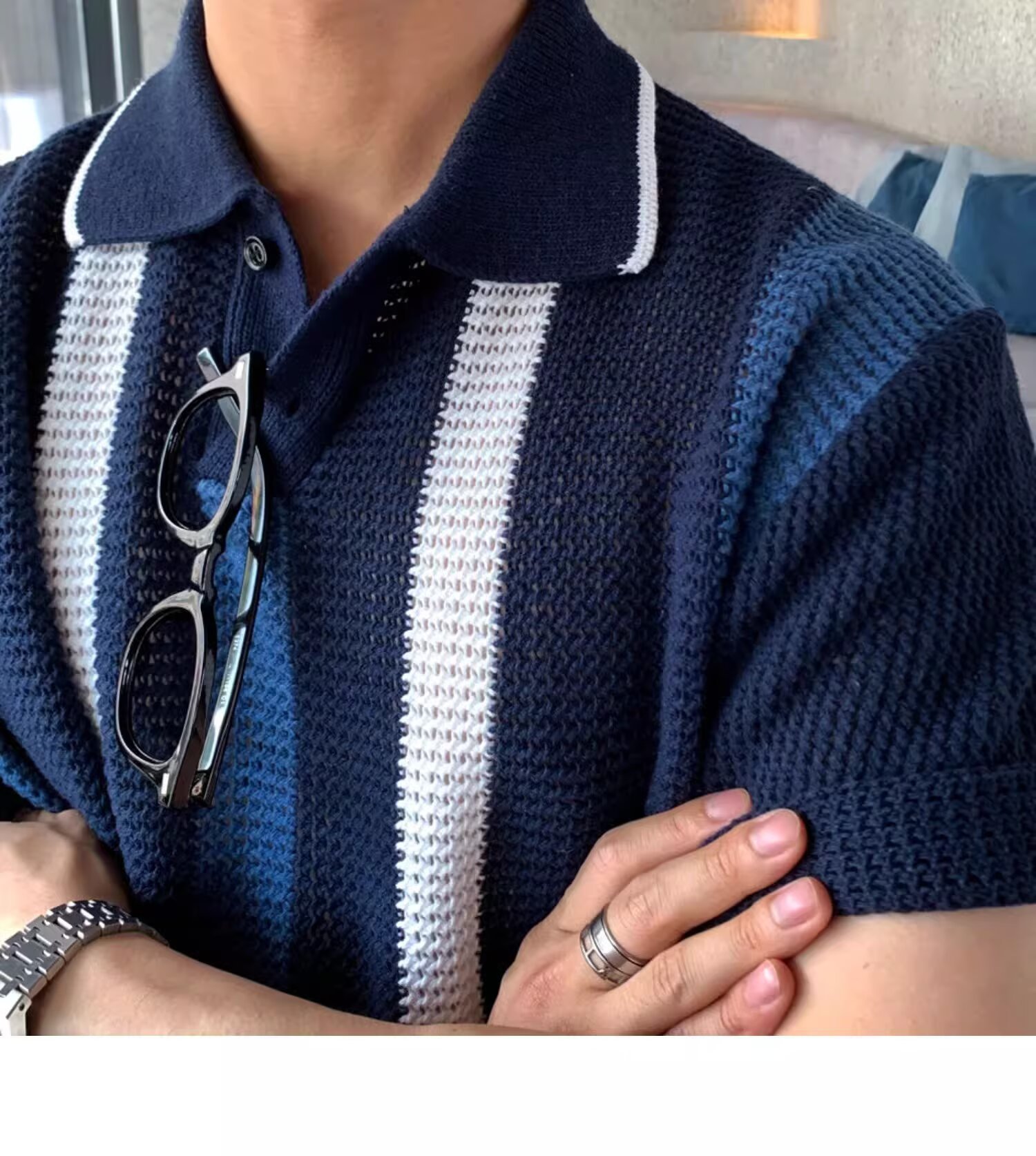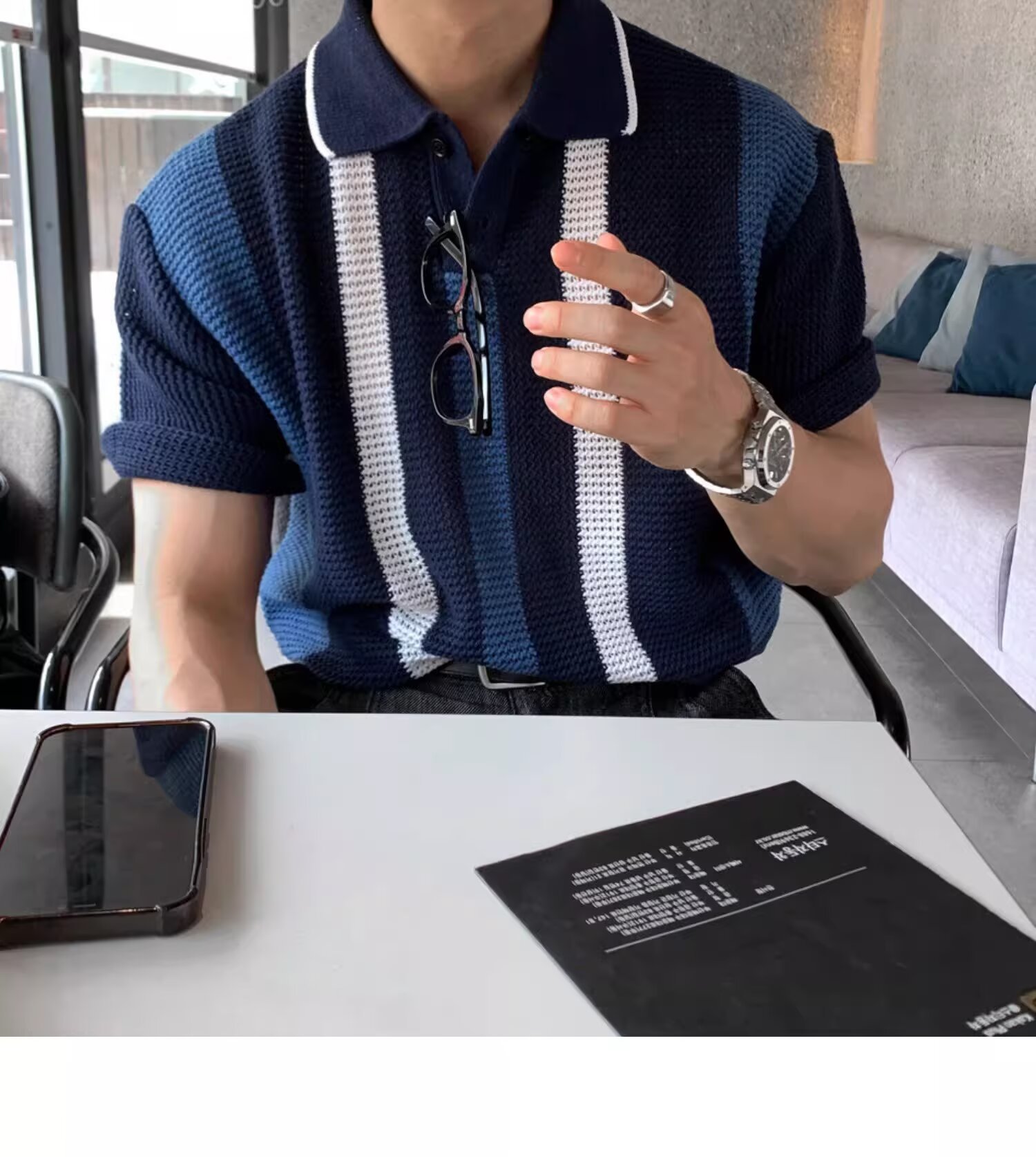 2025 새로운 스타일 우아한 여름 유행 청소년 인기있는 남성 니트 스웨터 예술적 표준 모든 경기 유행 줄무늬 단순 짧은