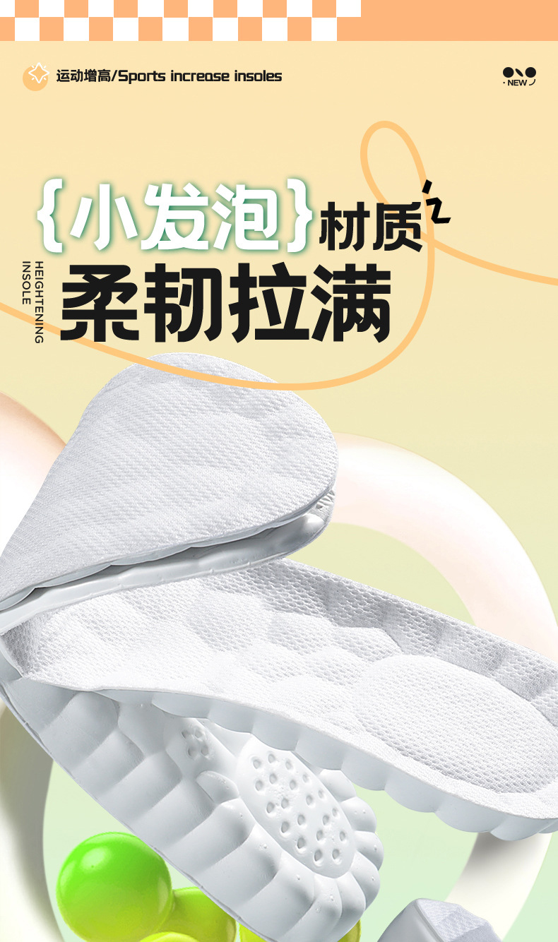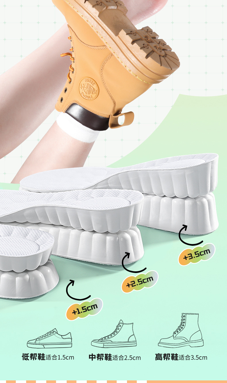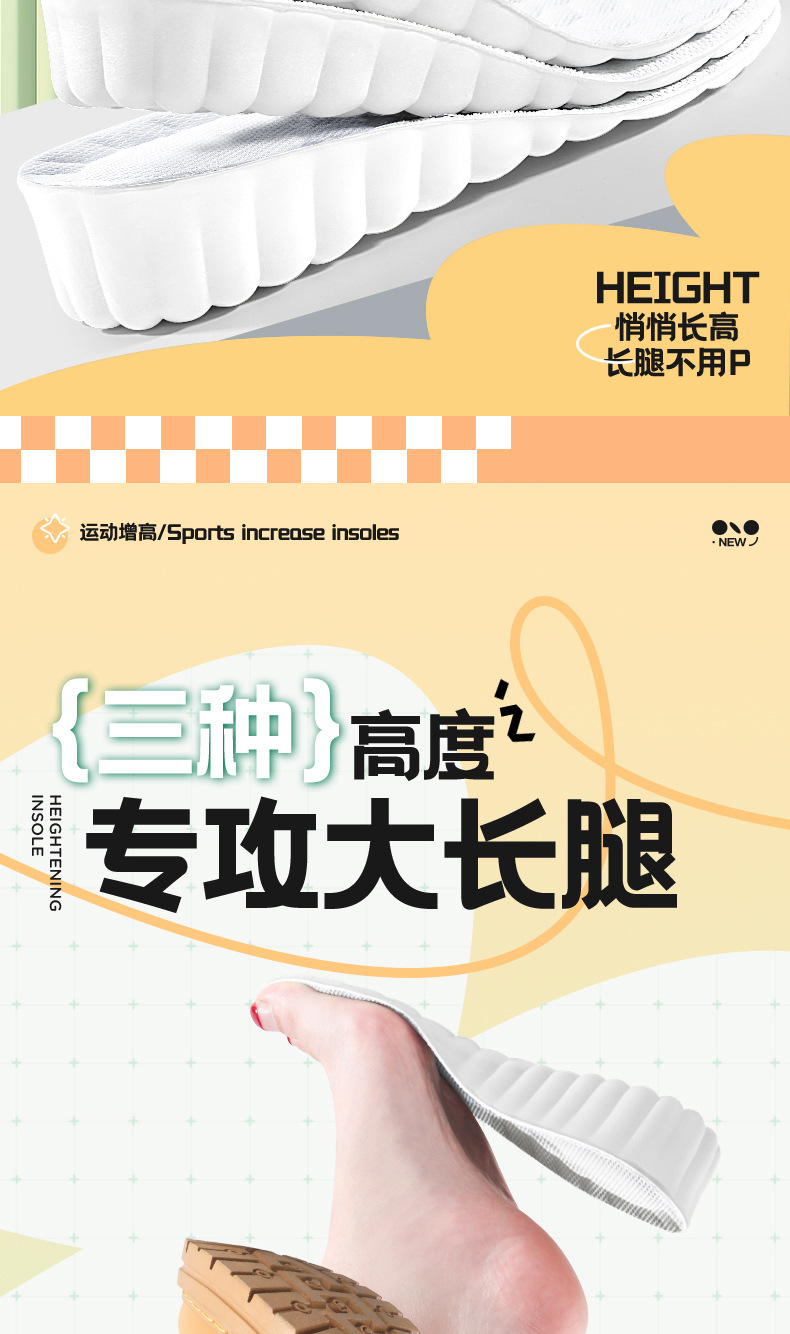 작은 거품 높이 증가 깔창 경량 편안한 피곤하지 않은 발 보이지 않는 여성의 내부 높이 증가 패드 땀 남성 충격 흡수 스포츠 부드러운 바닥