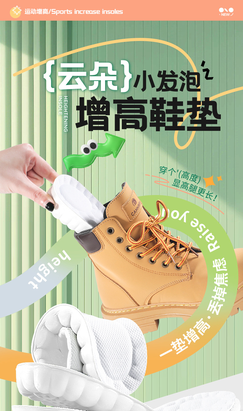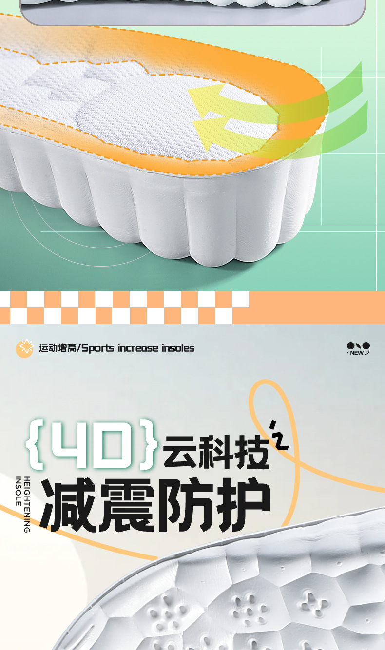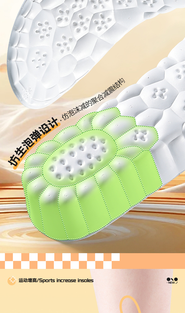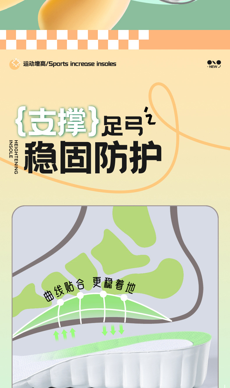 작은 거품 높이 증가 깔창 경량 편안한 피곤하지 않은 발 보이지 않는 여성의 내부 높이 증가 패드 땀 남성 충격 흡수 스포츠 부드러운 바닥