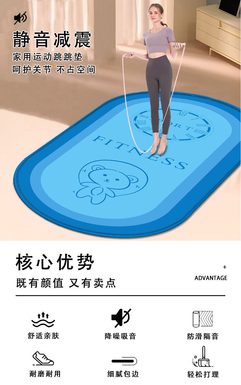• 피트니스 베어 줄넘기 블루 타원형(업그레이드된 실리콘 바닥/두꺼워진 방음)