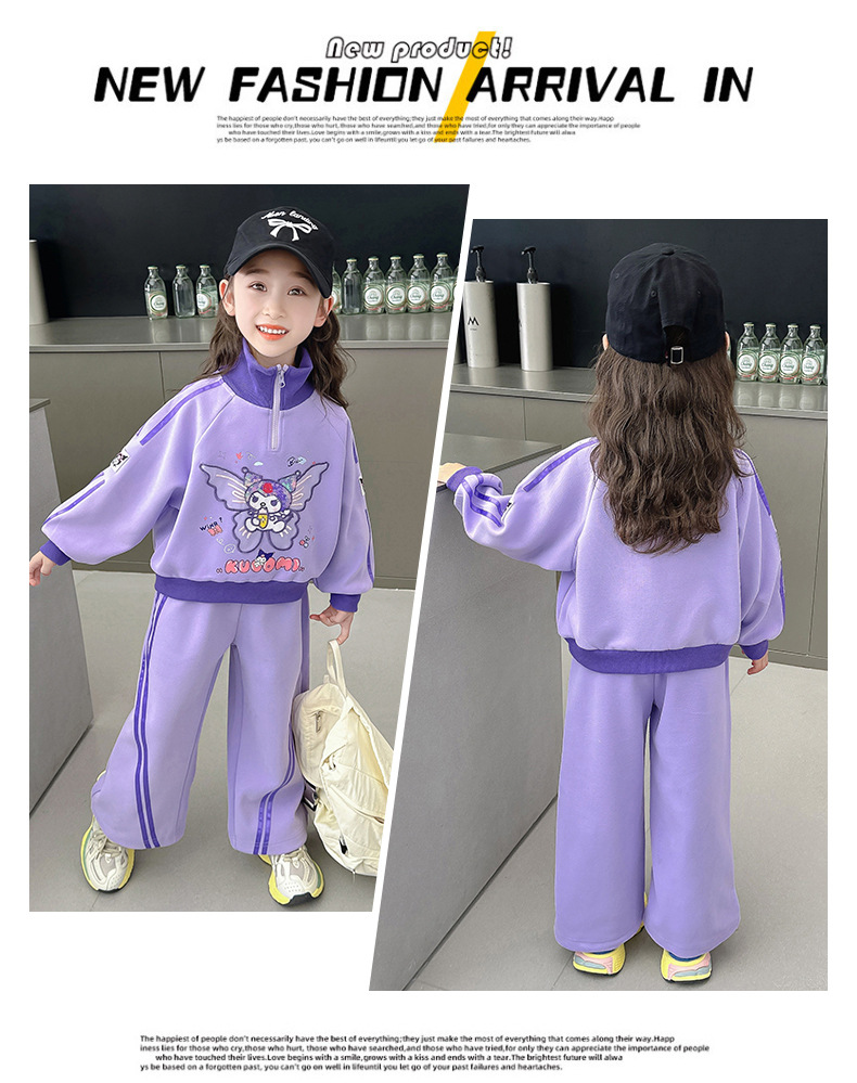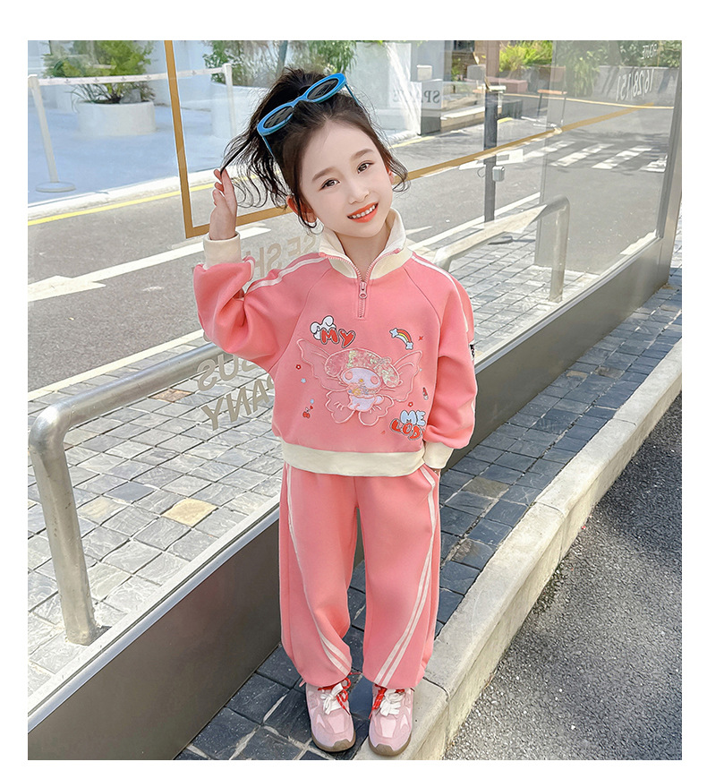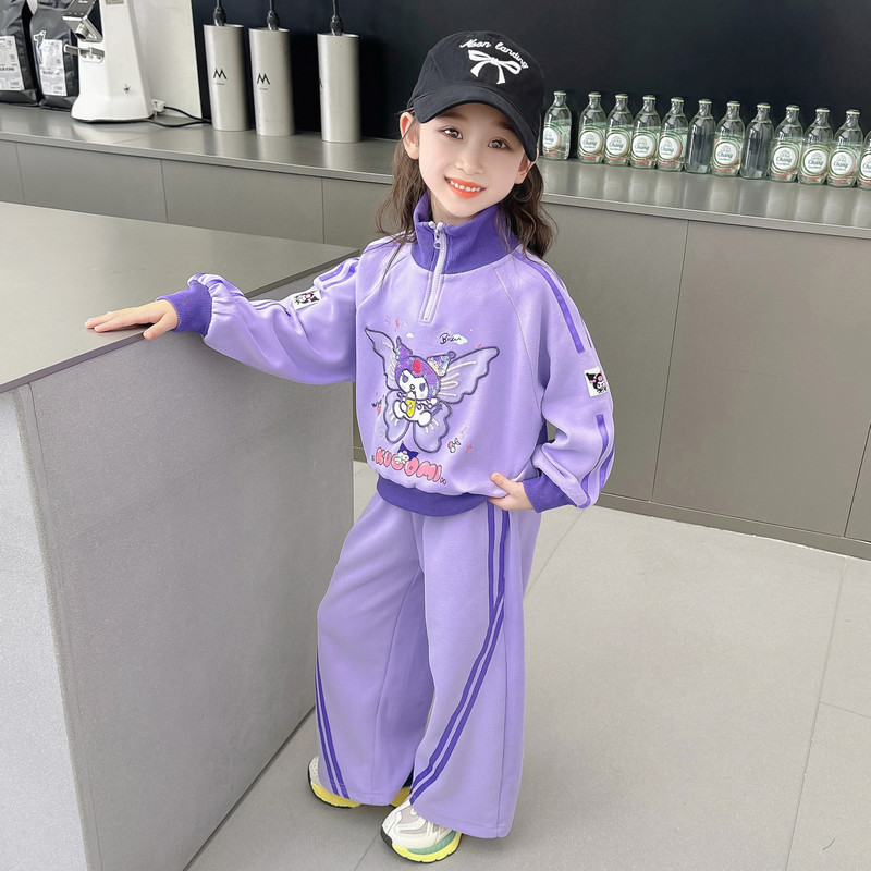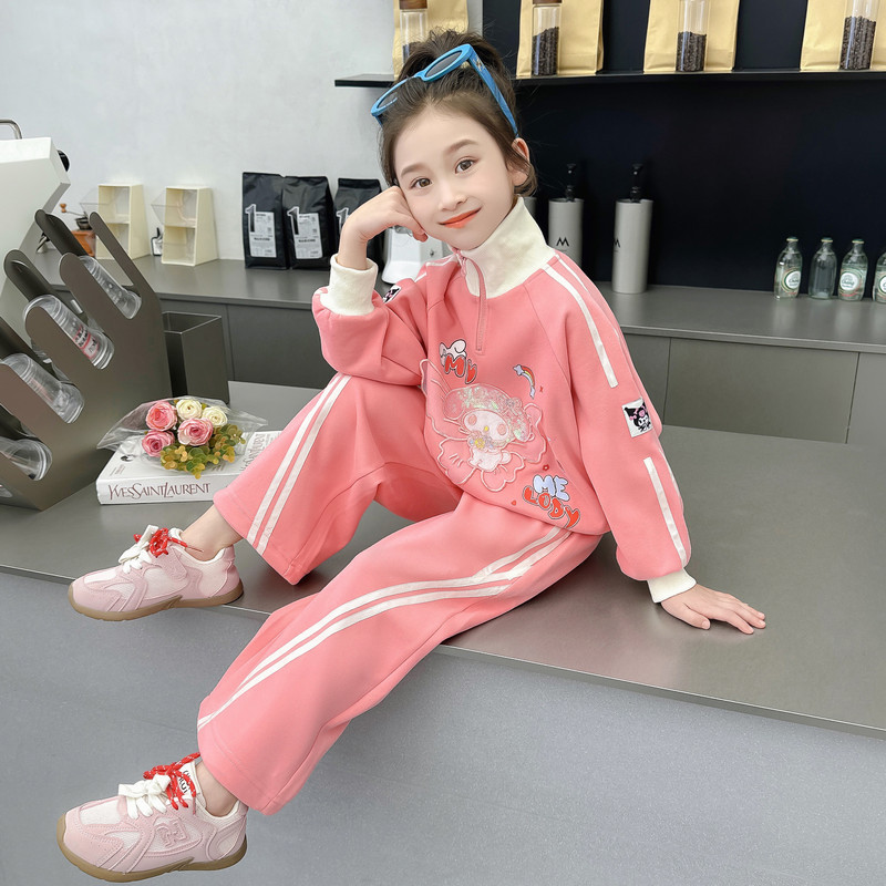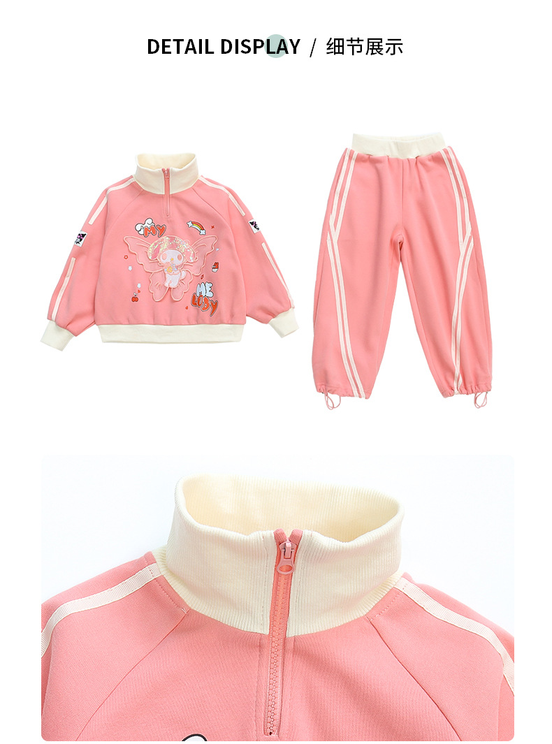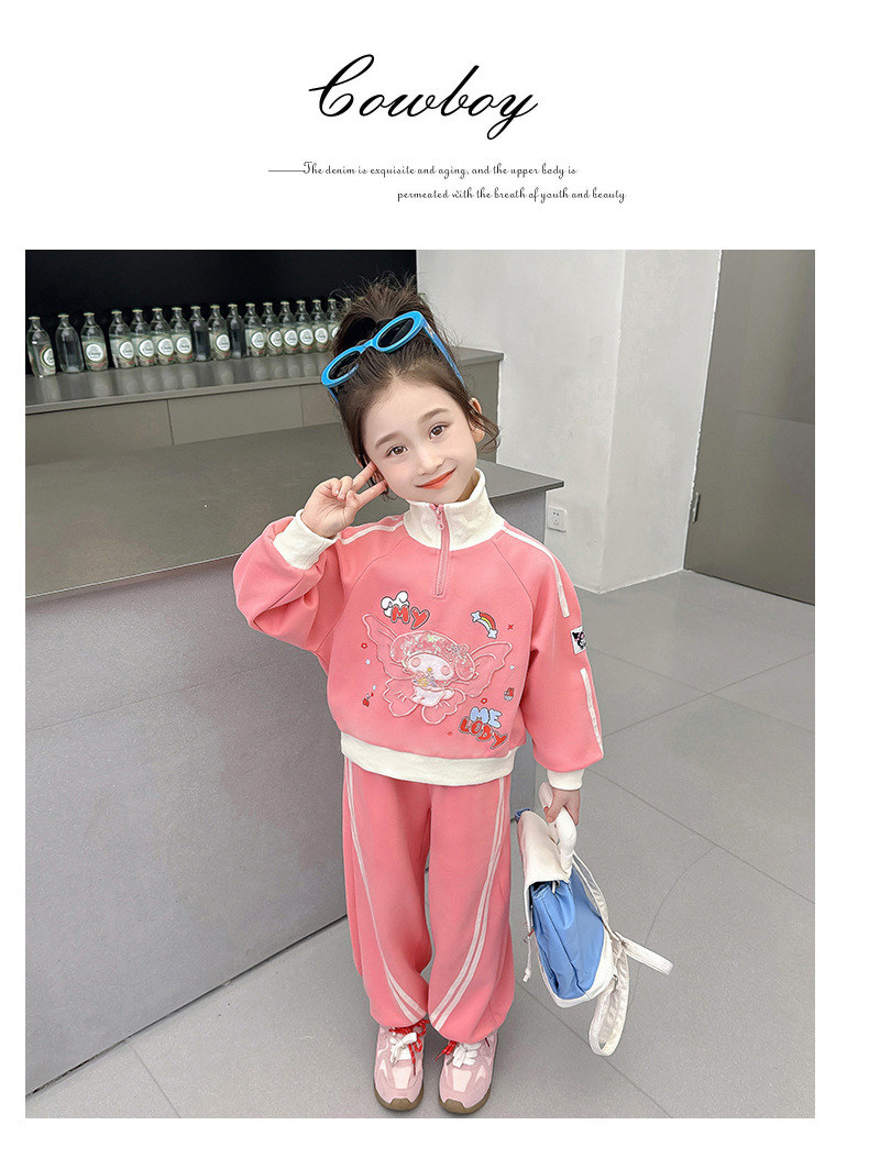 소녀 긴 소매 스웨트 셔츠 세트 봄과 가을 2025 새로운 스타일 아기 지퍼 만화 재킷 운동복 2 종 세트스토어 가기