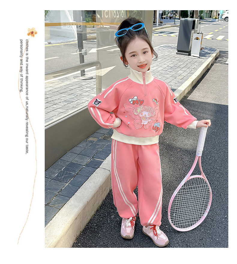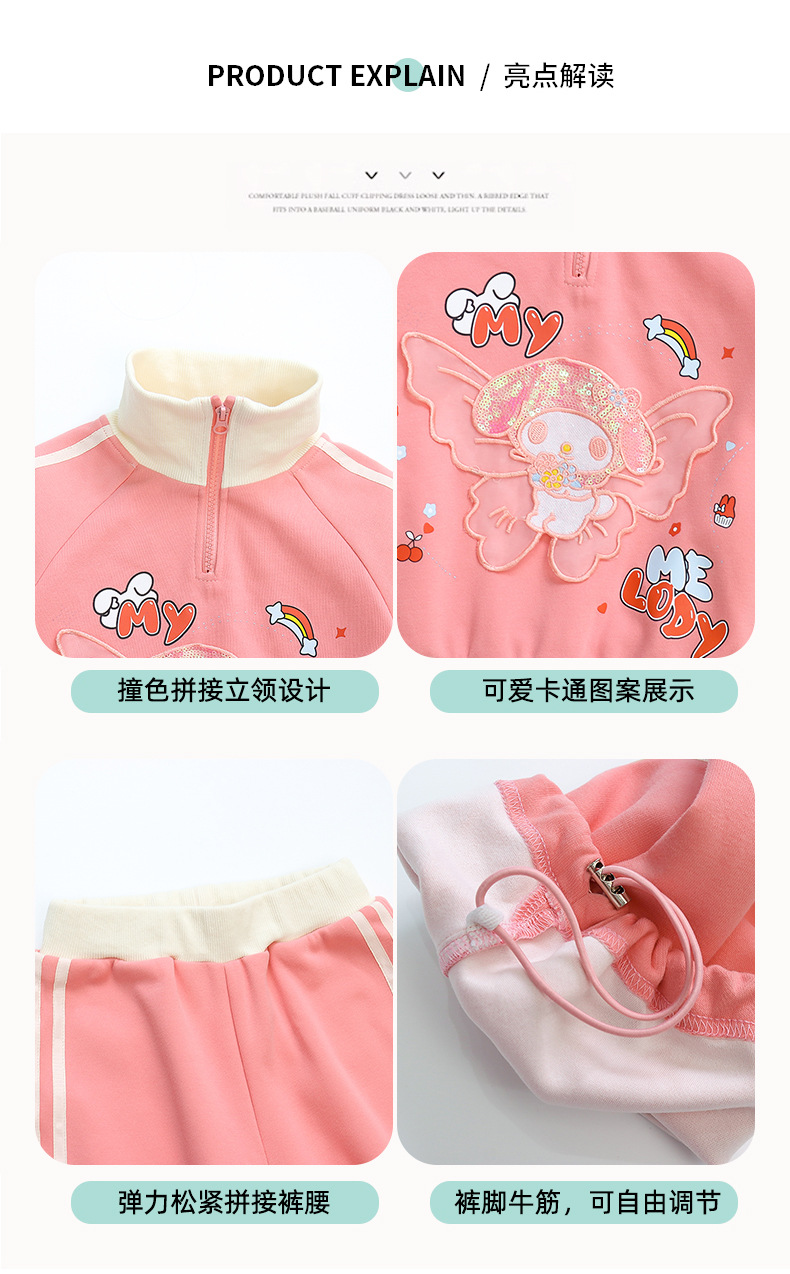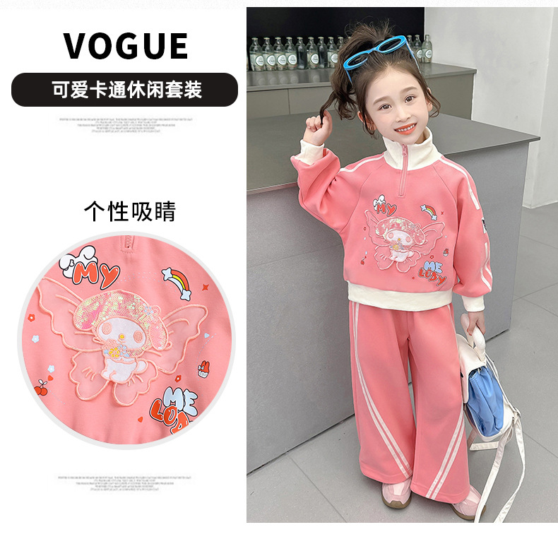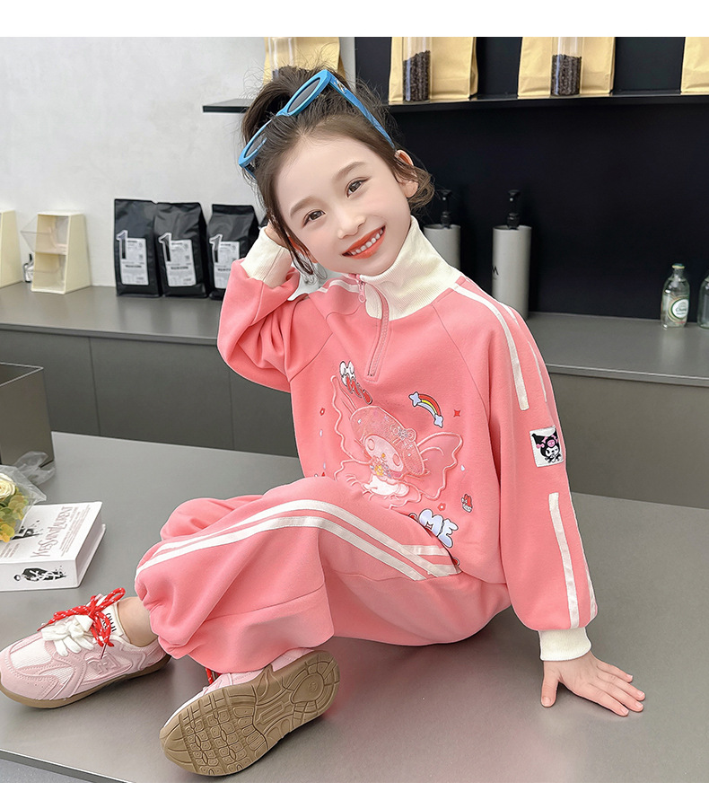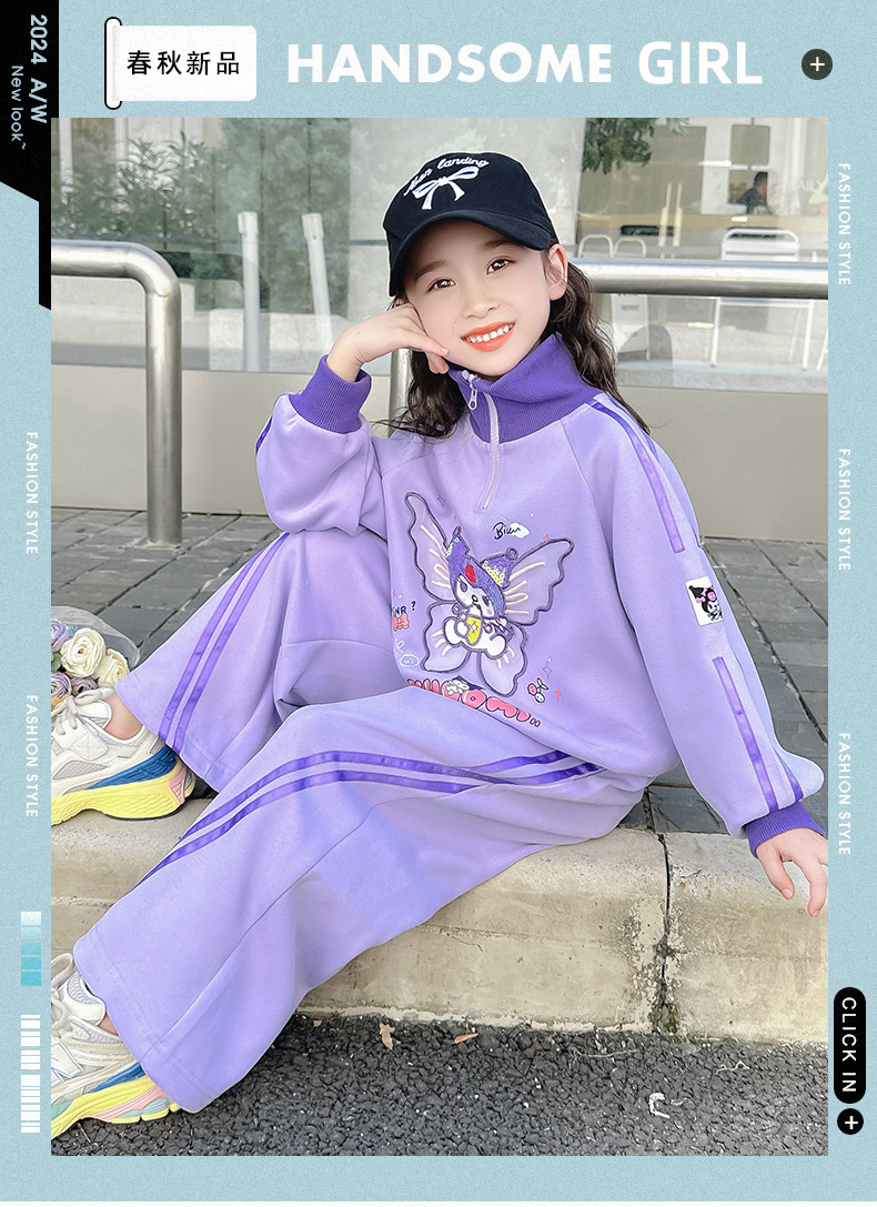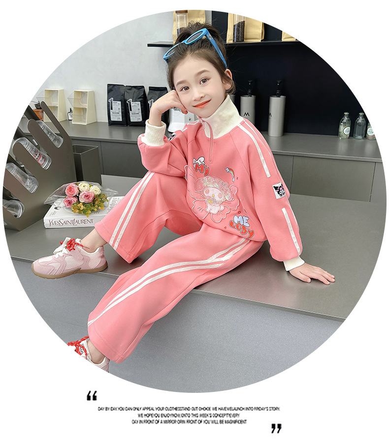 소녀 긴 소매 스웨트 셔츠 세트 봄과 가을 2025 새로운 스타일 아기 지퍼 만화 재킷 운동복 2 종 세트스토어 가기