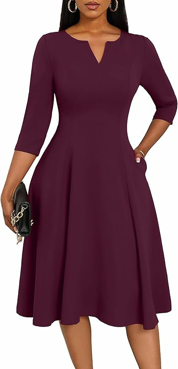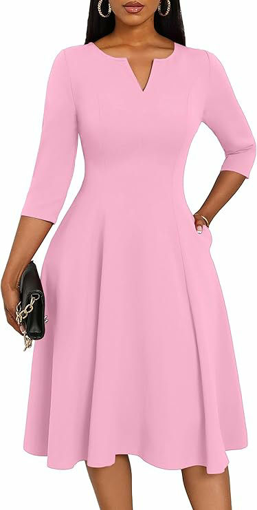 아마존 중간 길이 원피스 적합 슬림 핏 혼 원피스 7 소매 웨딩 게스트 작업 원피스