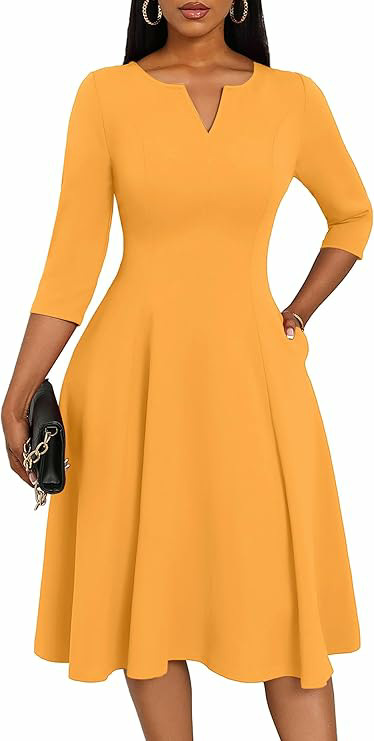 아마존 중간 길이 원피스 적합 슬림 핏 혼 원피스 7 소매 웨딩 게스트 작업 원피스스토어 가기