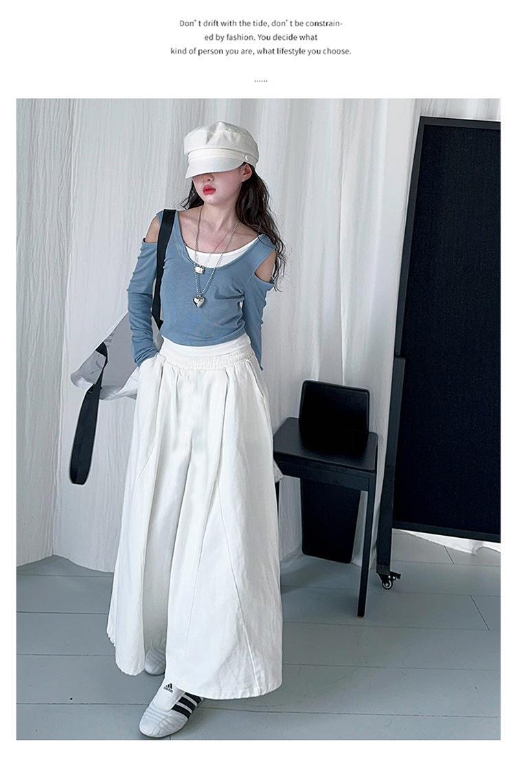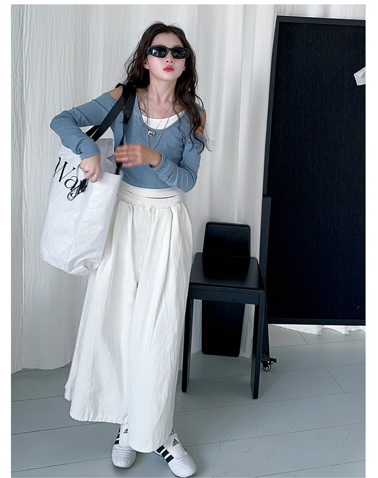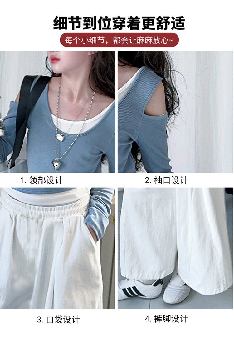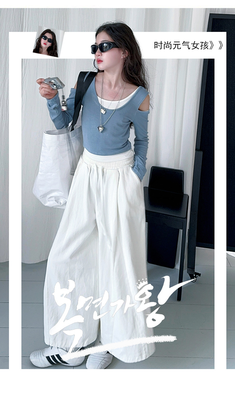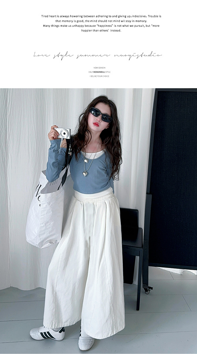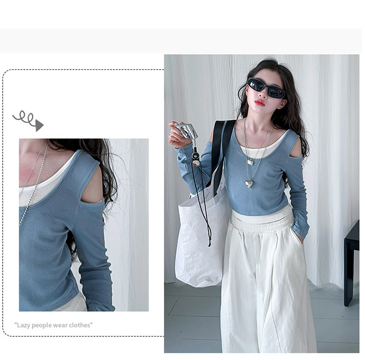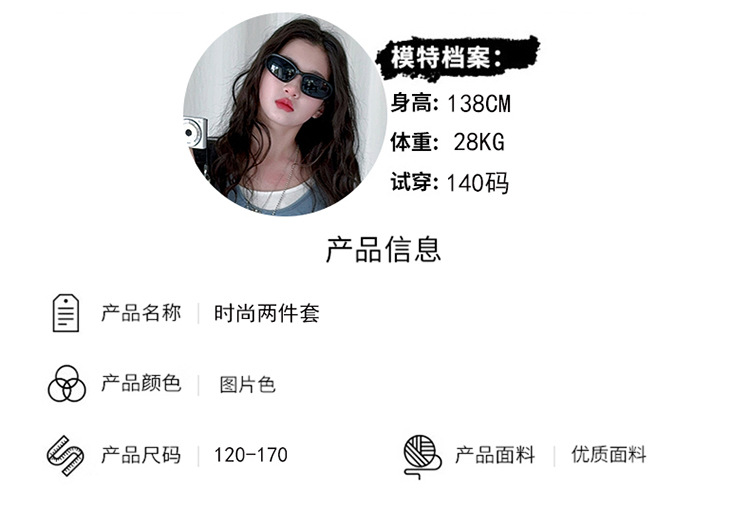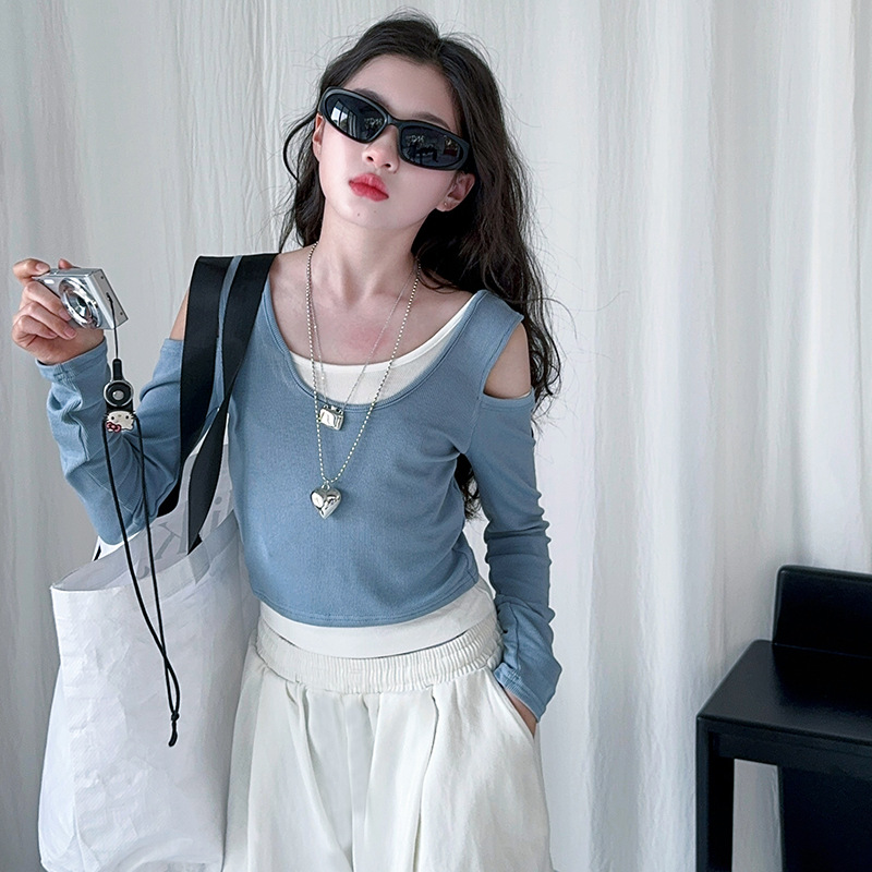소녀 가짜 투피스 어깨 긴팔 티셔츠 세련된 세트 2025 새로운 어린이 세련된 패션 올매치 트렌디 바지스토어 가기