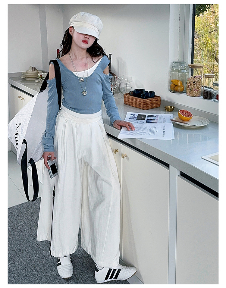 소녀 가짜 투피스 어깨 긴팔 티셔츠 세련된 세트 2025 새로운 어린이 세련된 패션 올매치 트렌디 바지