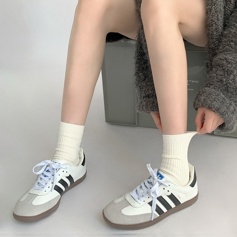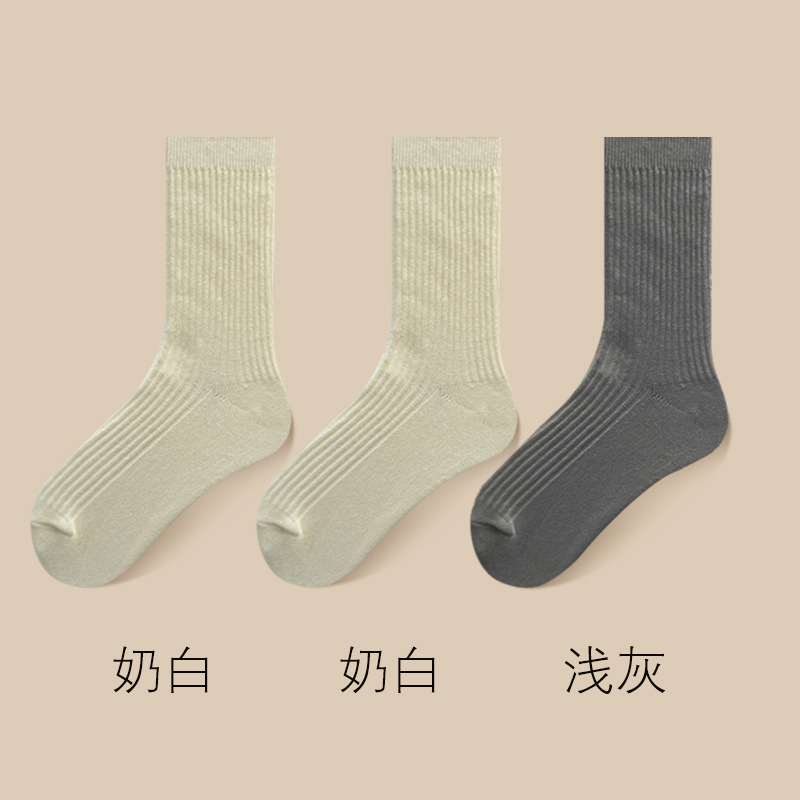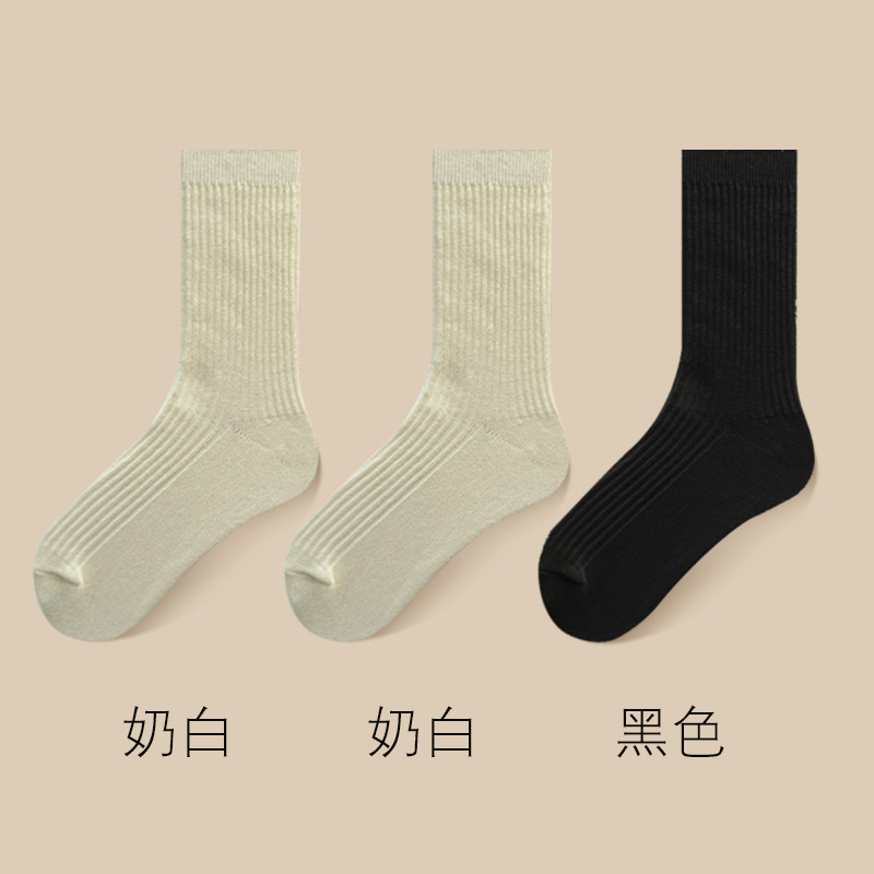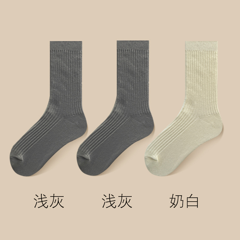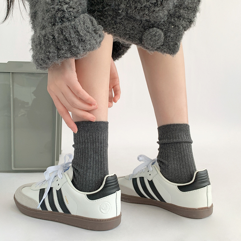 검은 중간 튜브 문 양말 다크 그레이 봄과 여름 가을 짧은 튜브 흰색 양말 양말 여성 팩 양말