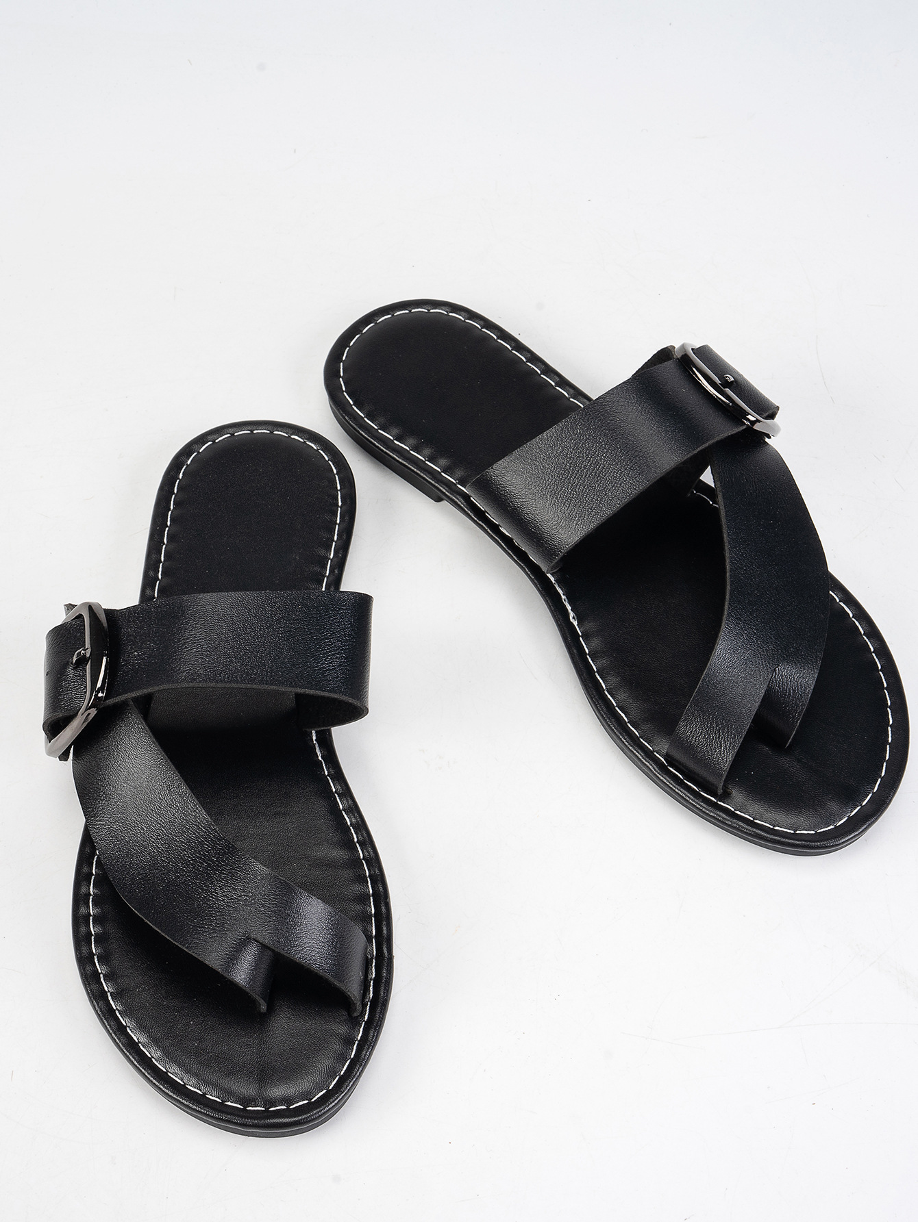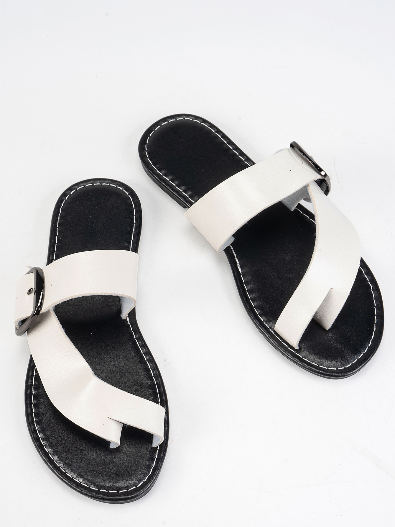국경을 넘는 대외 무역 플러스 사이즈 평평한 바닥 플립 플롭 여성 유럽과 미국의 발가락 금속 벨트 버클 플랫 힐 샌들 및 슬리퍼 독립 역스토어 가기