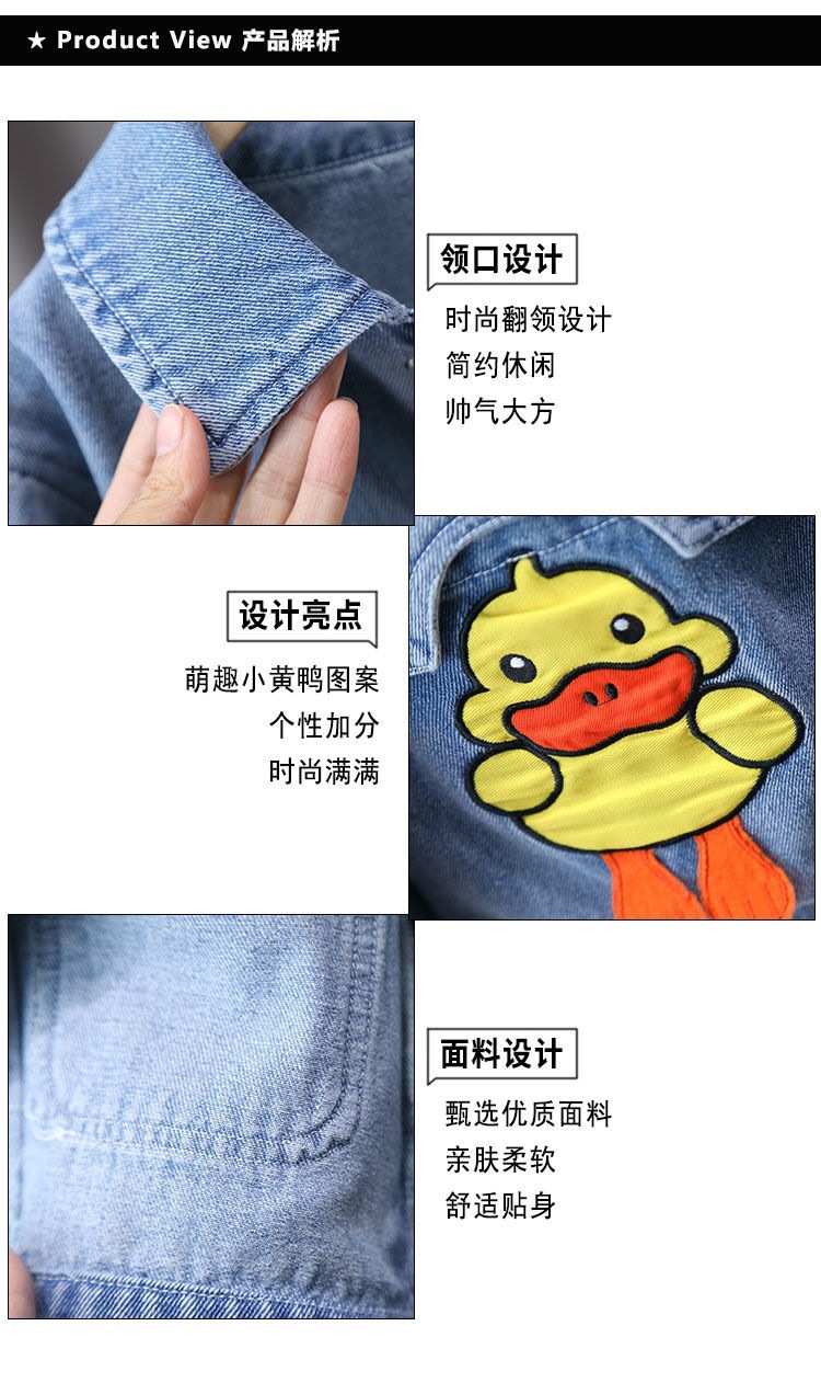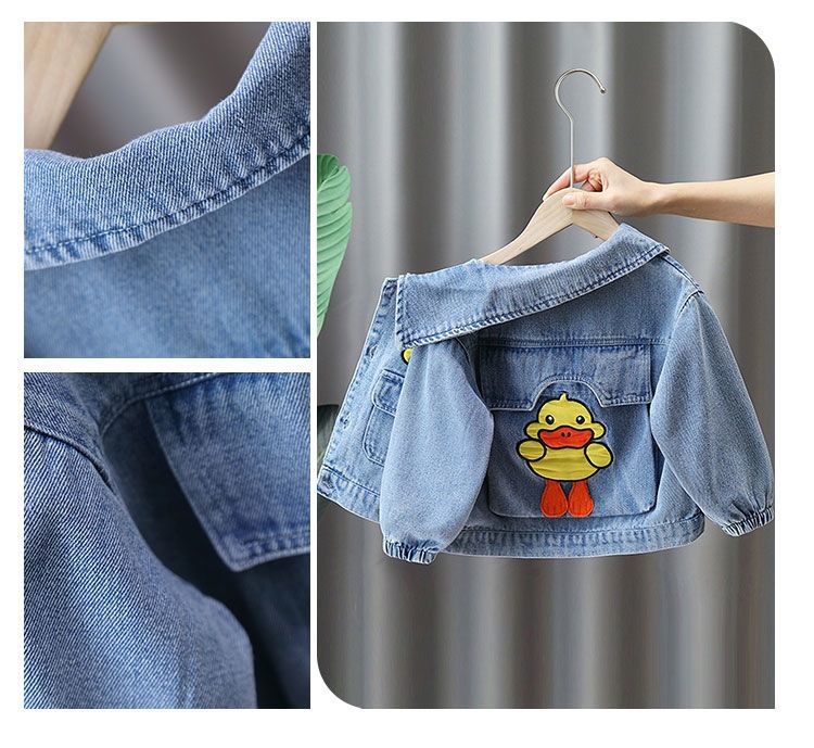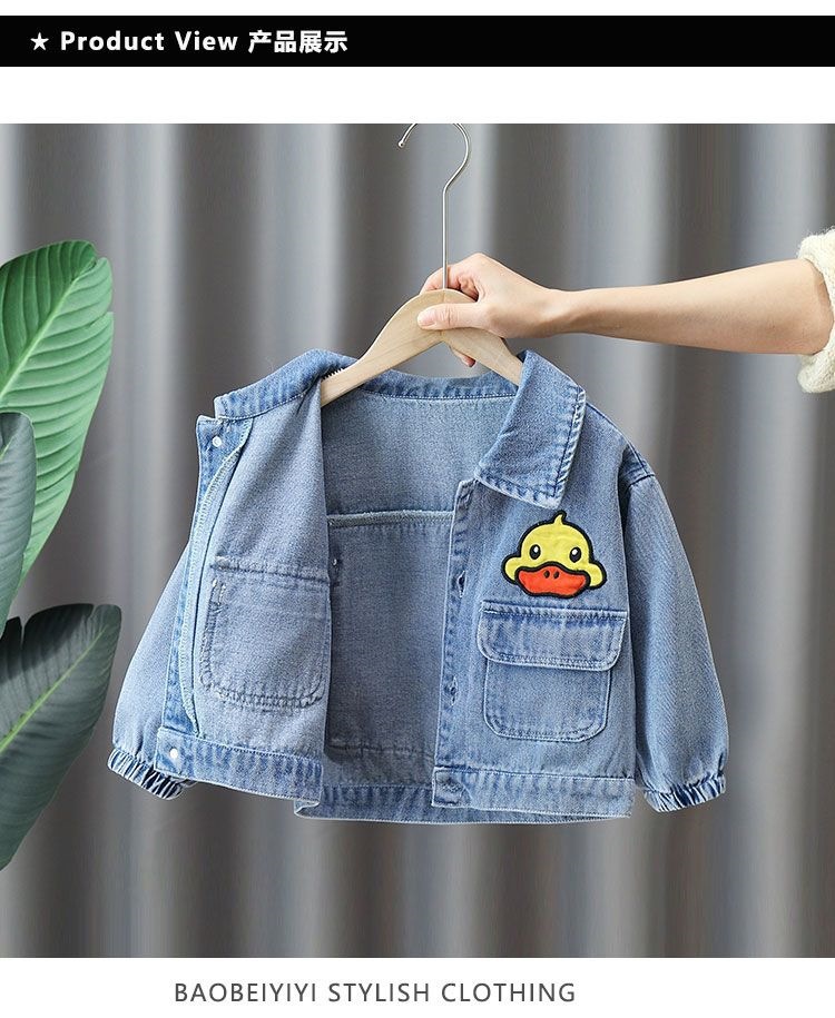 작은 노란색 오리 아동복 소년 데님 코트 봄과 가을 2025 새로운 아기 잘 생긴 옷 어린이 재킷 코트 조수스토어 가기