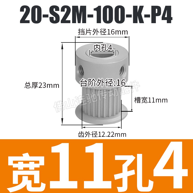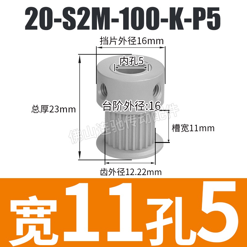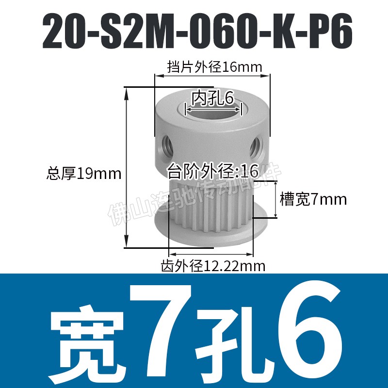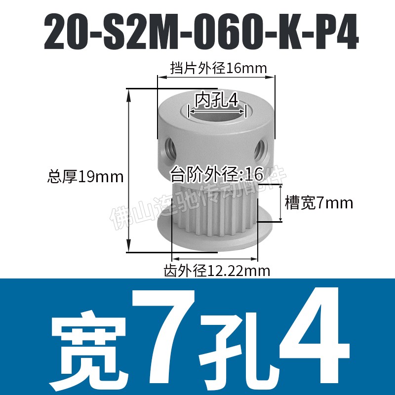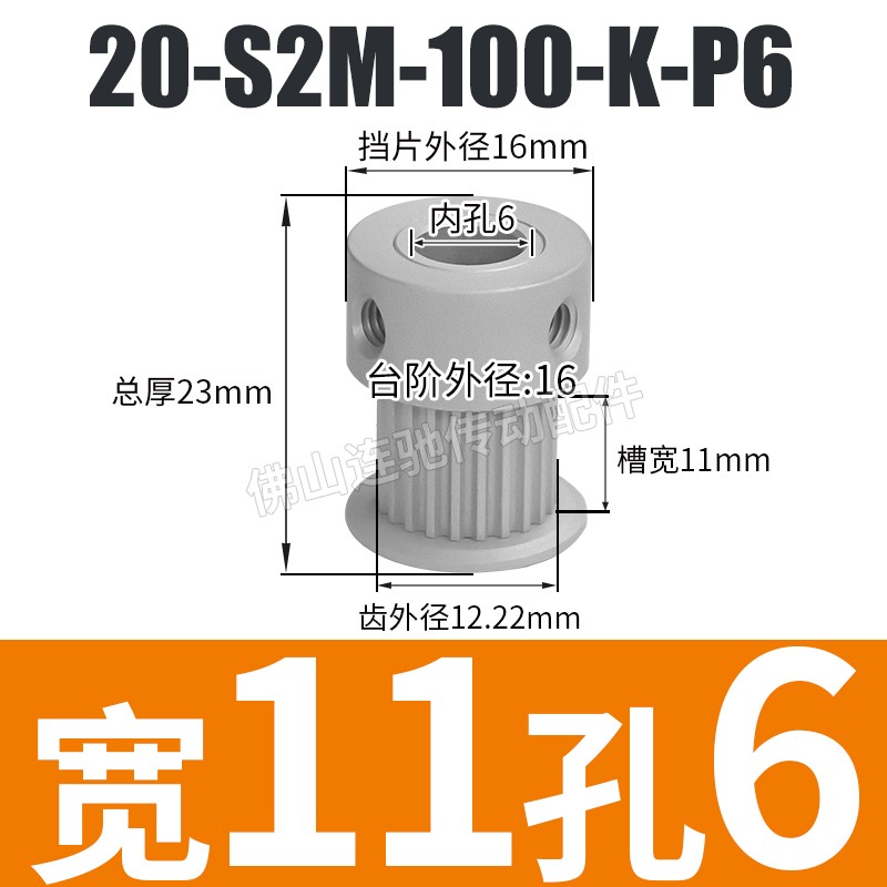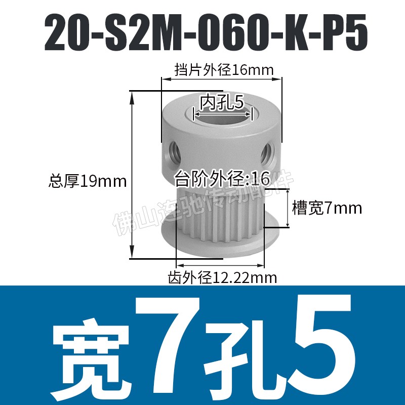 S2M20 치아 동기 풀리 홈 폭 5/7/11 K 유형 알루미늄 합금 산화물 20S2M060-K-P3 ~ 6