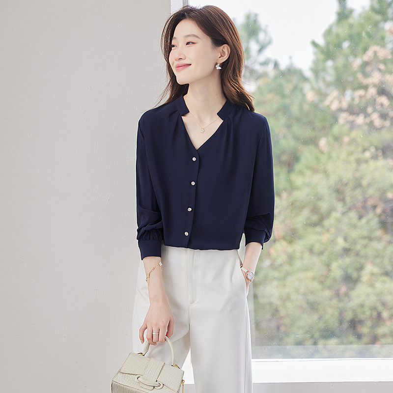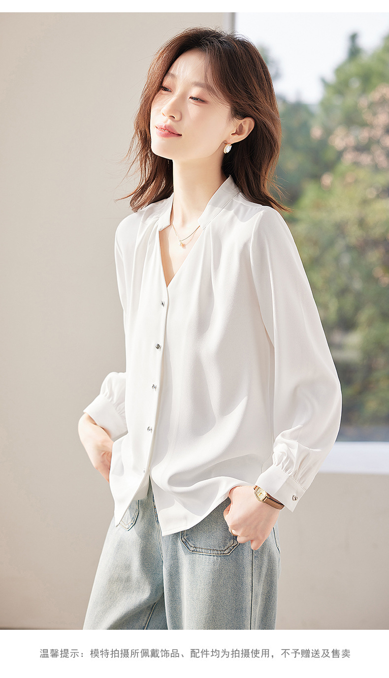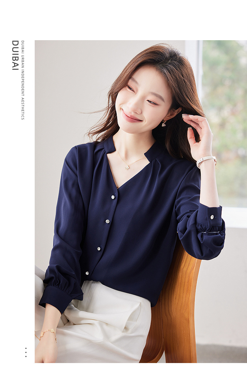 화이트 V 넥 셔츠 여성 봄과 가을 2025 새로운 인터뷰 전문 공식 원피스 직장 여성 긴팔 셔츠스토어 가기