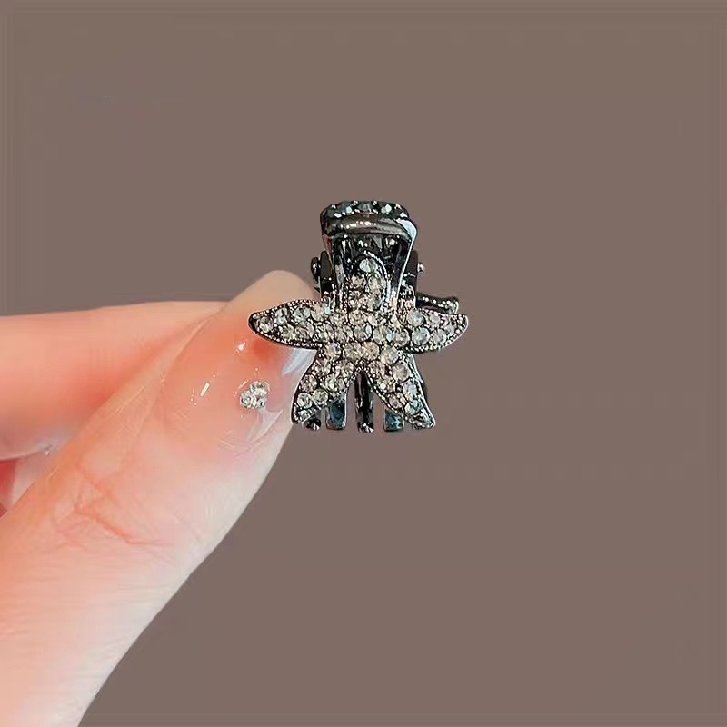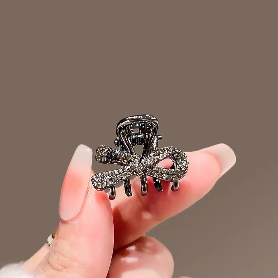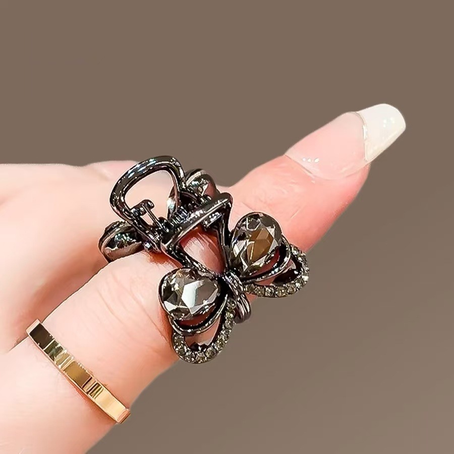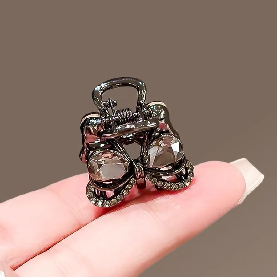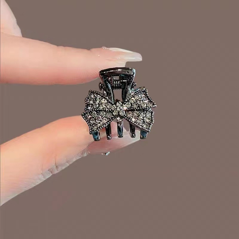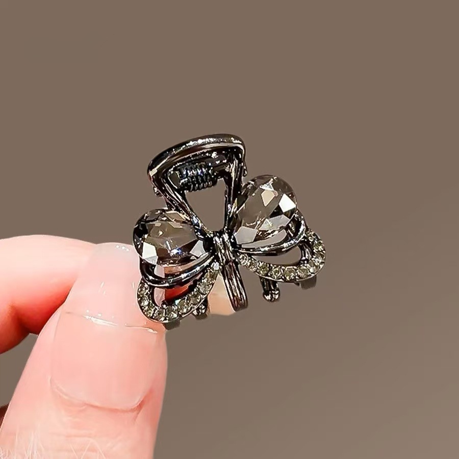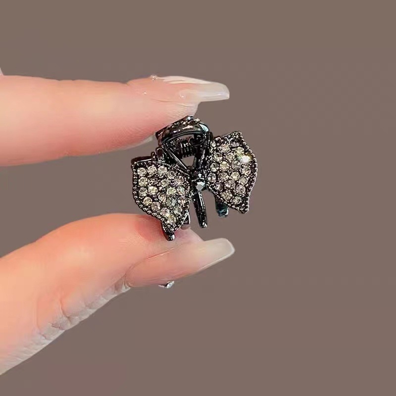 한국의 절묘한 검은 크리스탈 활 작은 머리핀 여성용 합금 귀여운 머리핀 사이드 머리핀 머리핀 머리 장식스토어 가기