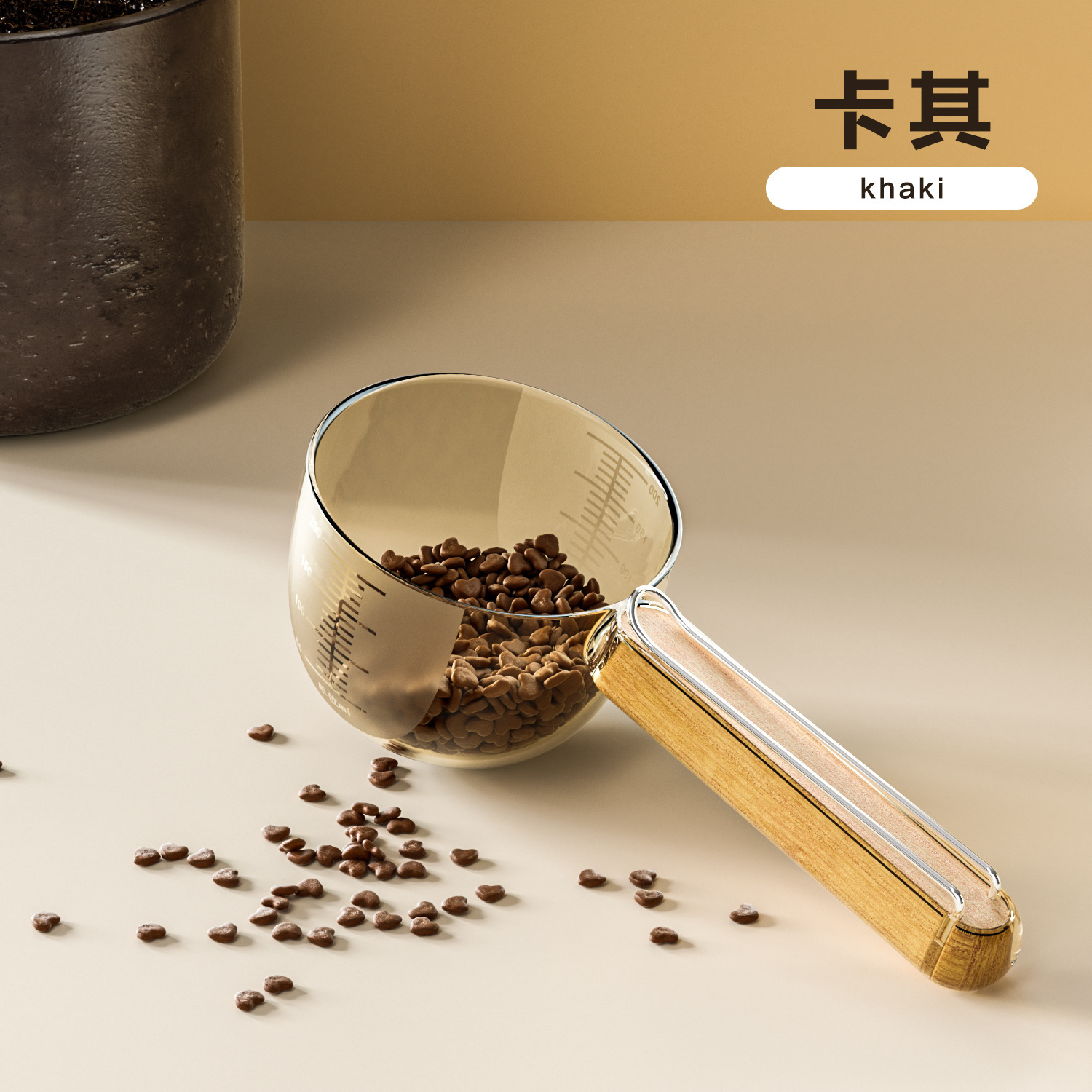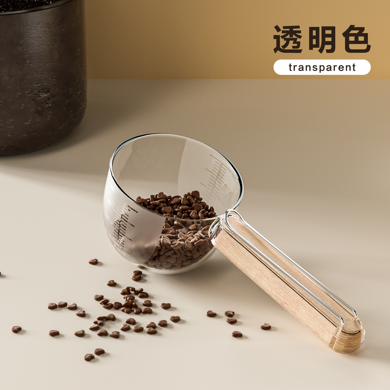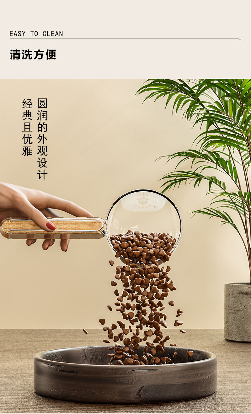 스케일이 있는 고급 나무 손잡이 애완동물 계량 스푼, 간식 계량 스푼, 고양이 사료, 강아지 사료 스푼, 애완동물 사료 스푼 도매