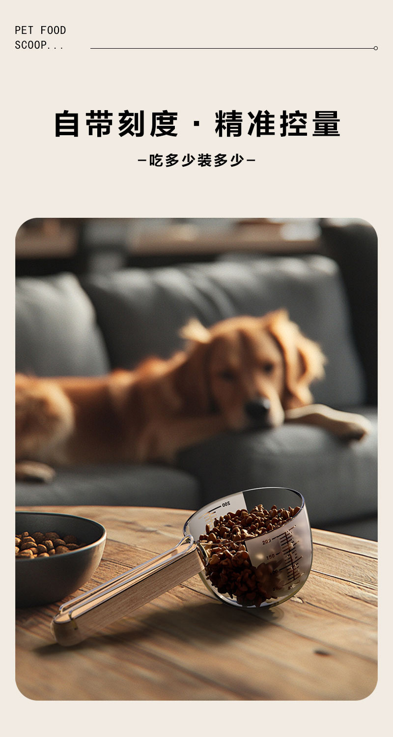 스케일이 있는 고급 나무 손잡이 애완동물 계량 스푼, 간식 계량 스푼, 고양이 사료, 강아지 사료 스푼, 애완동물 사료 스푼 도매스토어 가기