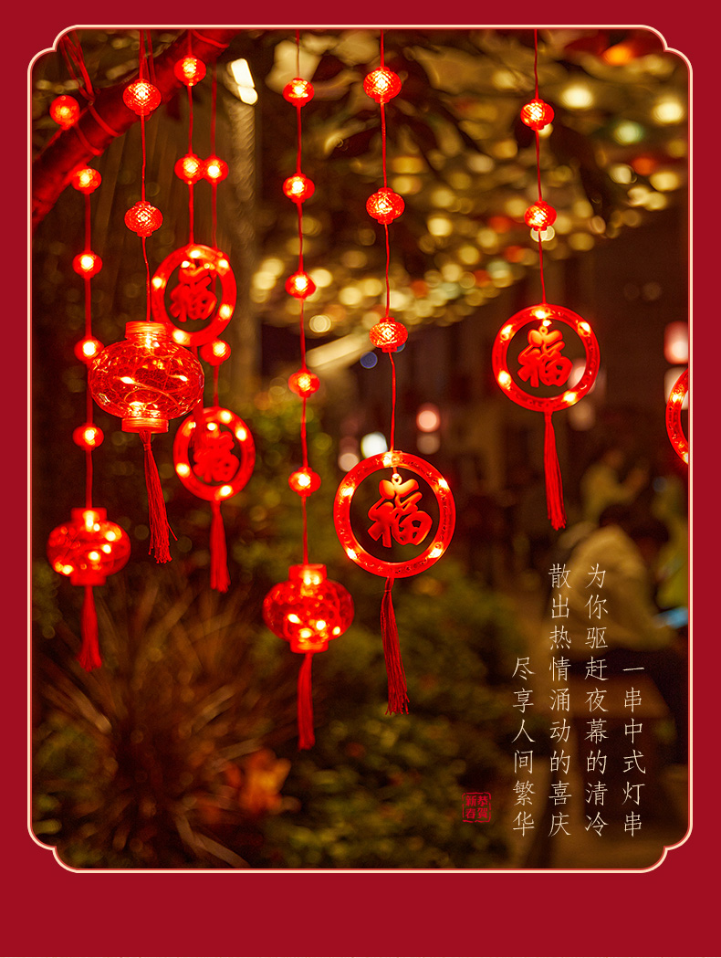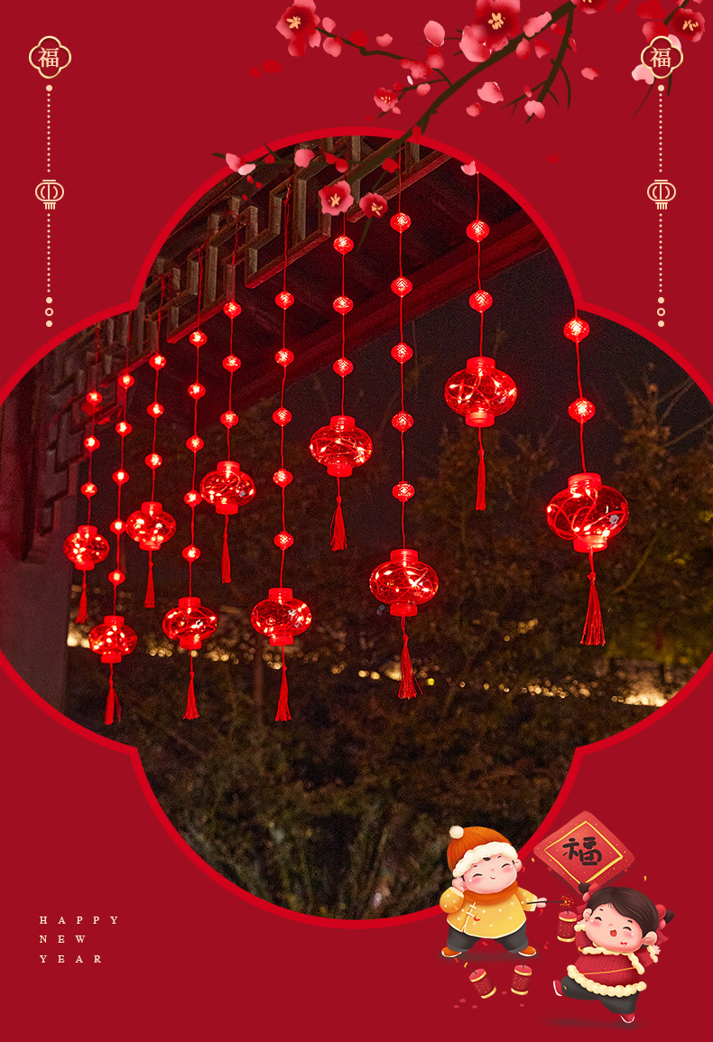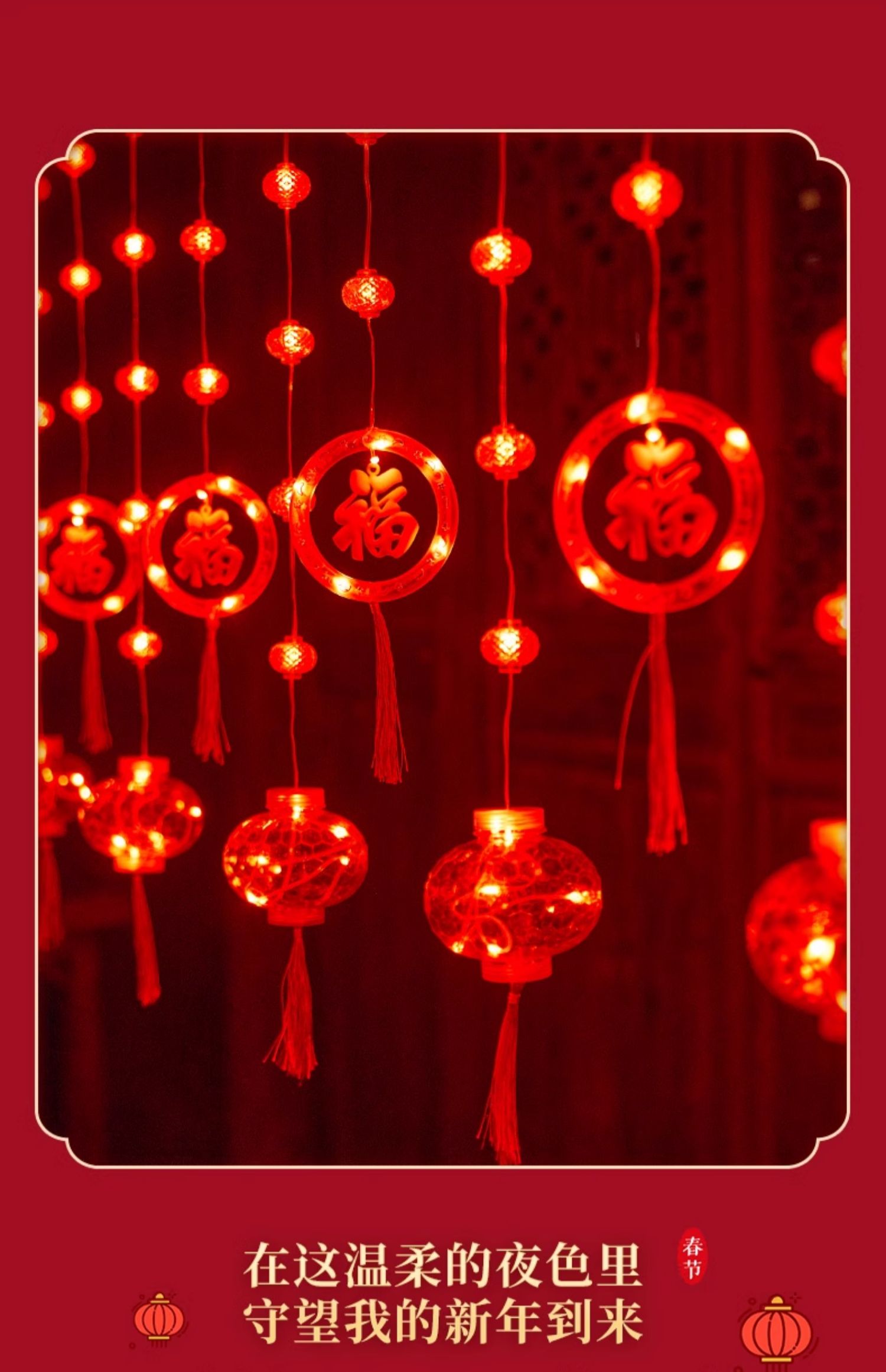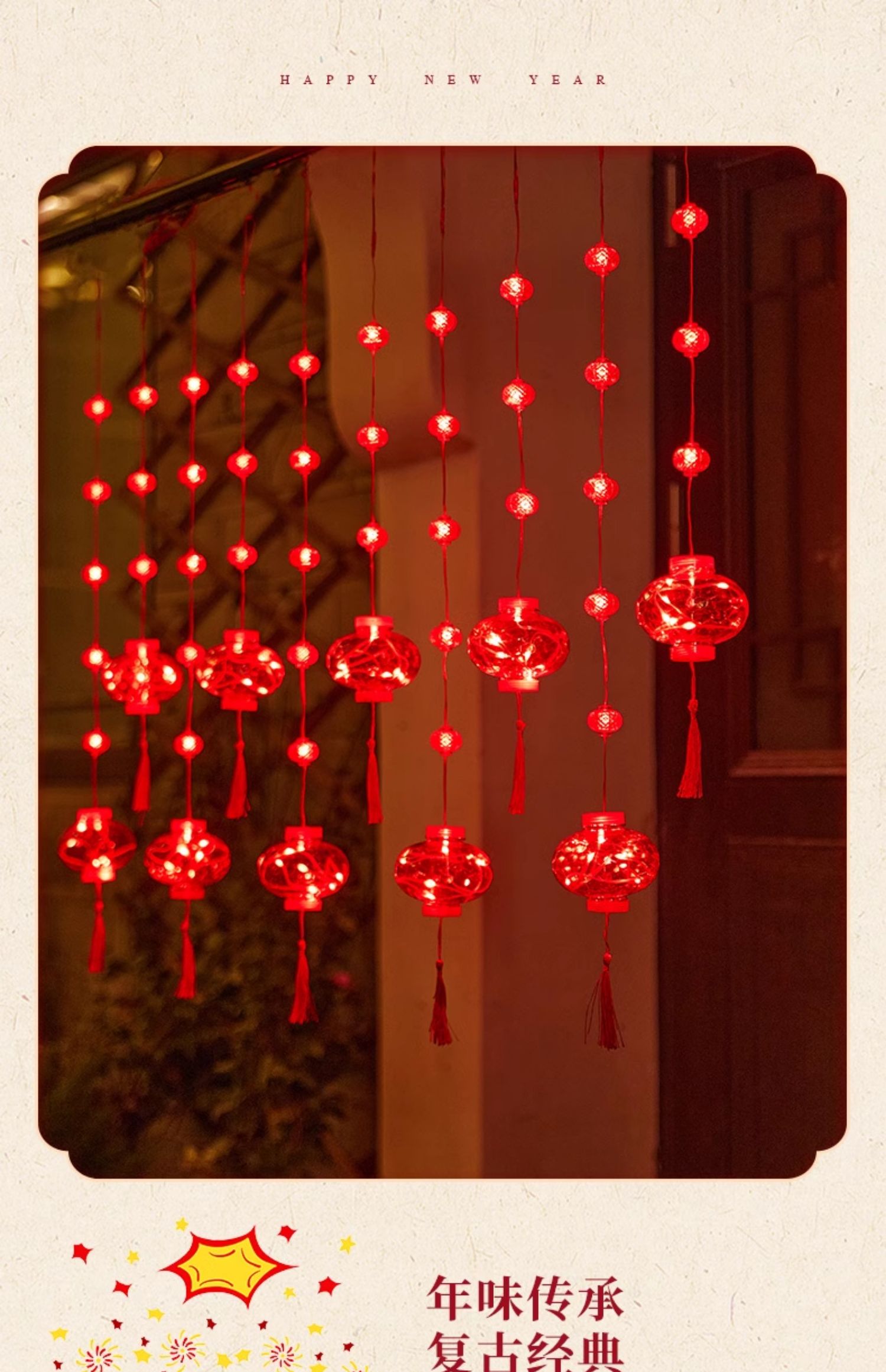 새해 봄 축제 발코니 붉은 등불 등불 등불 끈 장식 led 빛나는 푸 캐릭터 가죽 라인 가벼운 커튼 분위기 빛 끈