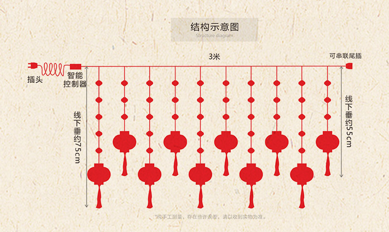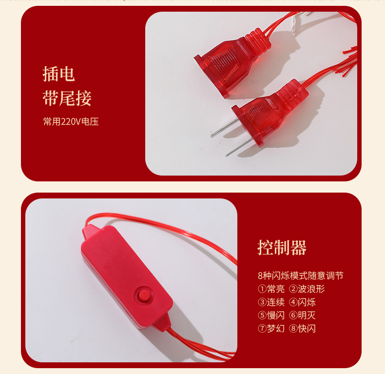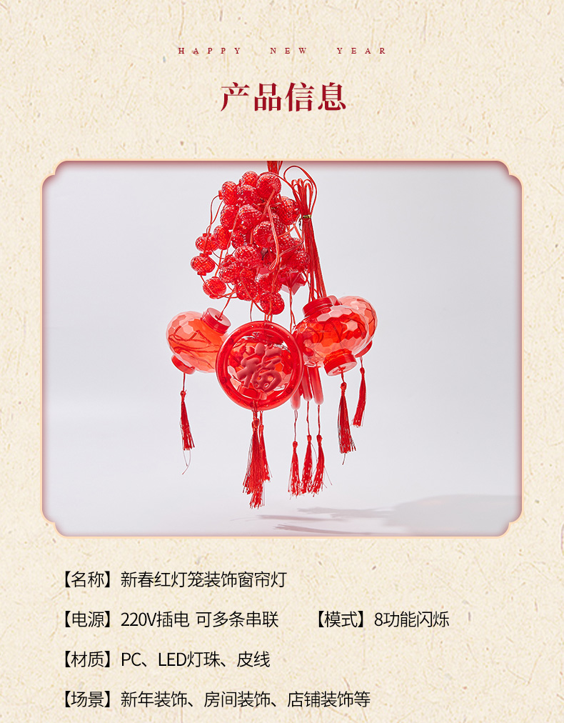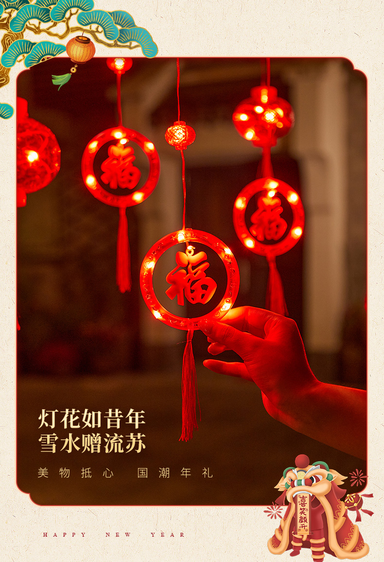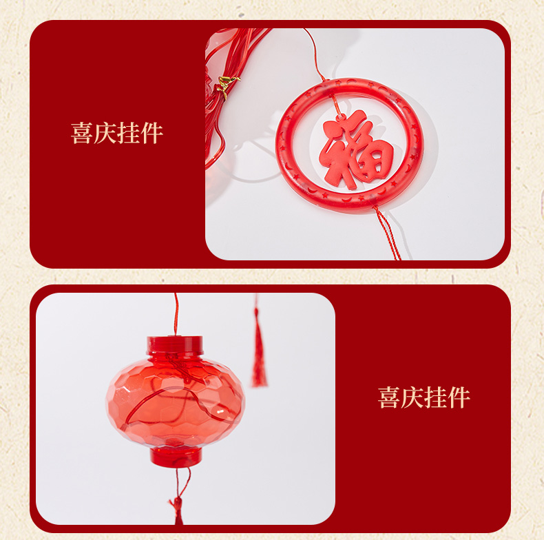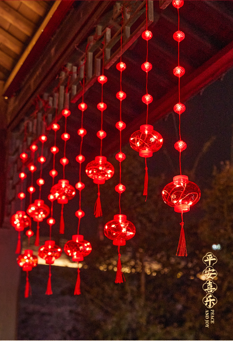새해 봄 축제 발코니 붉은 등불 등불 등불 끈 장식 led 빛나는 푸 캐릭터 가죽 라인 가벼운 커튼 분위기 빛 끈