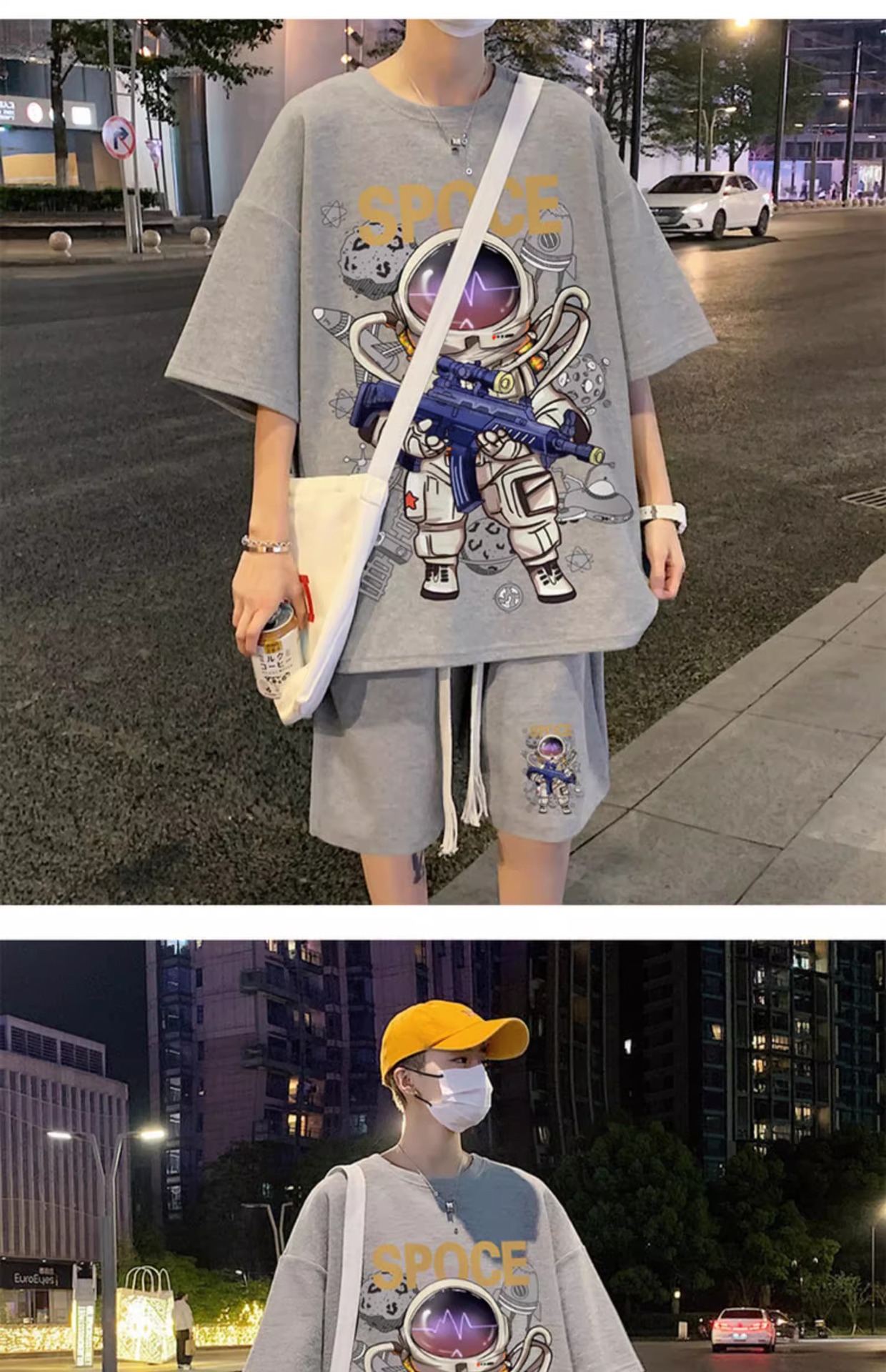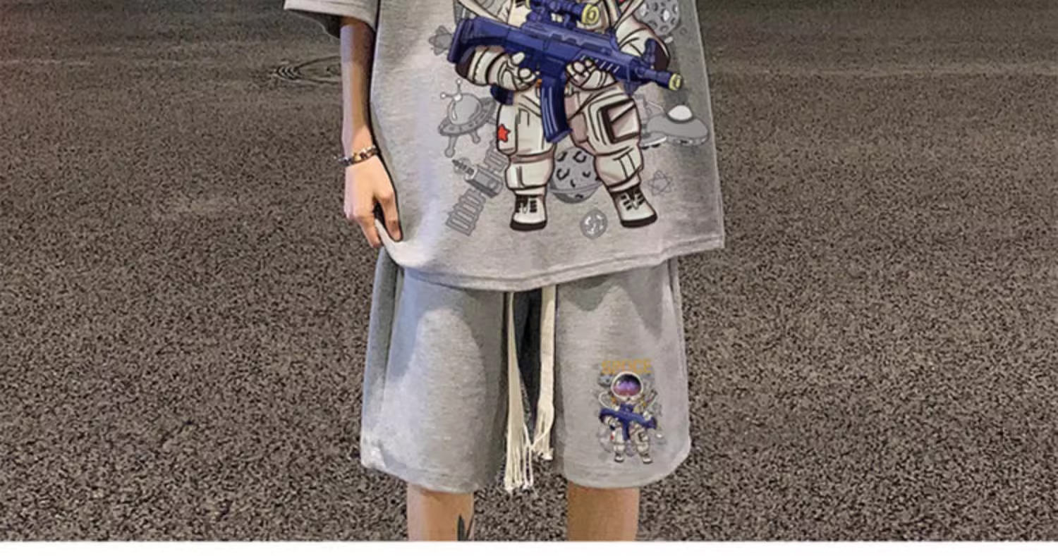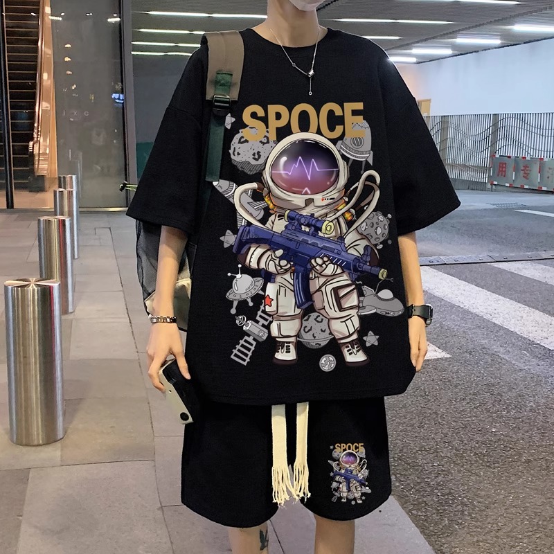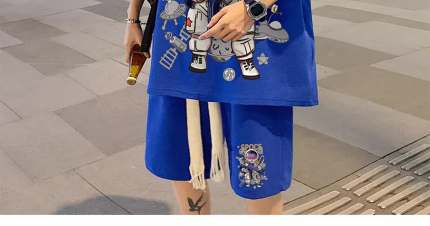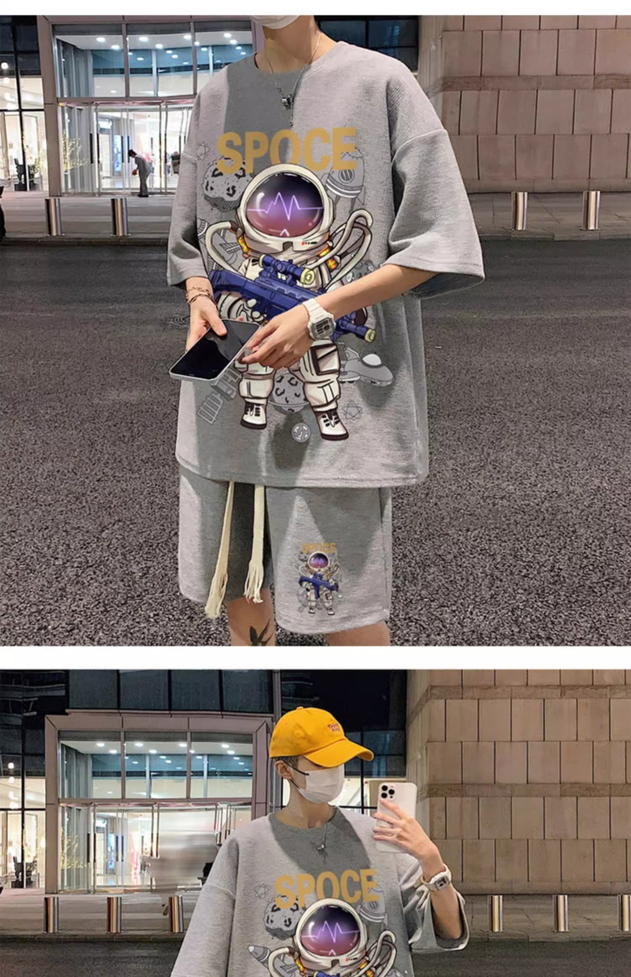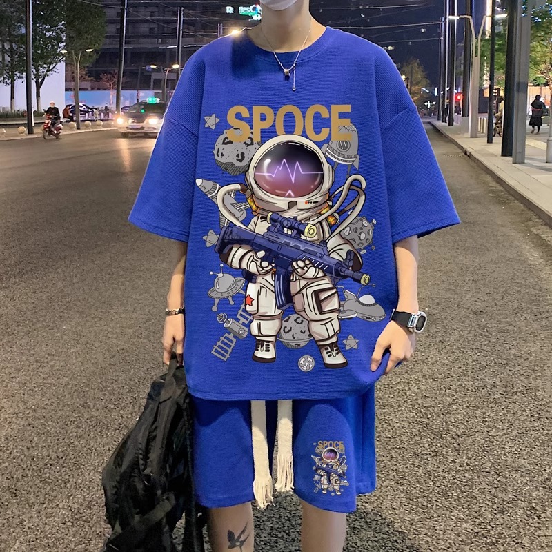 재고 있음 도매 캐주얼 스포츠 정장 남성 여름 반바지 투피스 세트 트렌디 브랜드 루즈 와플 남성 여름 정장스토어 가기