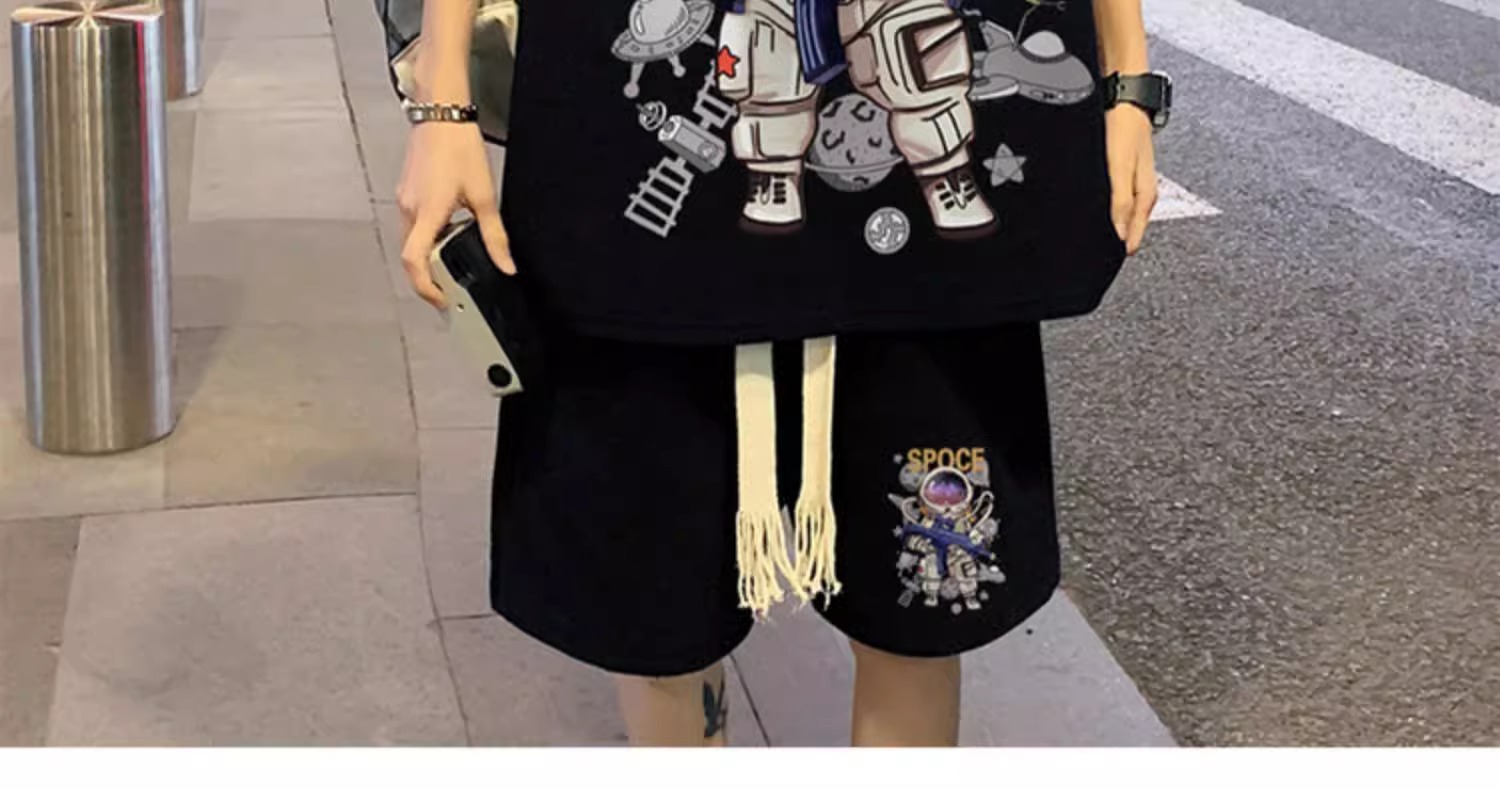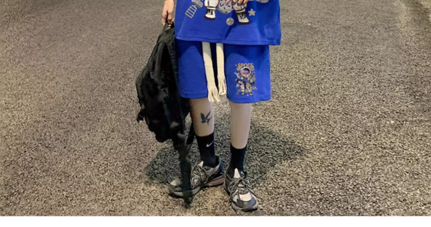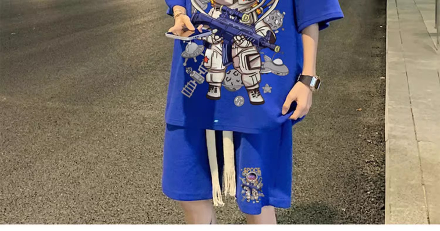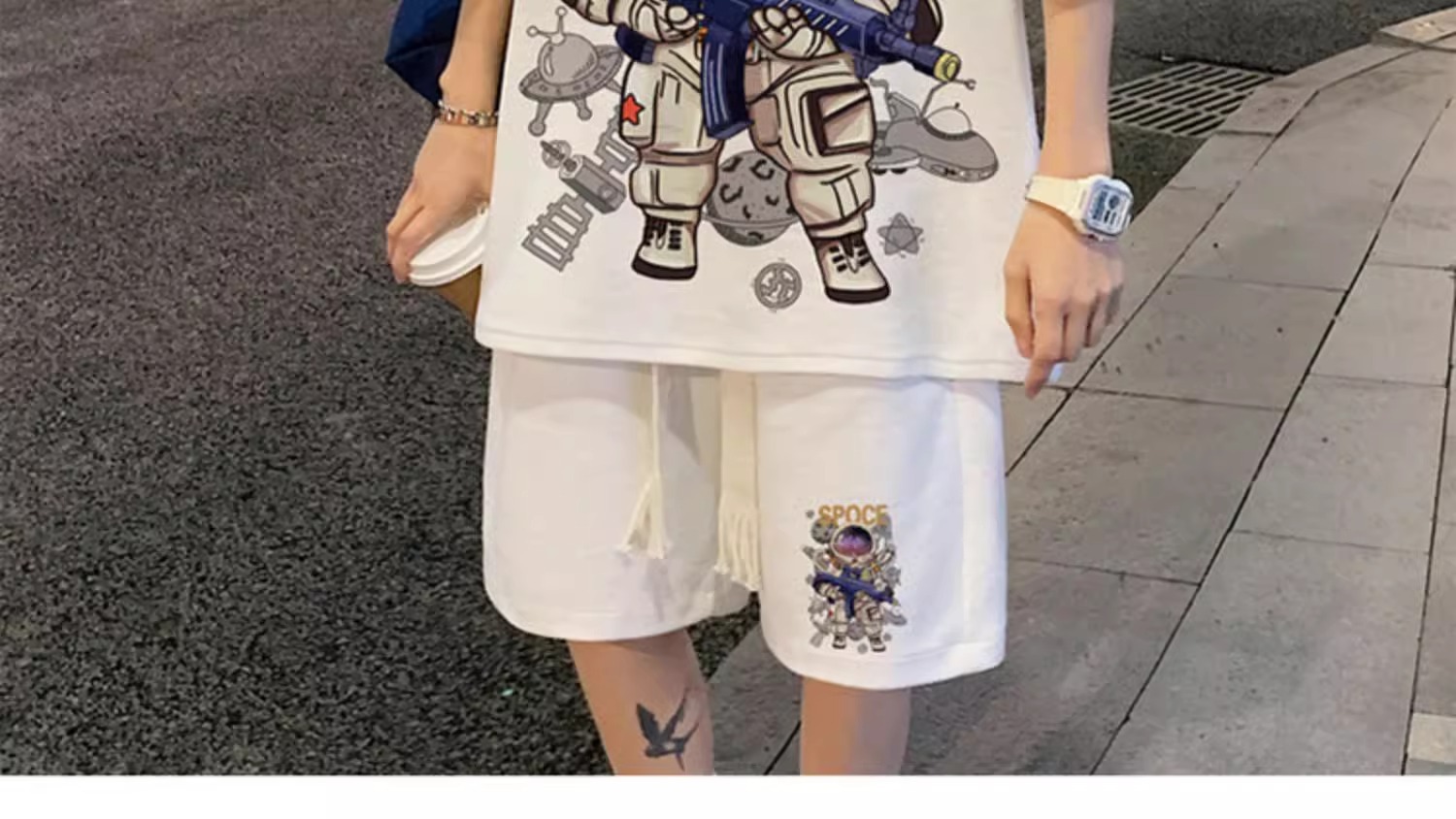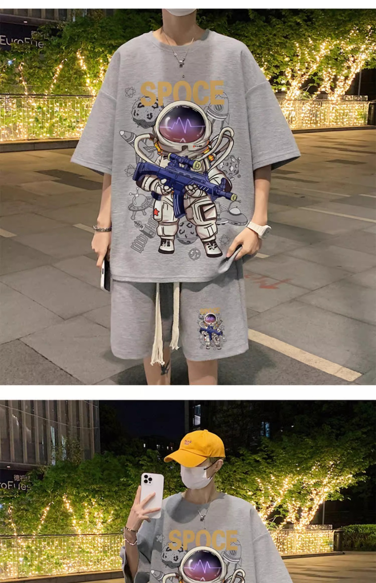 재고 있음 도매 캐주얼 스포츠 정장 남성 여름 반바지 투피스 세트 트렌디 브랜드 루즈 와플 남성 여름 정장스토어 가기