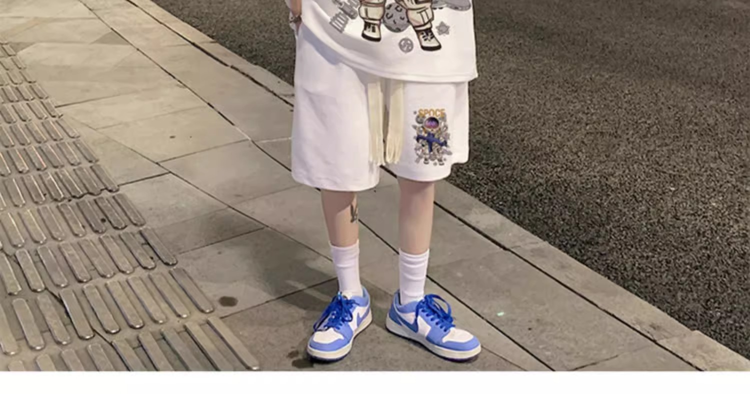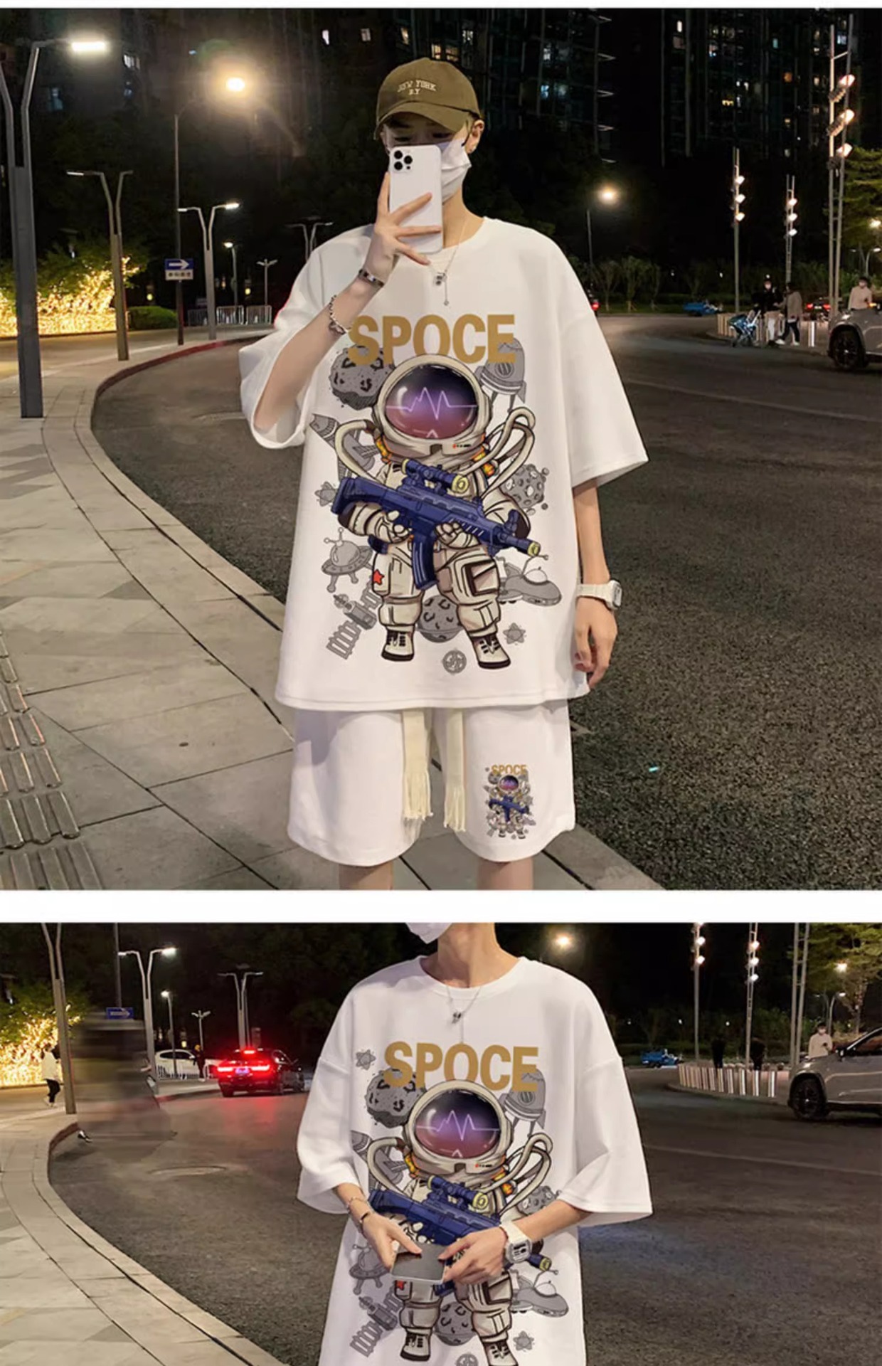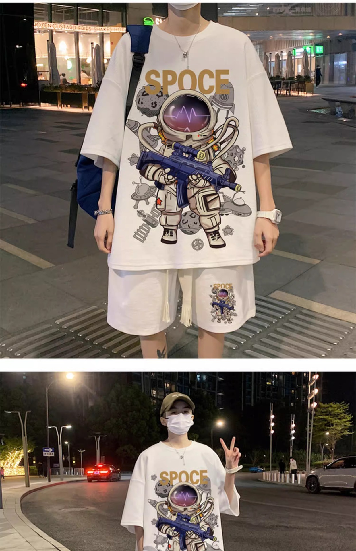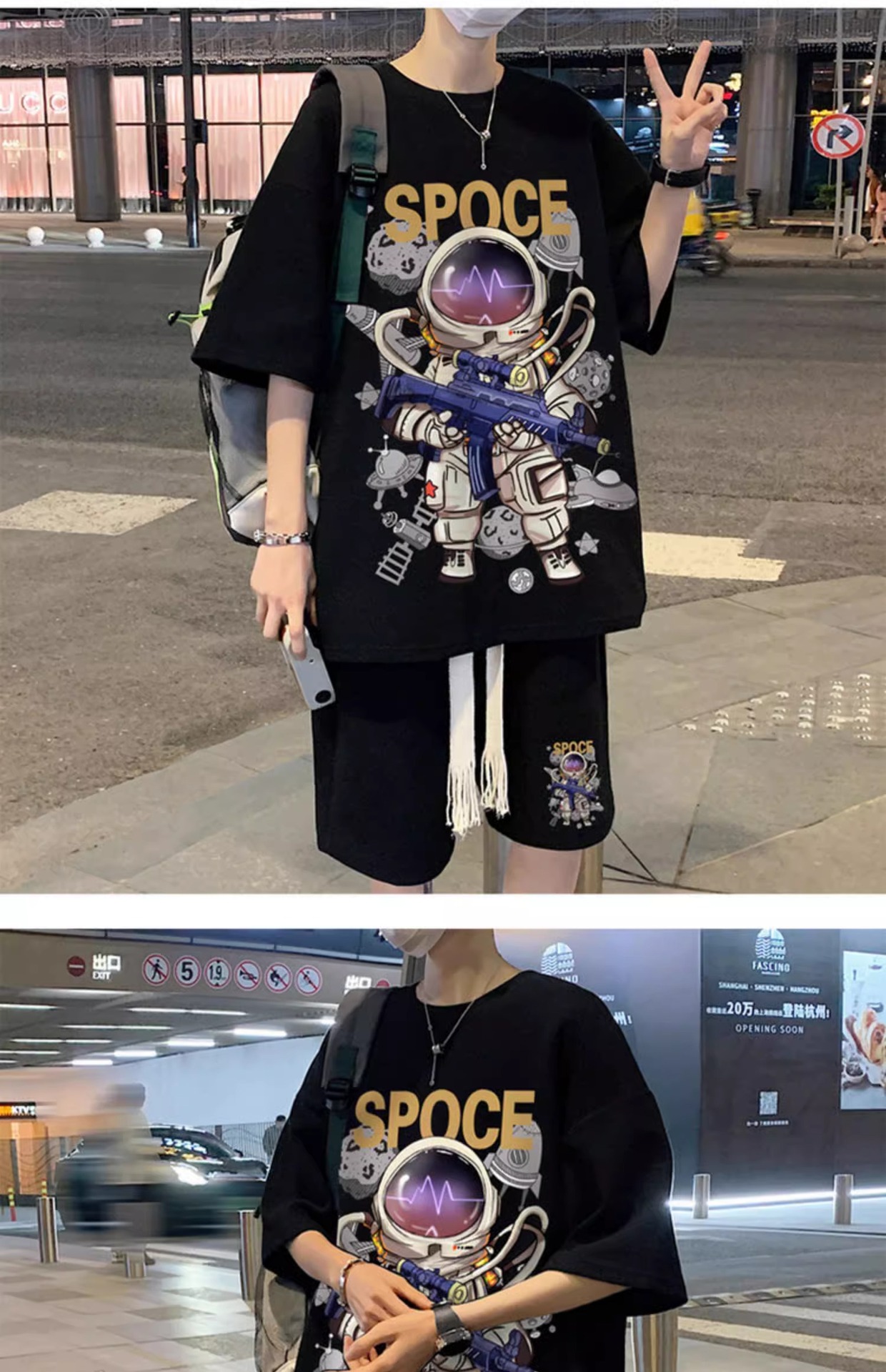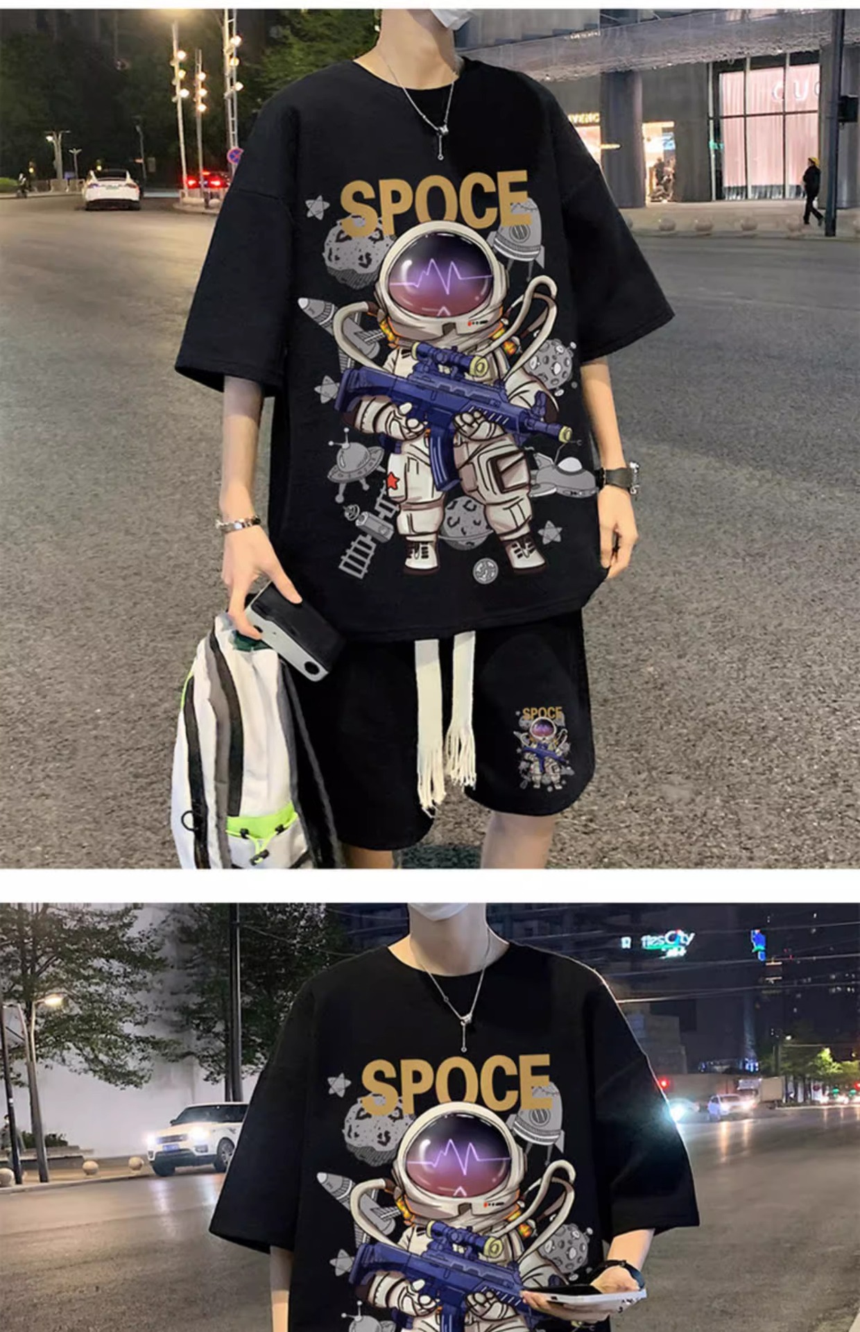 재고 있음 도매 캐주얼 스포츠 정장 남성 여름 반바지 투피스 세트 트렌디 브랜드 루즈 와플 남성 여름 정장스토어 가기