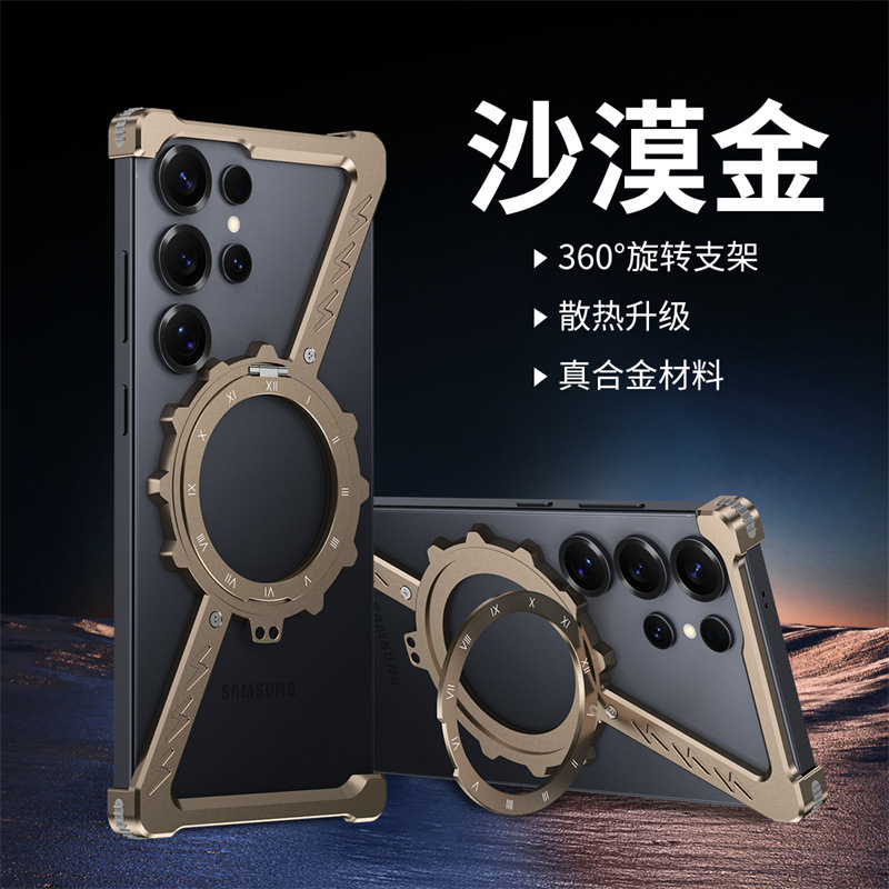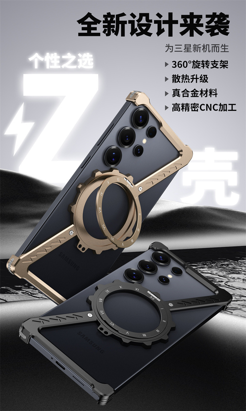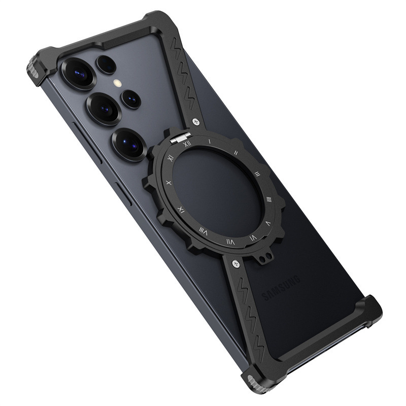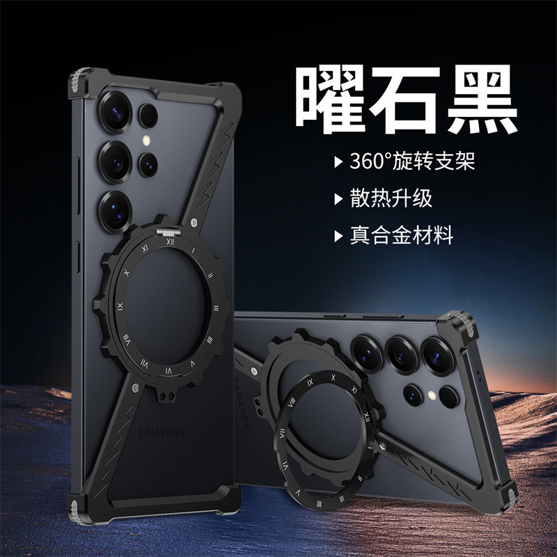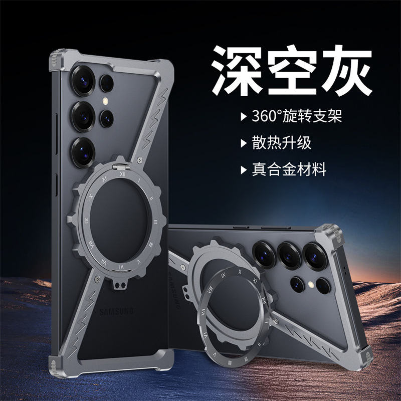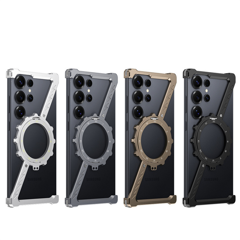 삼성 S25울트라 발광 360 도 브래킷 마그네틱 흡입 베어 메탈 네 모서리 드롭 방지 Z 모양의 알루미늄 합금 전화 케이스에 적합