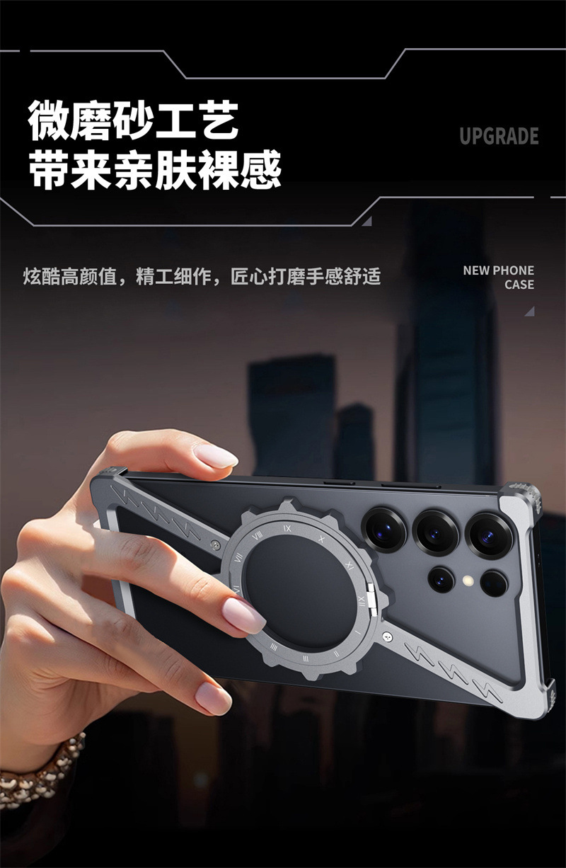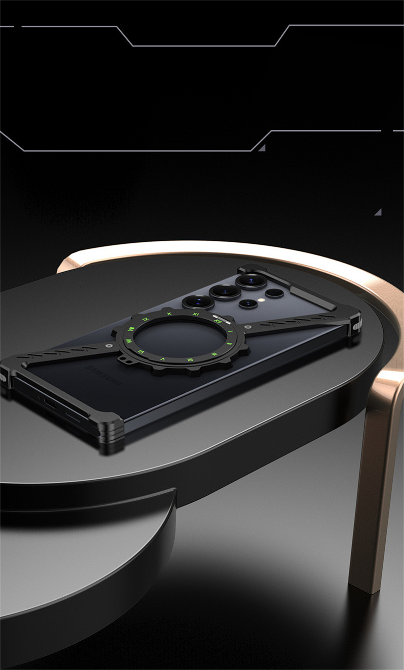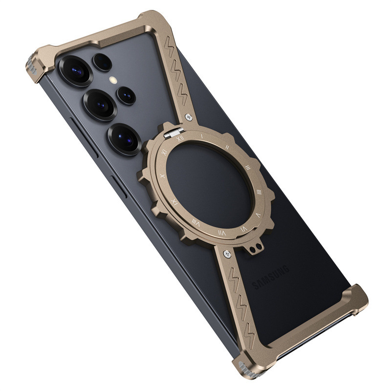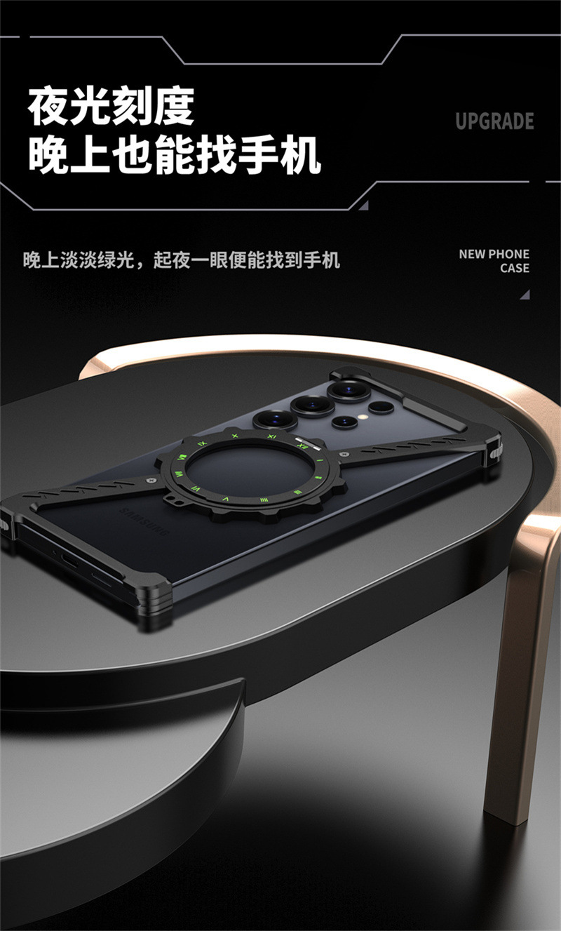 삼성 S25울트라 발광 360 도 브래킷 마그네틱 흡입 베어 메탈 네 모서리 드롭 방지 Z 모양의 알루미늄 합금 전화 케이스에 적합