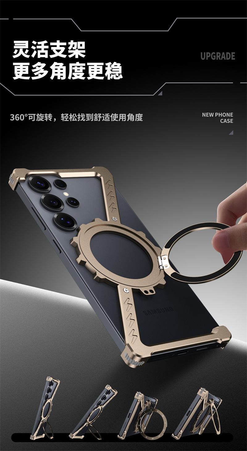 삼성 S25울트라 발광 360 도 브래킷 마그네틱 흡입 베어 메탈 네 모서리 드롭 방지 Z 모양의 알루미늄 합금 전화 케이스에 적합스토어 가기