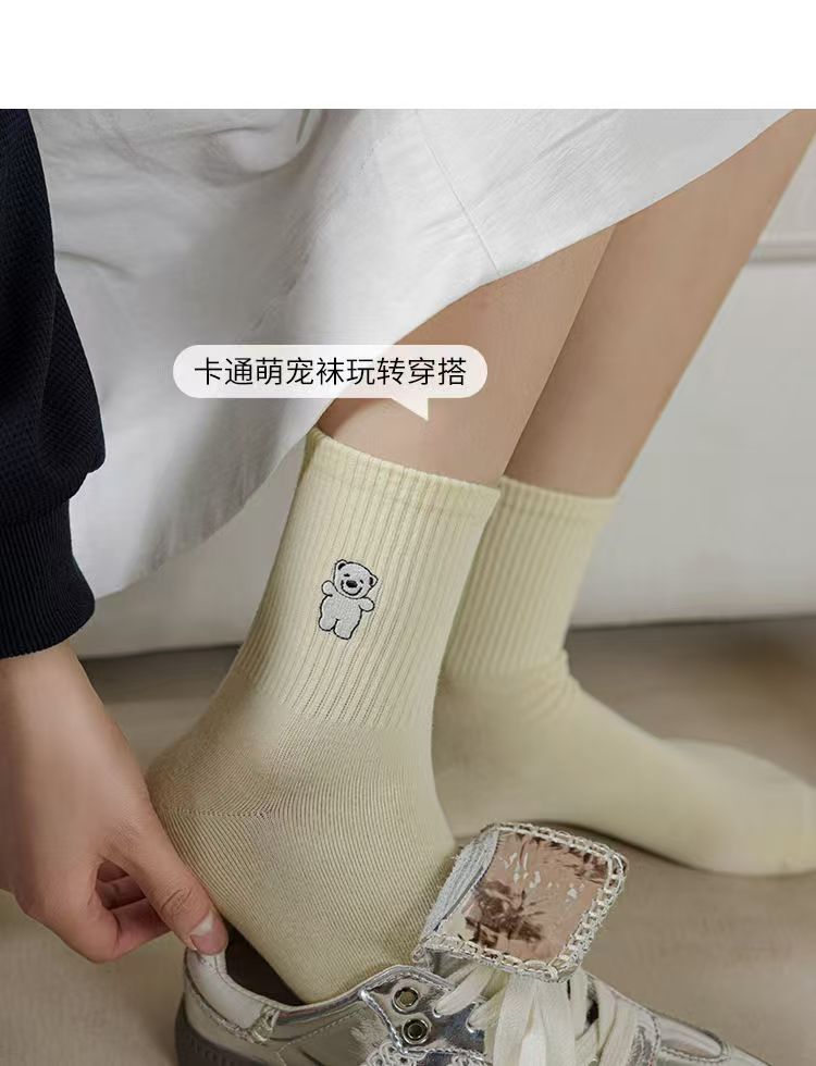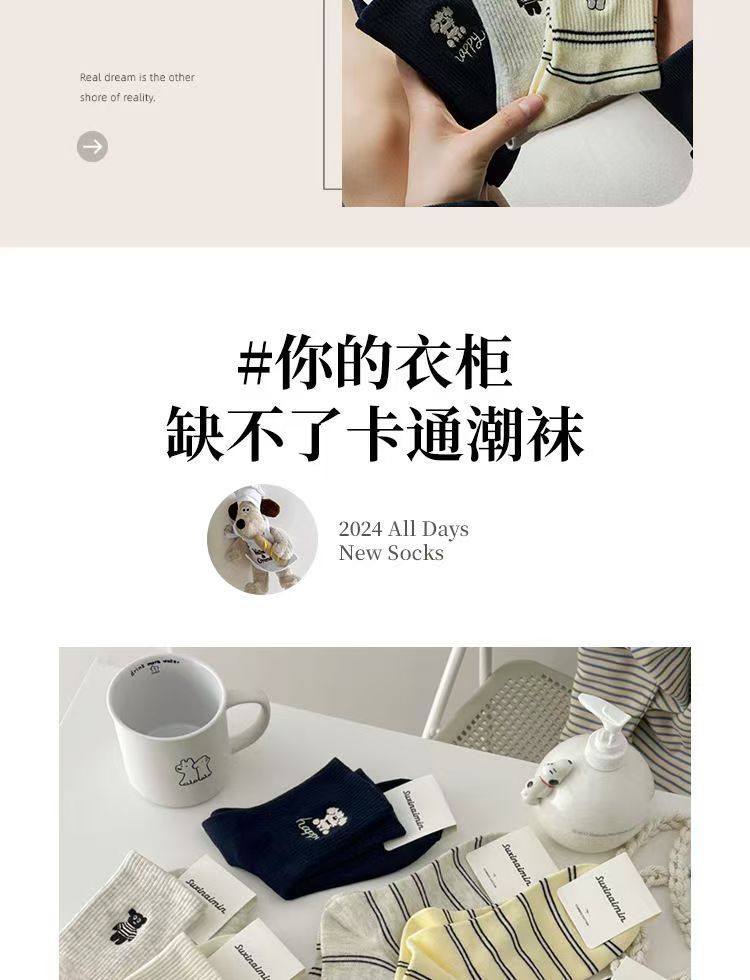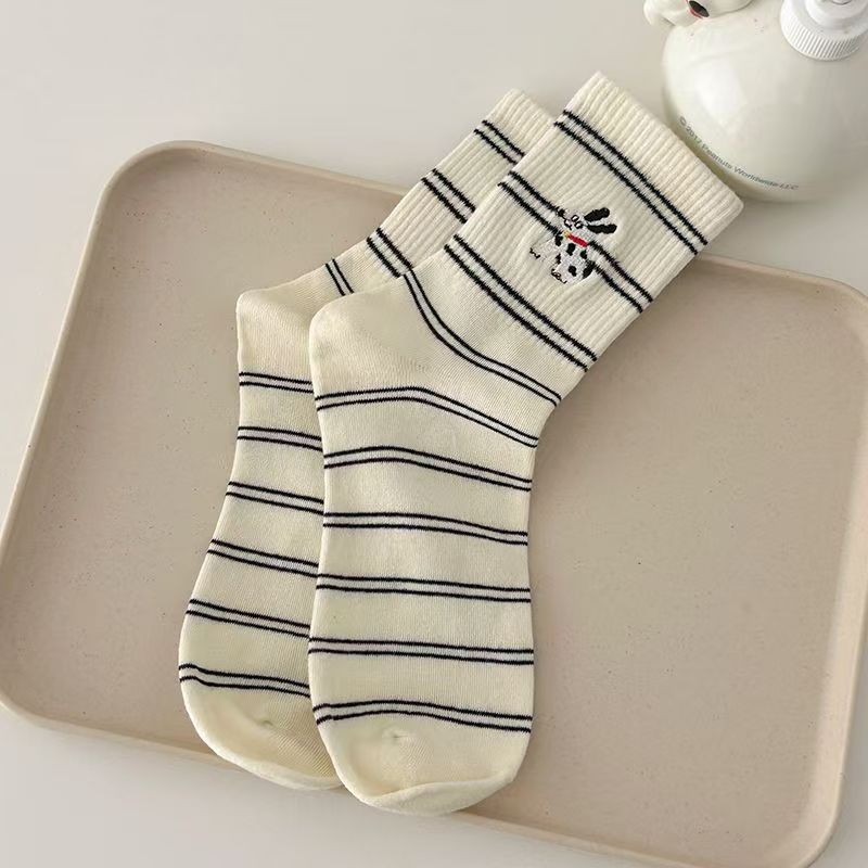 여성용 가을 귀여운 강아지 힐링 스트라이프 중목 양말 인스 스타일 양말 대학 스타일 공장 직판