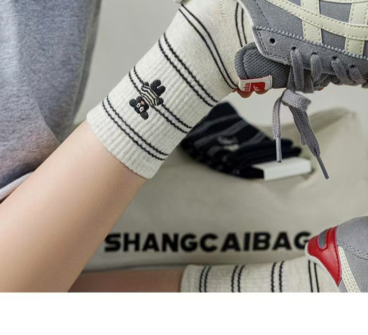 여성용 가을 귀여운 강아지 힐링 스트라이프 중목 양말 인스 스타일 양말 대학 스타일 공장 직판스토어 가기