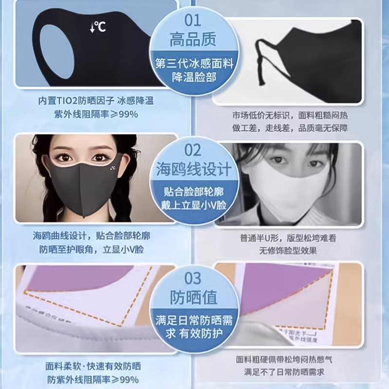흔적없는 작은 얼음 피부 다용도 마스크 얼음 실크 입체 단순 고급 풀 페이스 여름 자외선 차단 마스크