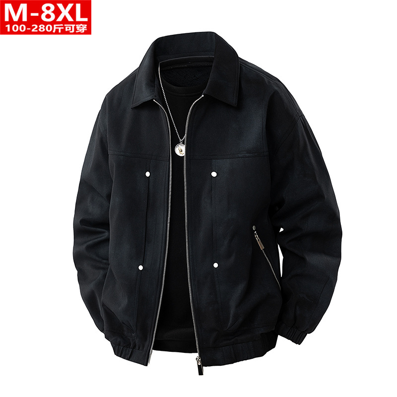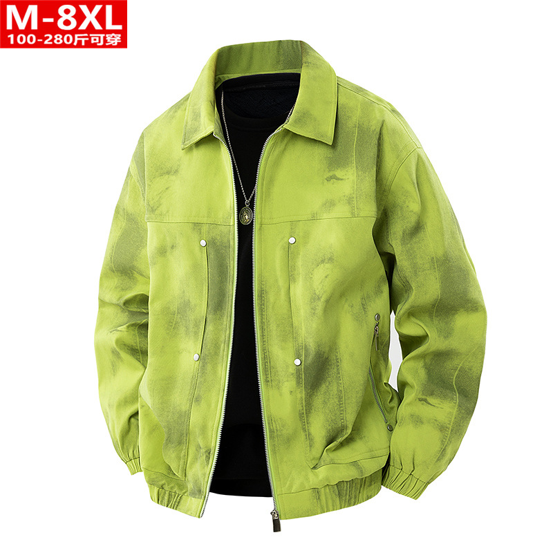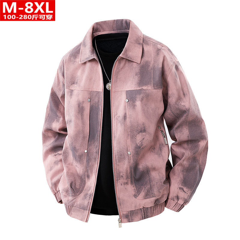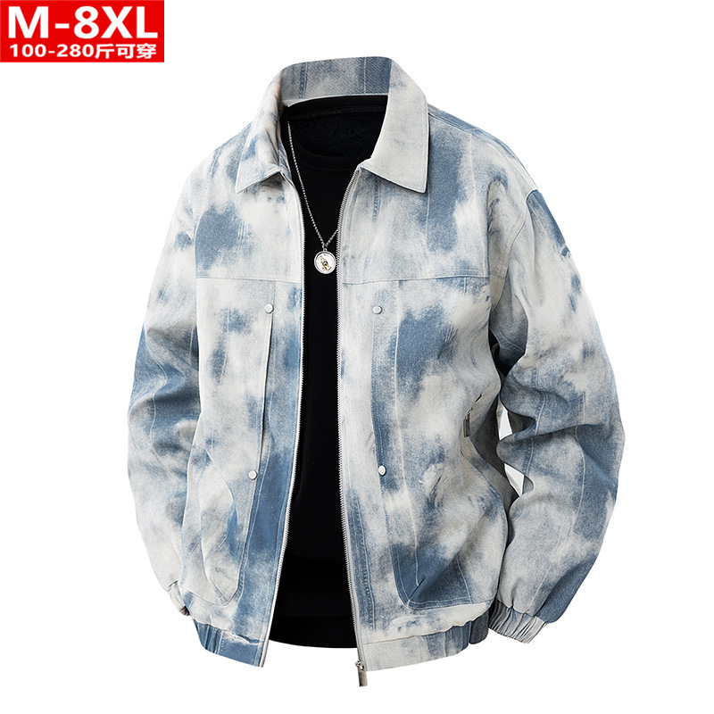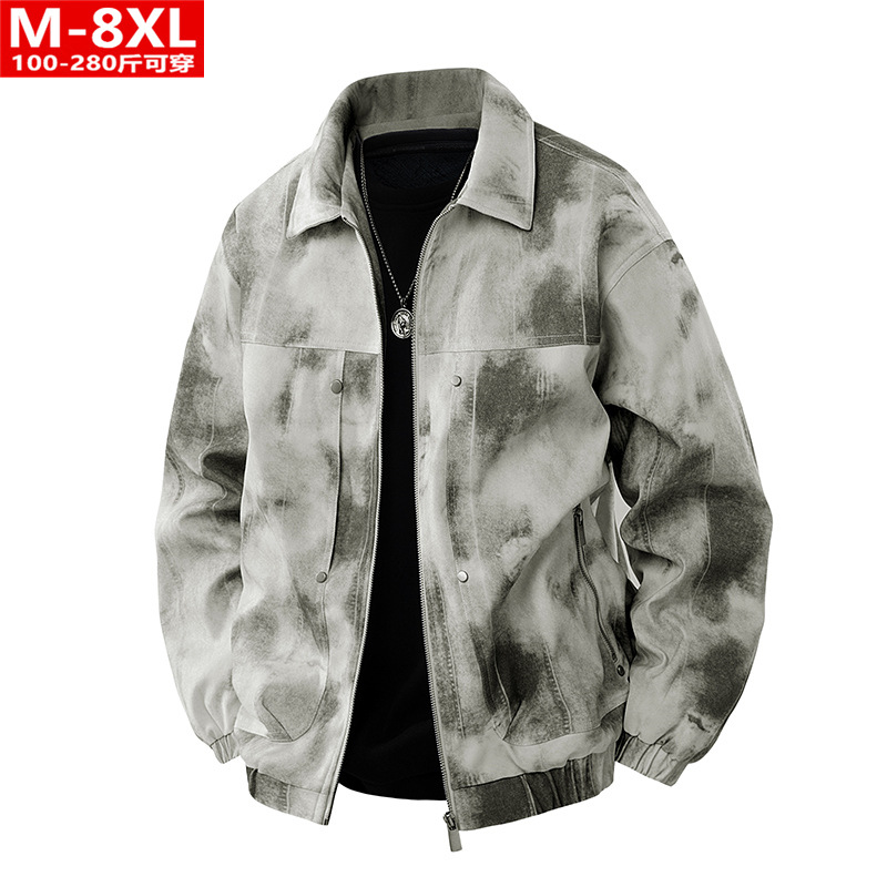 봄과 가을 트렌디 한 홍콩 스타일 남성 패션 프린트 스퀘어 칼라 자켓 지방 남성 플러스 사이즈 느슨한 캐주얼 자켓스토어 가기