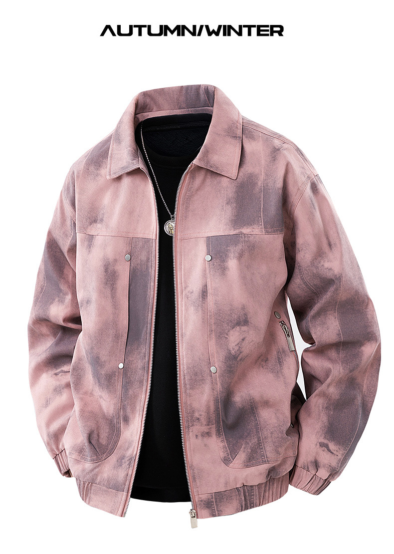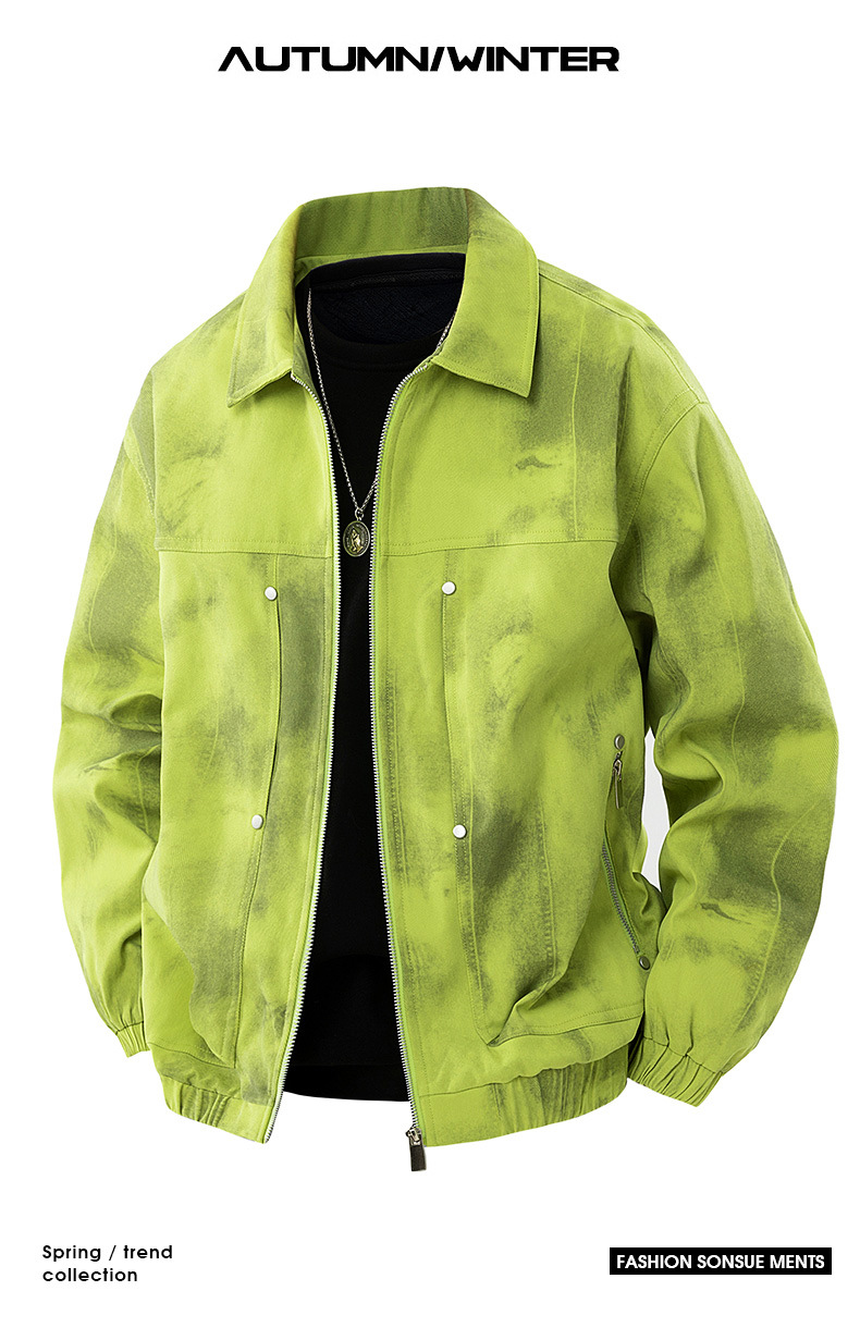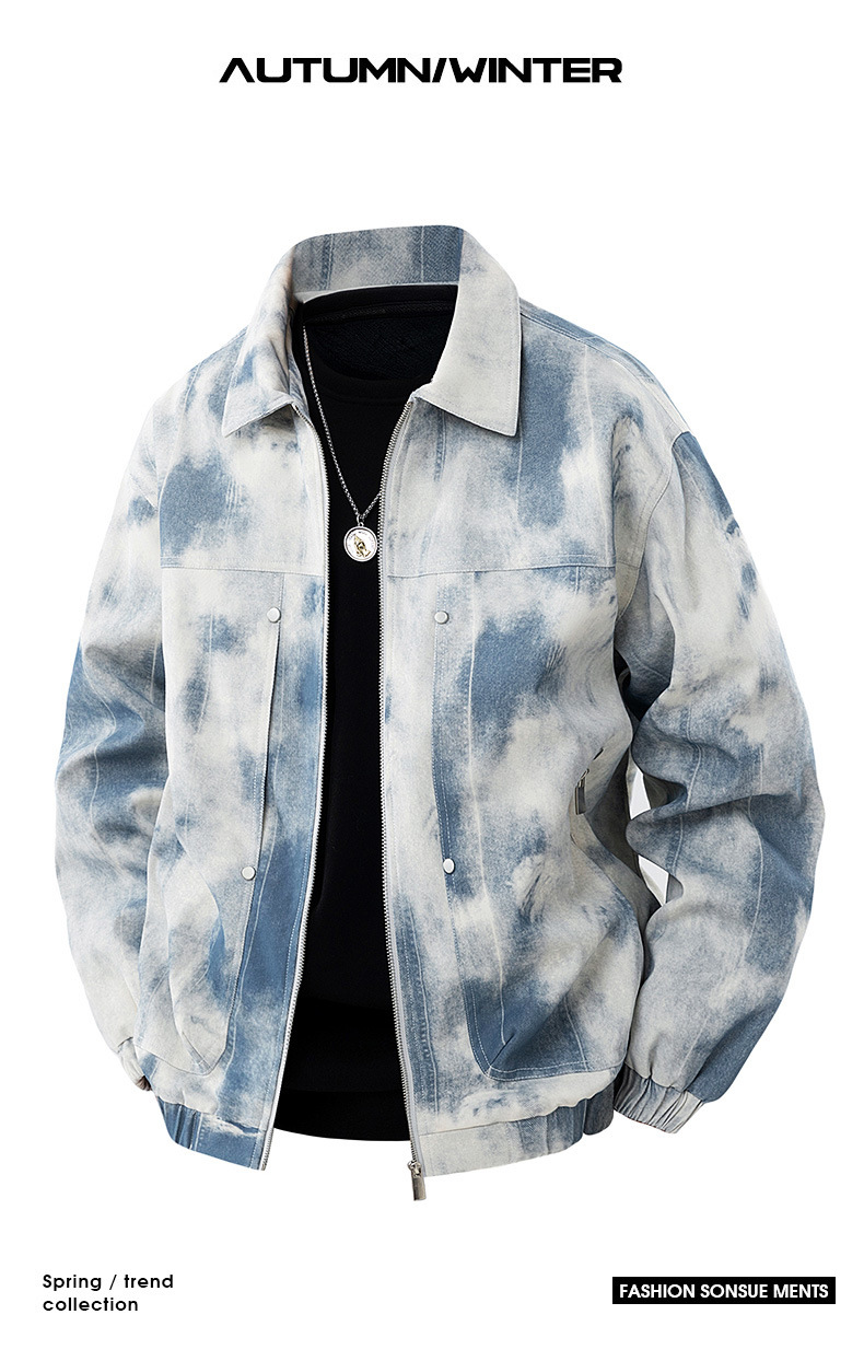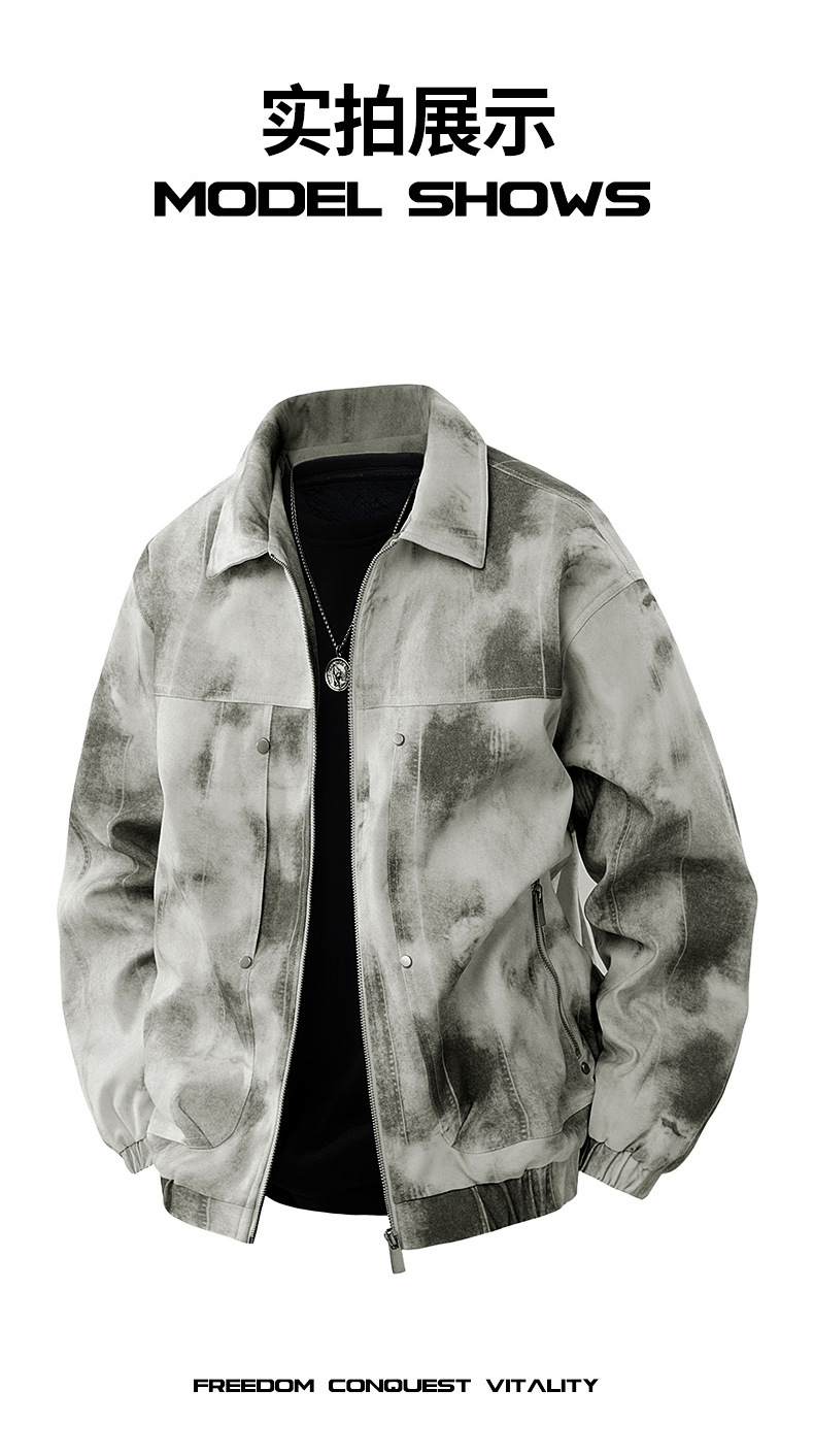 봄과 가을 트렌디 한 홍콩 스타일 남성 패션 프린트 스퀘어 칼라 자켓 지방 남성 플러스 사이즈 느슨한 캐주얼 자켓스토어 가기