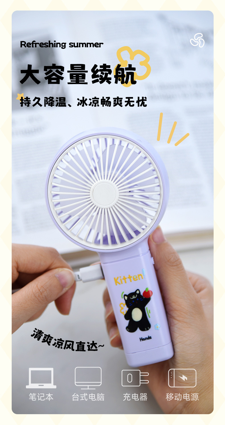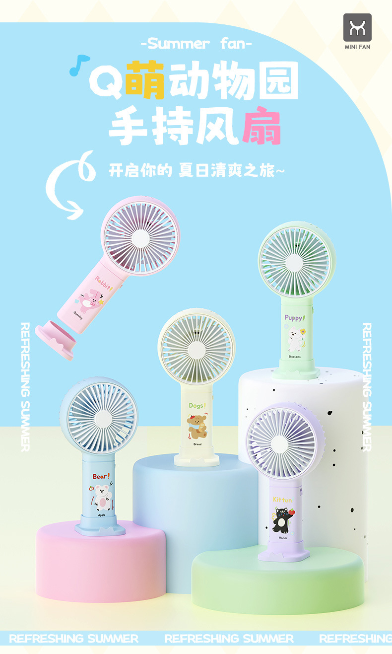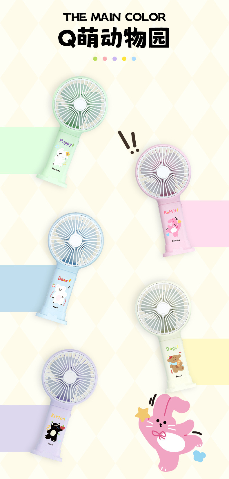 Mengqu 동물원 핸드 헬드 작은 팬 충전 학생 기숙사 어린이 휴대용 팬 소스 공장스토어 가기