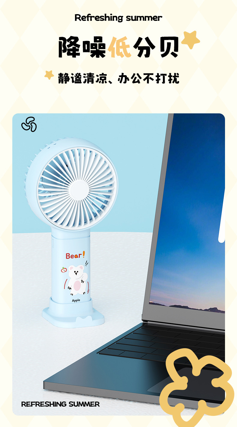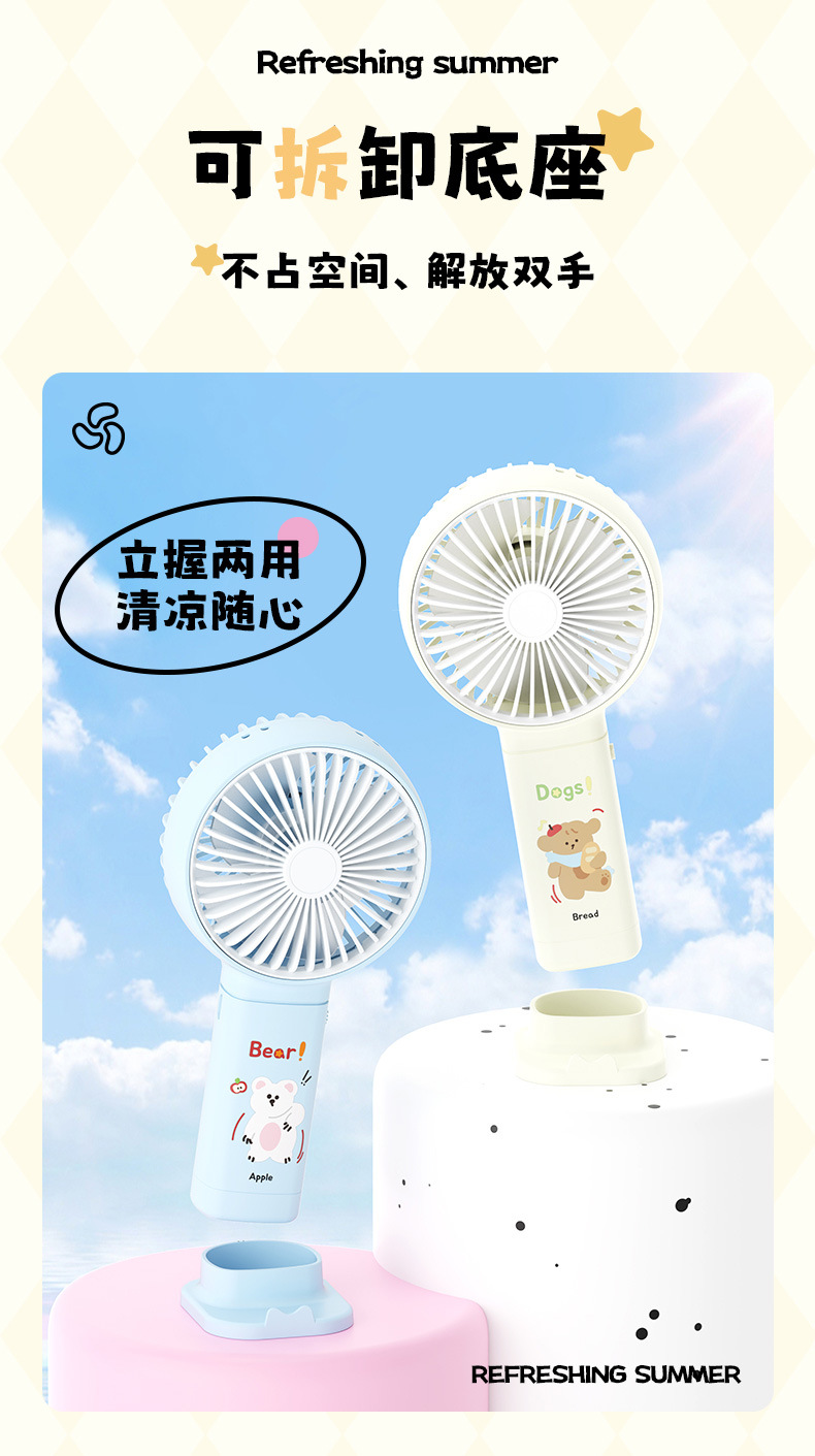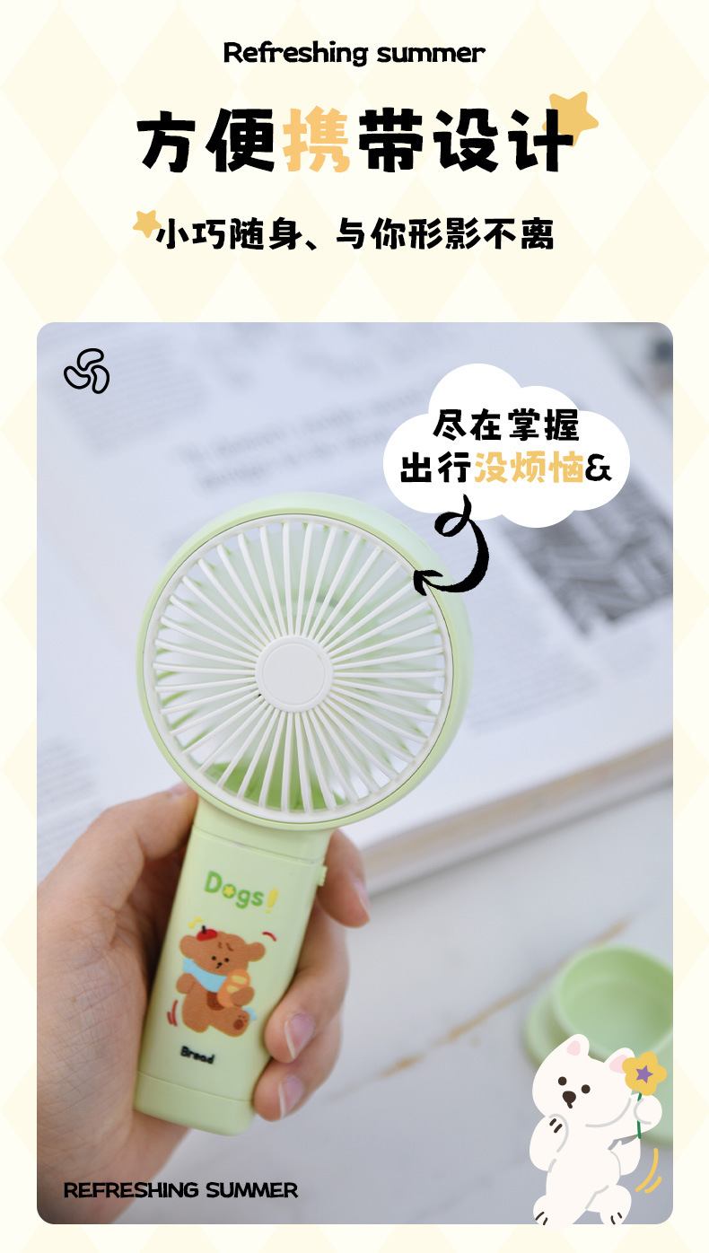 Mengqu 동물원 핸드 헬드 작은 팬 충전 학생 기숙사 어린이 휴대용 팬 소스 공장스토어 가기