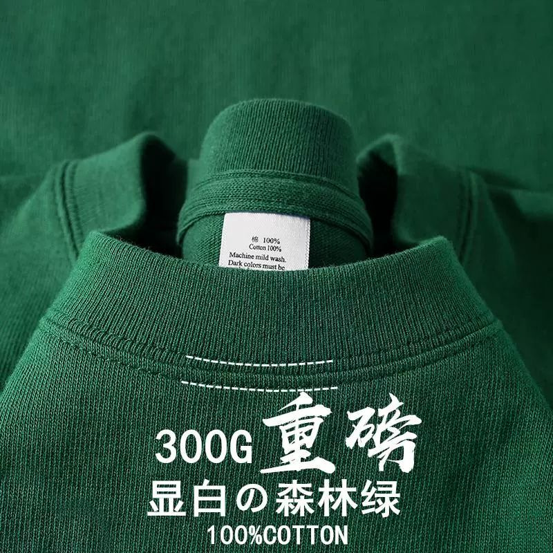 2025 Azure Heavy 300g 면 짧은 소매 티셔츠 남녀 기본 조커 느슨한 두꺼운 반소매 옷