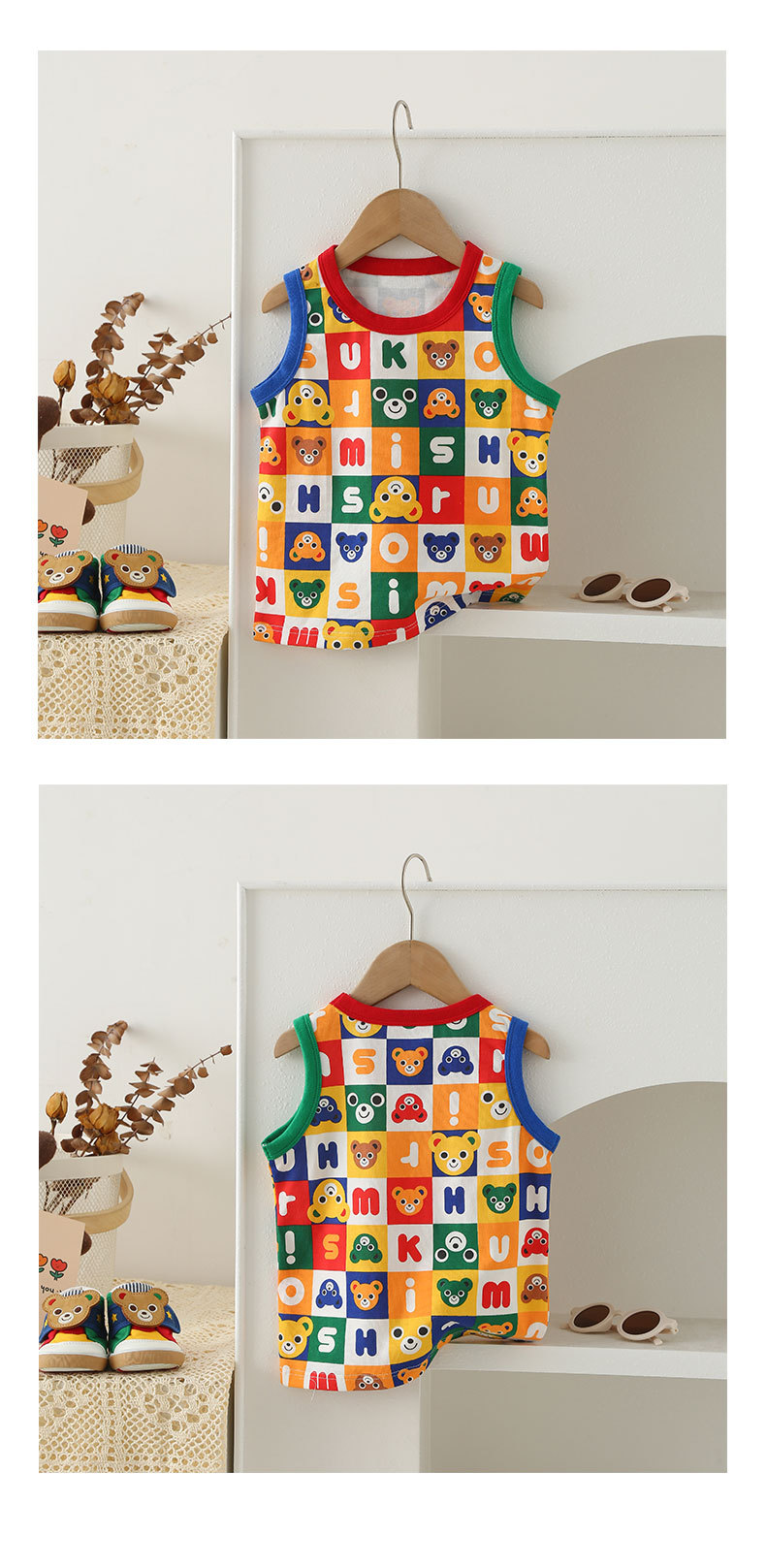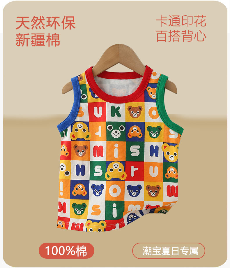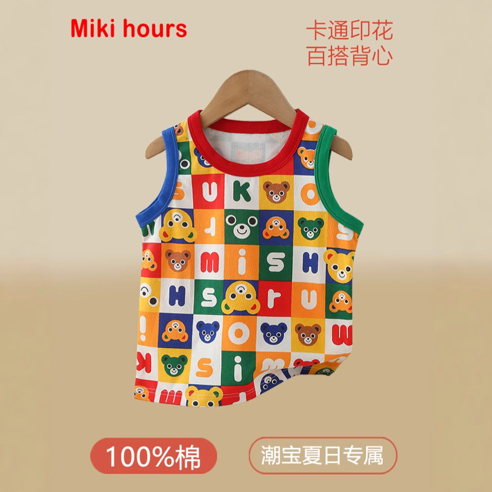 Miki hours25 새로운 어린이 광장 인쇄 조끼 순수 면화 아기 착용 조끼 일본 어린이 왁스 코트스토어 가기