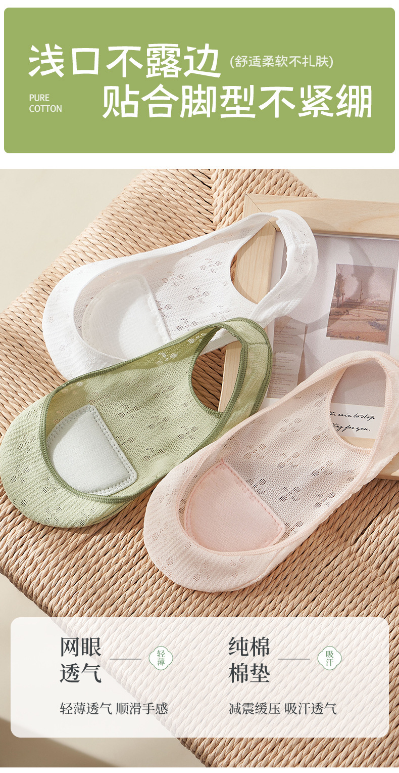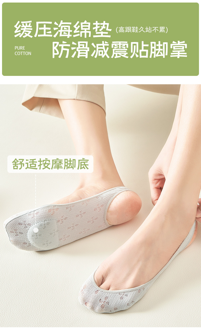 봄과 여름 양말 코튼 패드 여성의 얇은 감압 얕은 입 하이힐 슬링 보이지 않는 보트 양말 미끄럼 방지 힐 하프 팜 양말스토어 가기