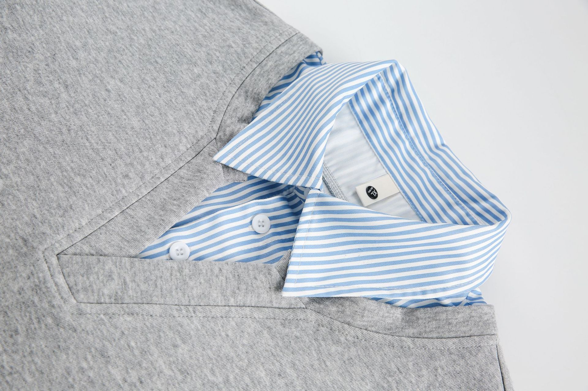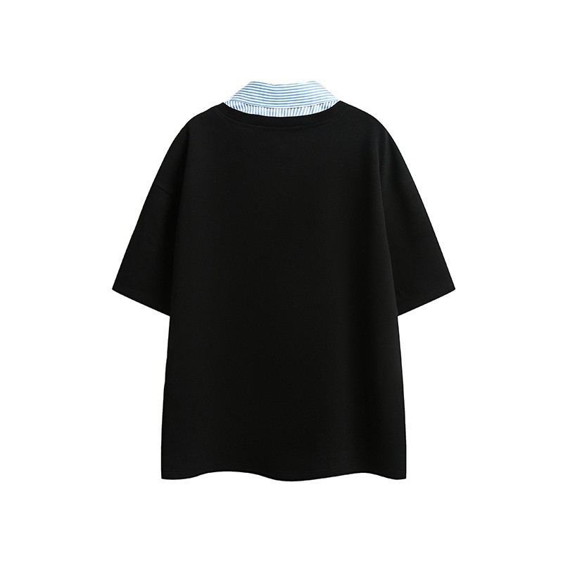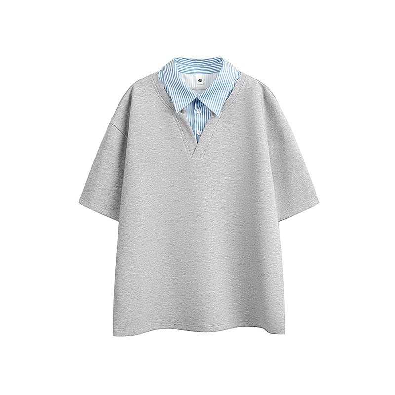 Eon Modish 2025 여름 새로운 미국 스타일 복고풍 간단한 가짜 투피스 느슨한 반팔 티셔츠스토어 가기