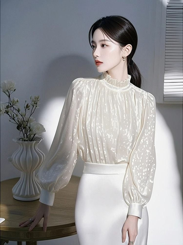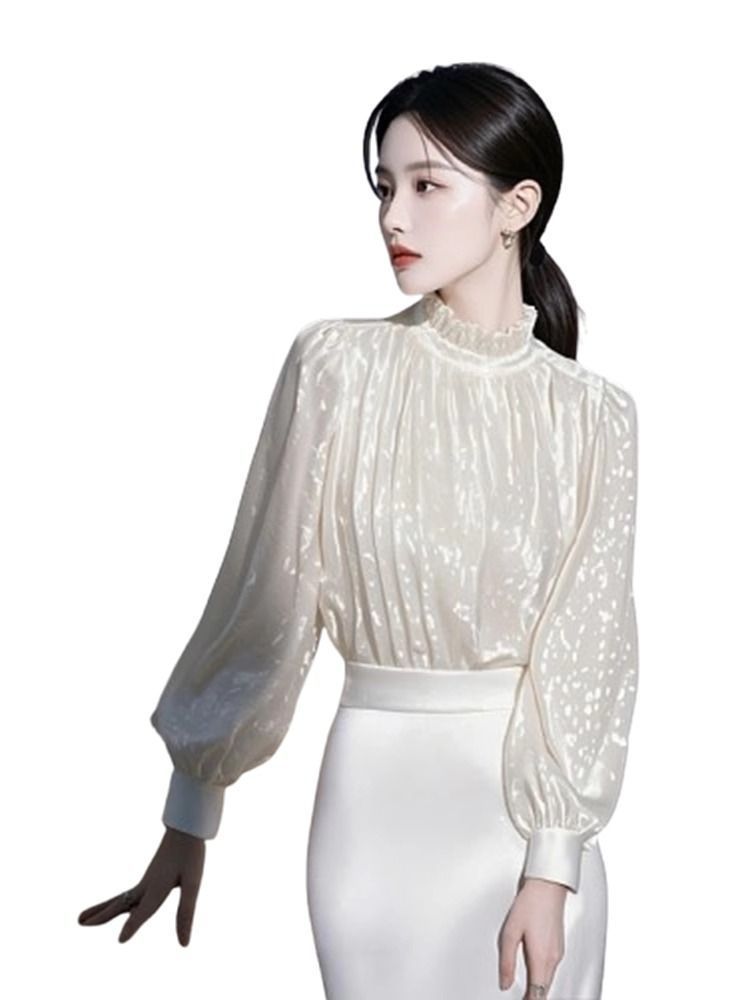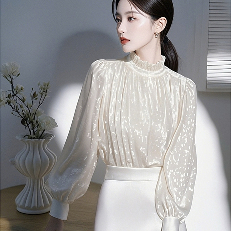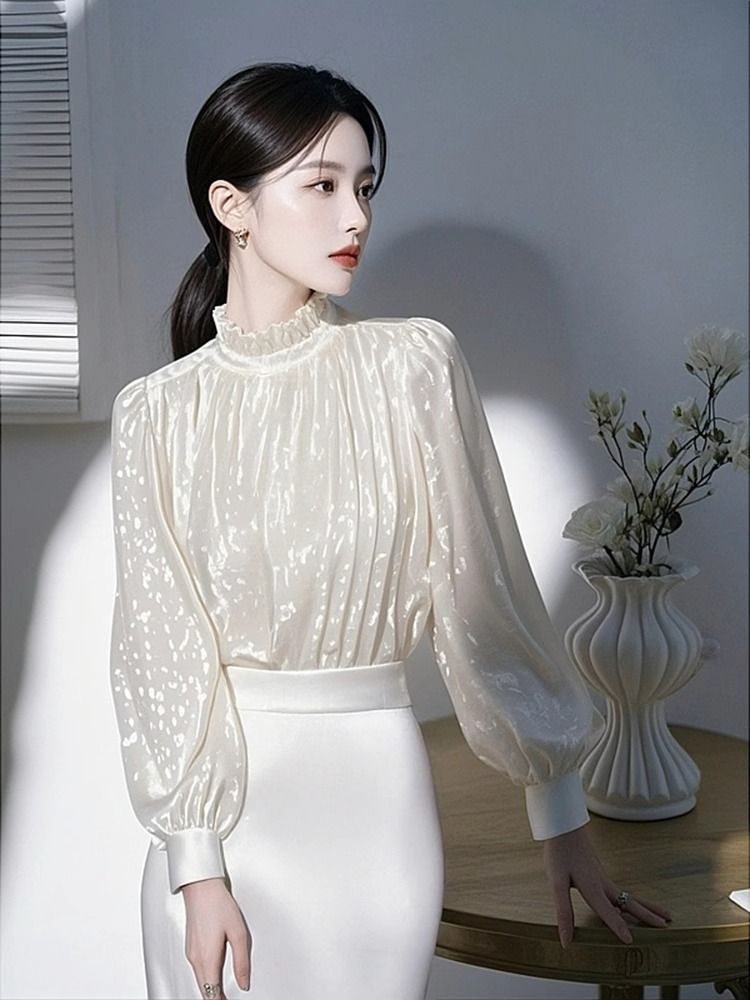 겨울 여성의 2024 새로운 빈티지 예술 패션 세련된 긴 소매 티셔츠 탑