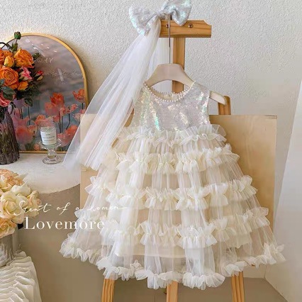 여자 프렌치 케이크 스커트 2025 어린 소녀의 흰색 공주 스커트 베일 외국 스타일 1 년 생일 원피스 베일 스커트스토어 가기