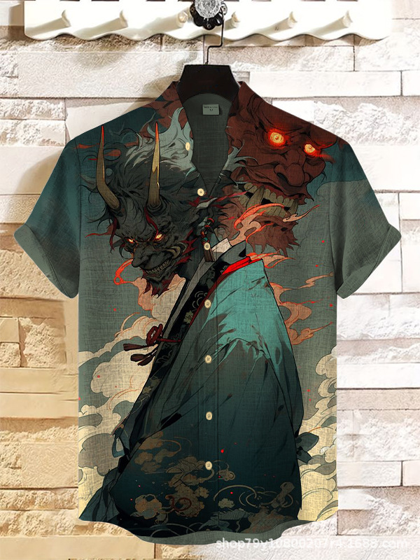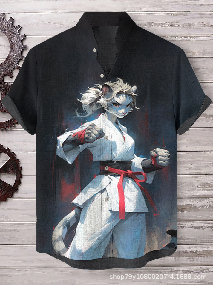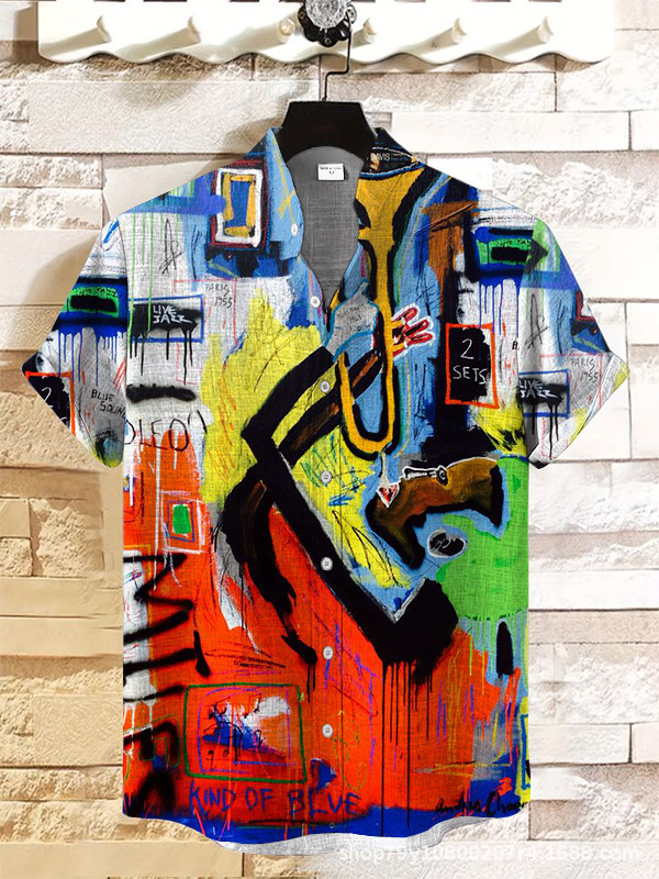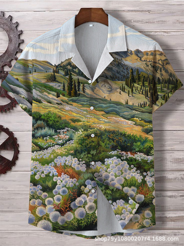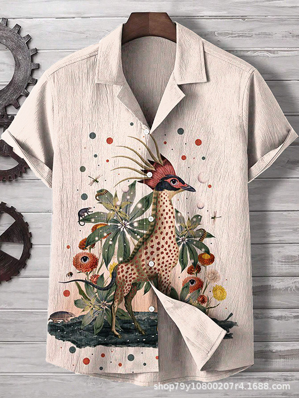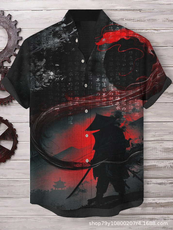 012 새로운 유럽과 미국의 대외 무역 국경 3D 디지털 인쇄 느슨한 트렌드 짧은 소매 옷깃 카디건 셔츠 도매