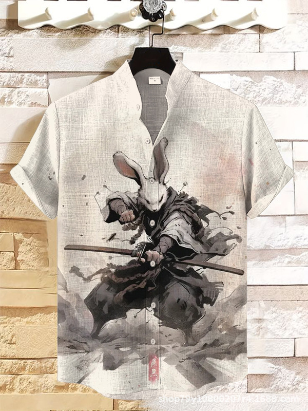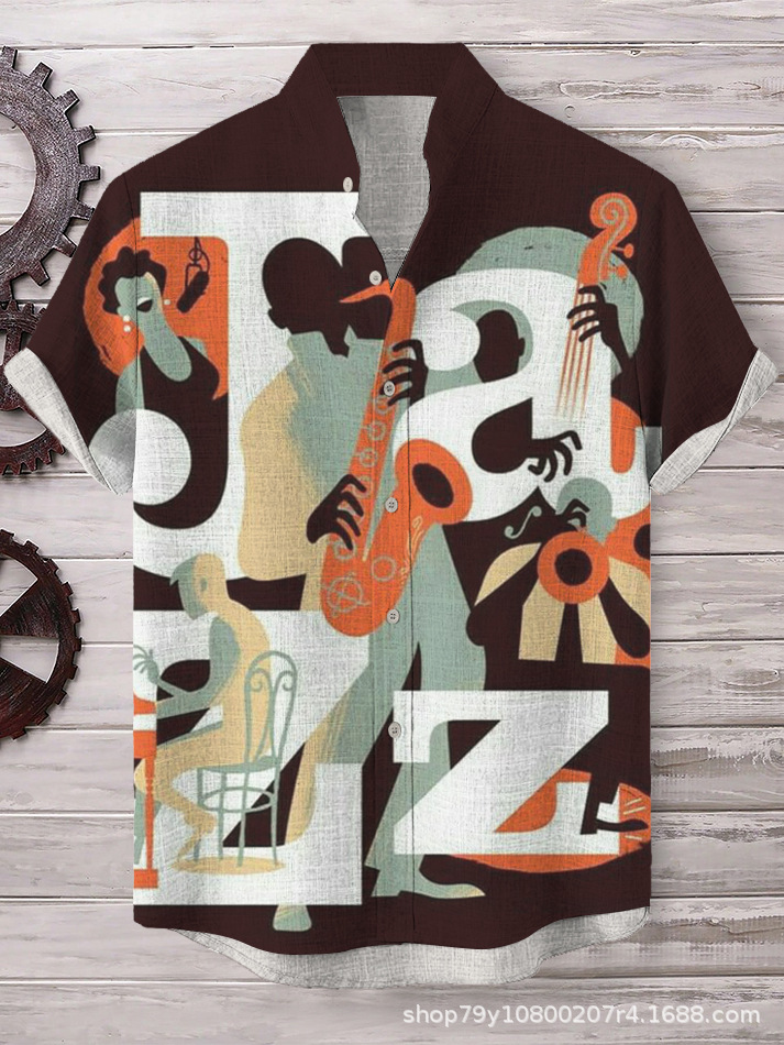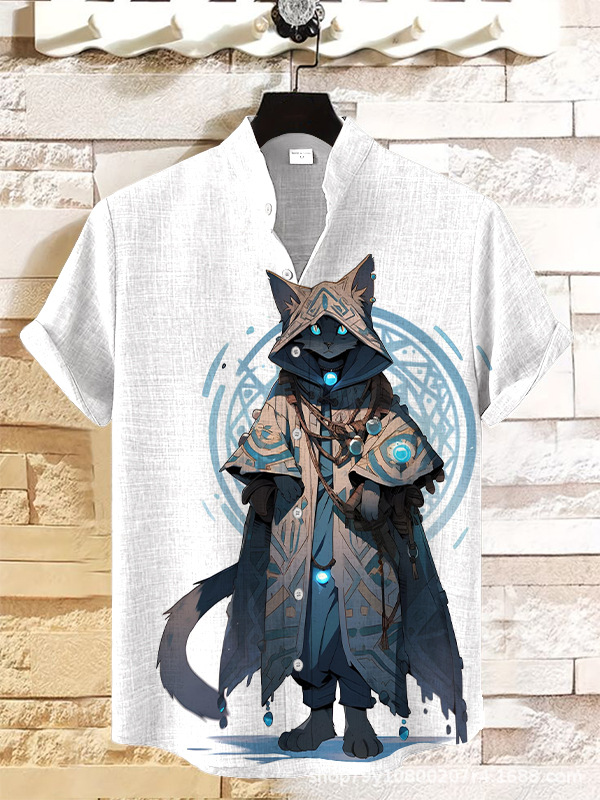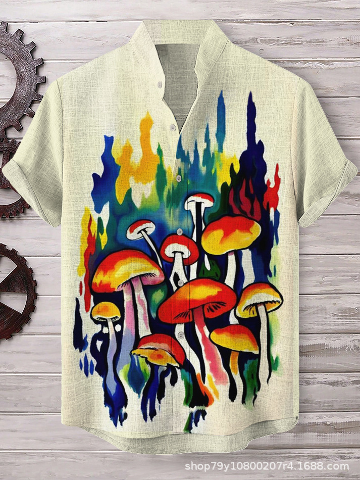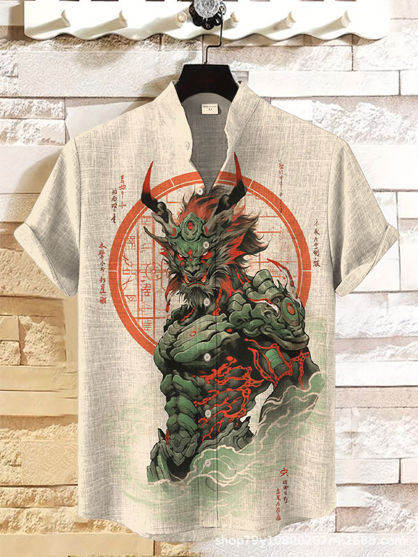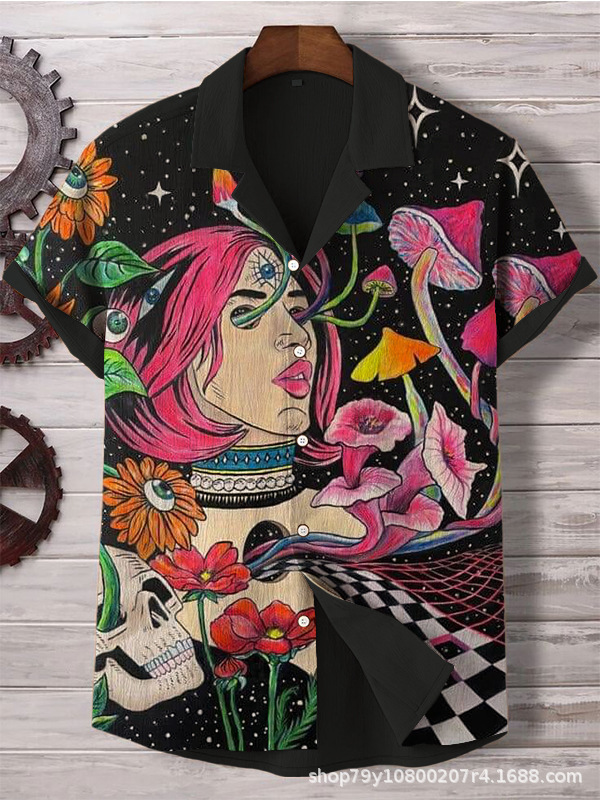 012 새로운 유럽과 미국의 대외 무역 국경 3D 디지털 인쇄 느슨한 트렌드 짧은 소매 옷깃 카디건 셔츠 도매